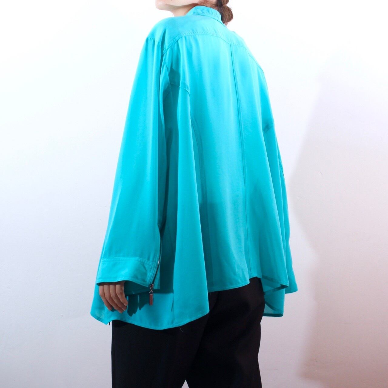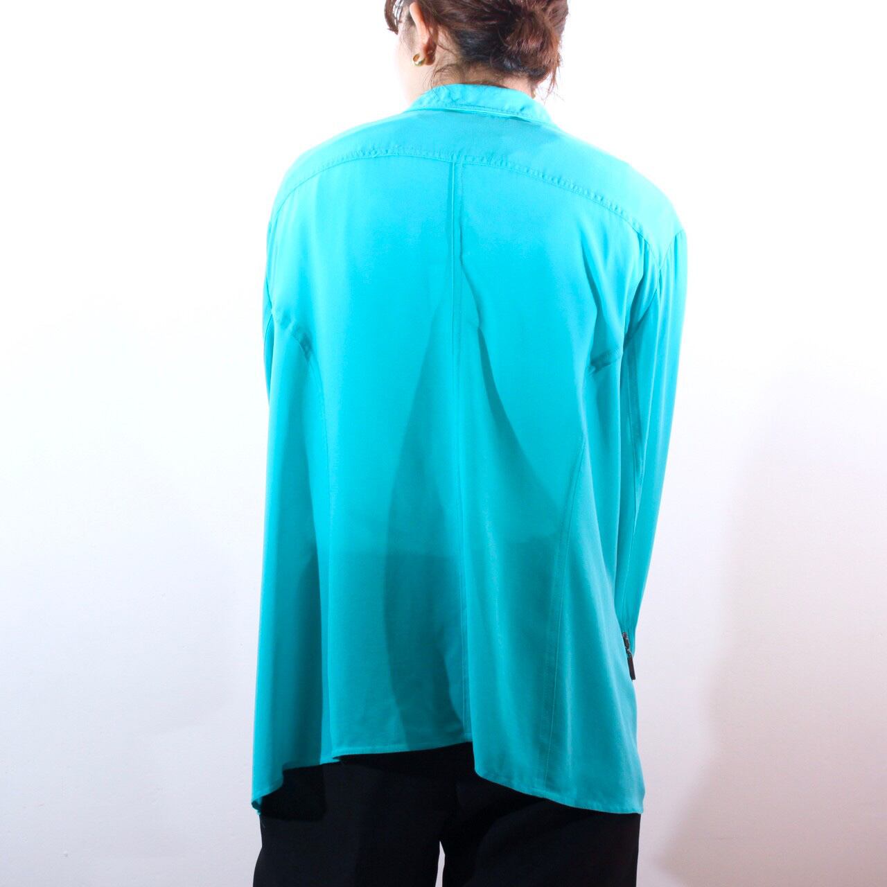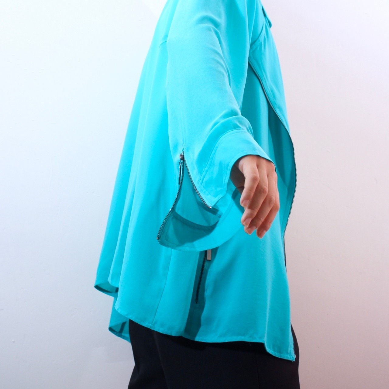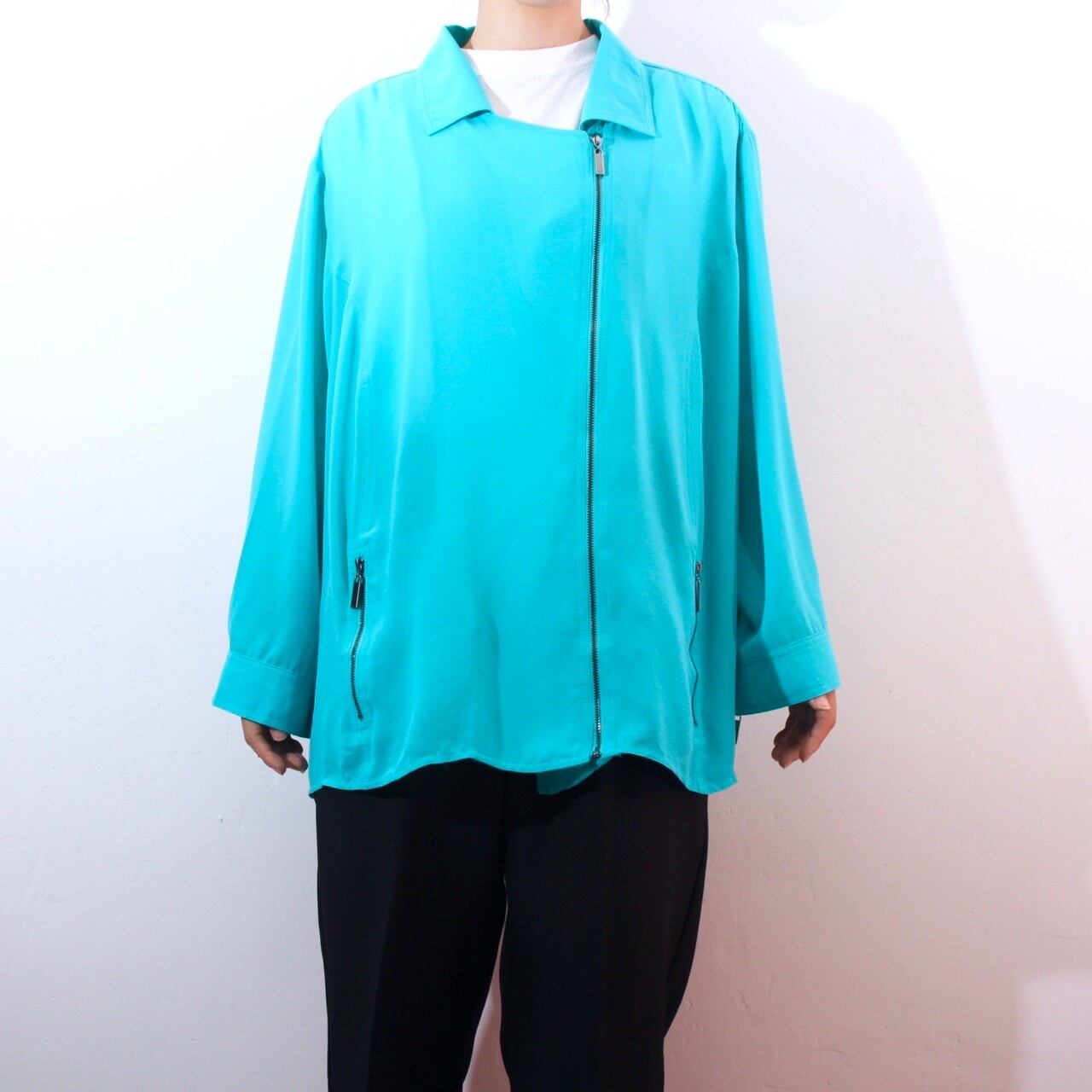 0649. 1990's see-through summer riders jacket ターコイズブルー ライダースジャケット シャツジャケット シースルー レディース古着