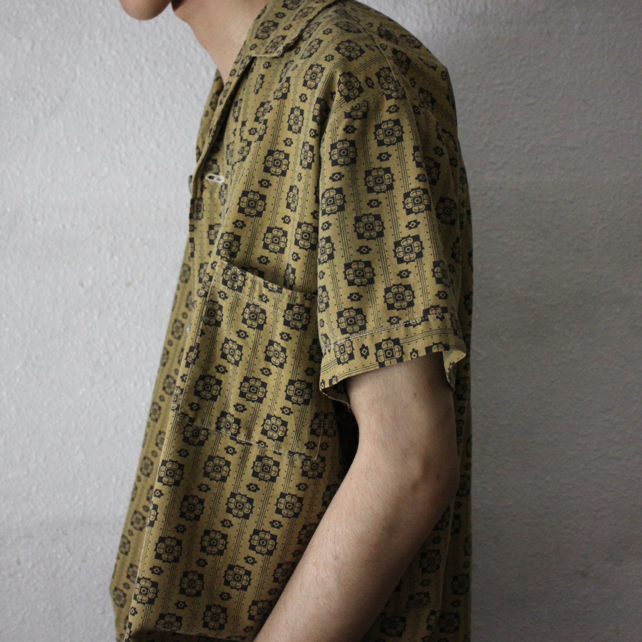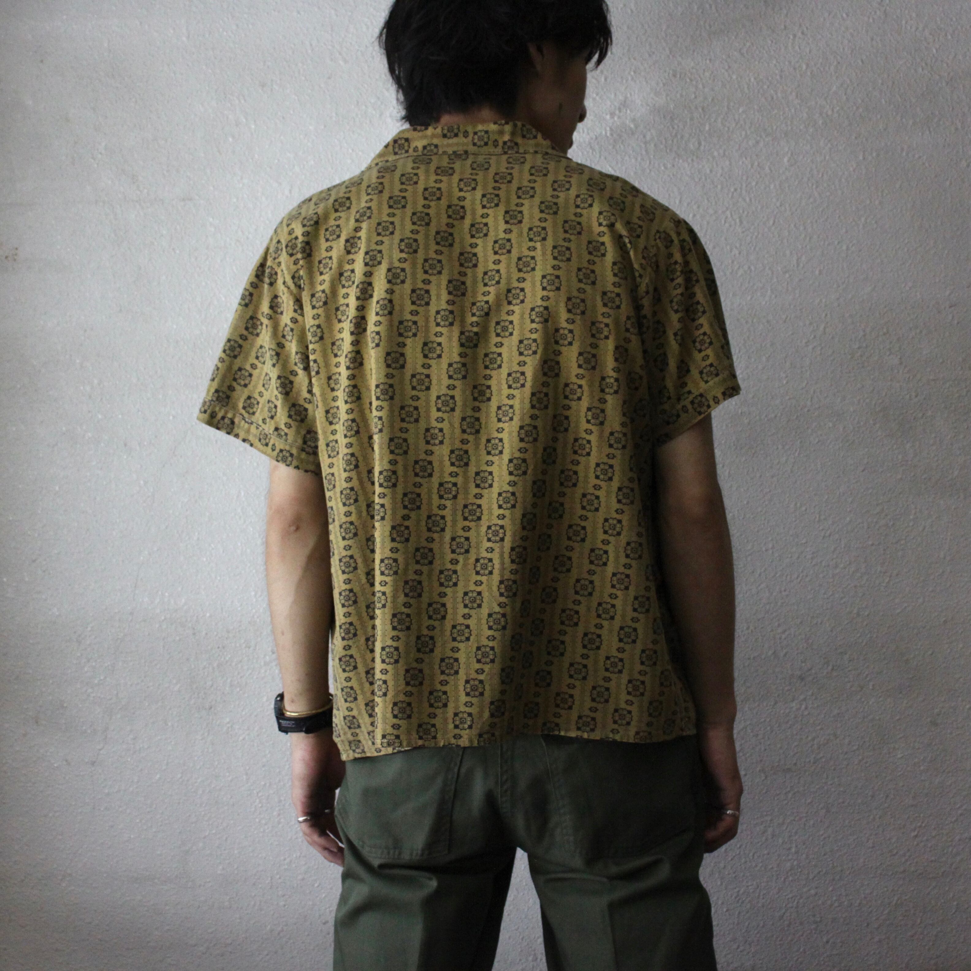 0633. 1960's all patern shirt ゴールド 小紋柄 総柄 半袖シャツ 60s 60年代 vintage ヴィンテージ 古着