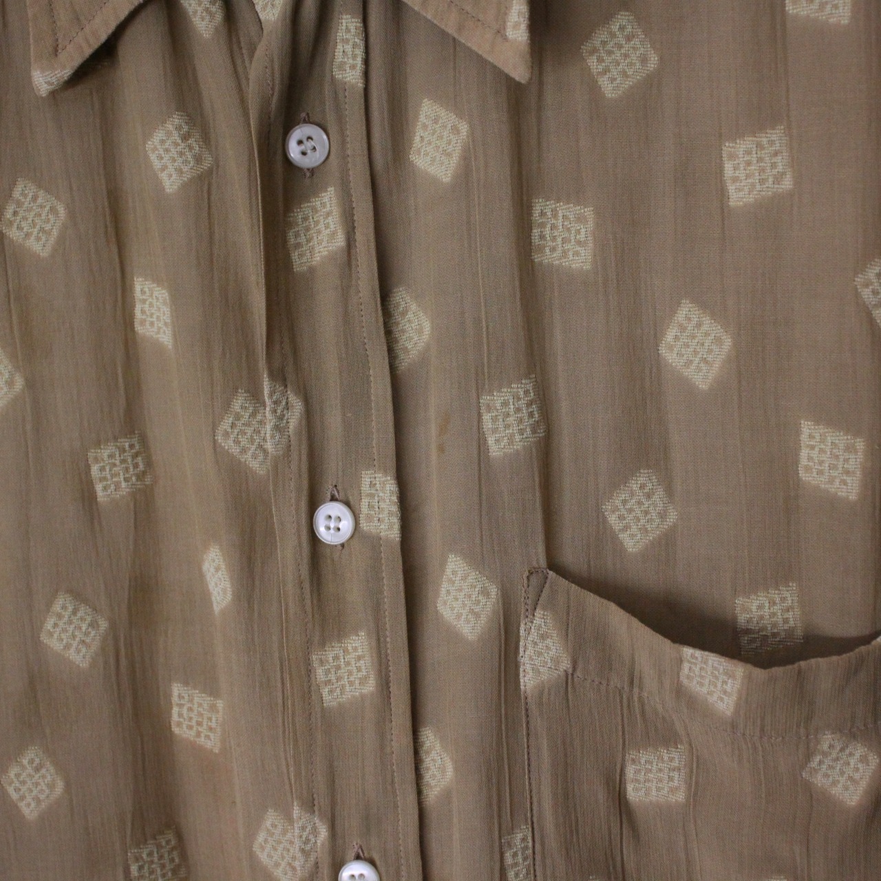 0636. 1990's mens see-through shirt Made in Italy ゴールド 総柄 半袖シャツ PAROSH イタリア製 90s 90年代 vintage ヴィンテージ 古着