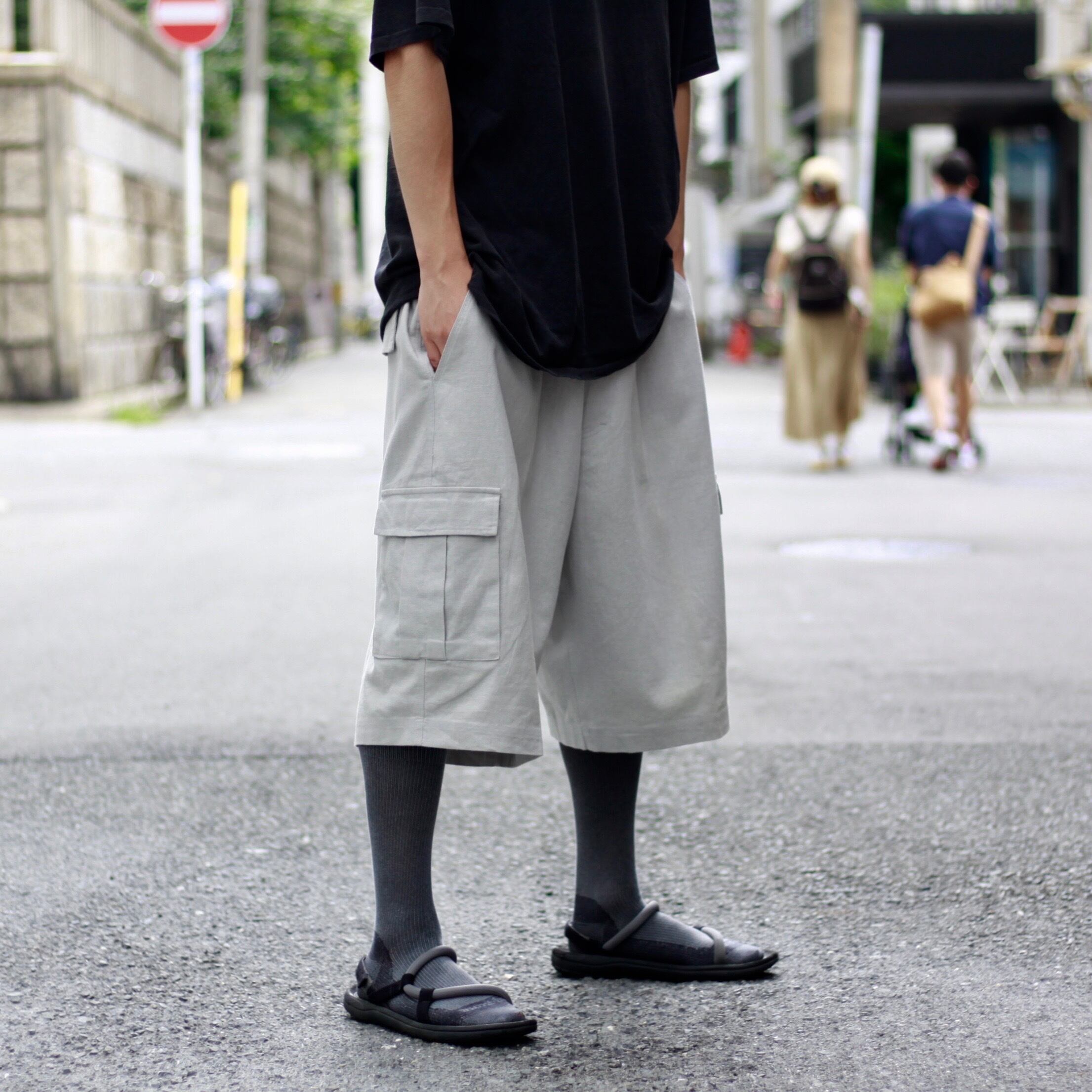 0646. linen/cotton easy cargo shorts グレー カーゴショーツ イージーパンツ 古着