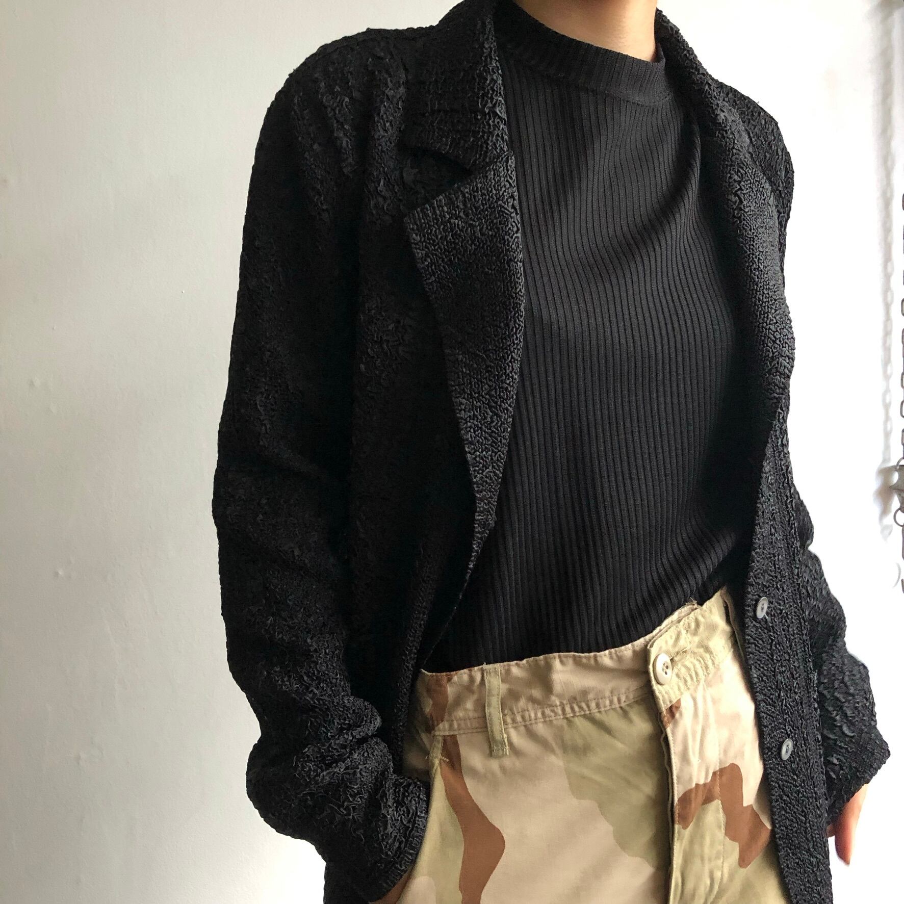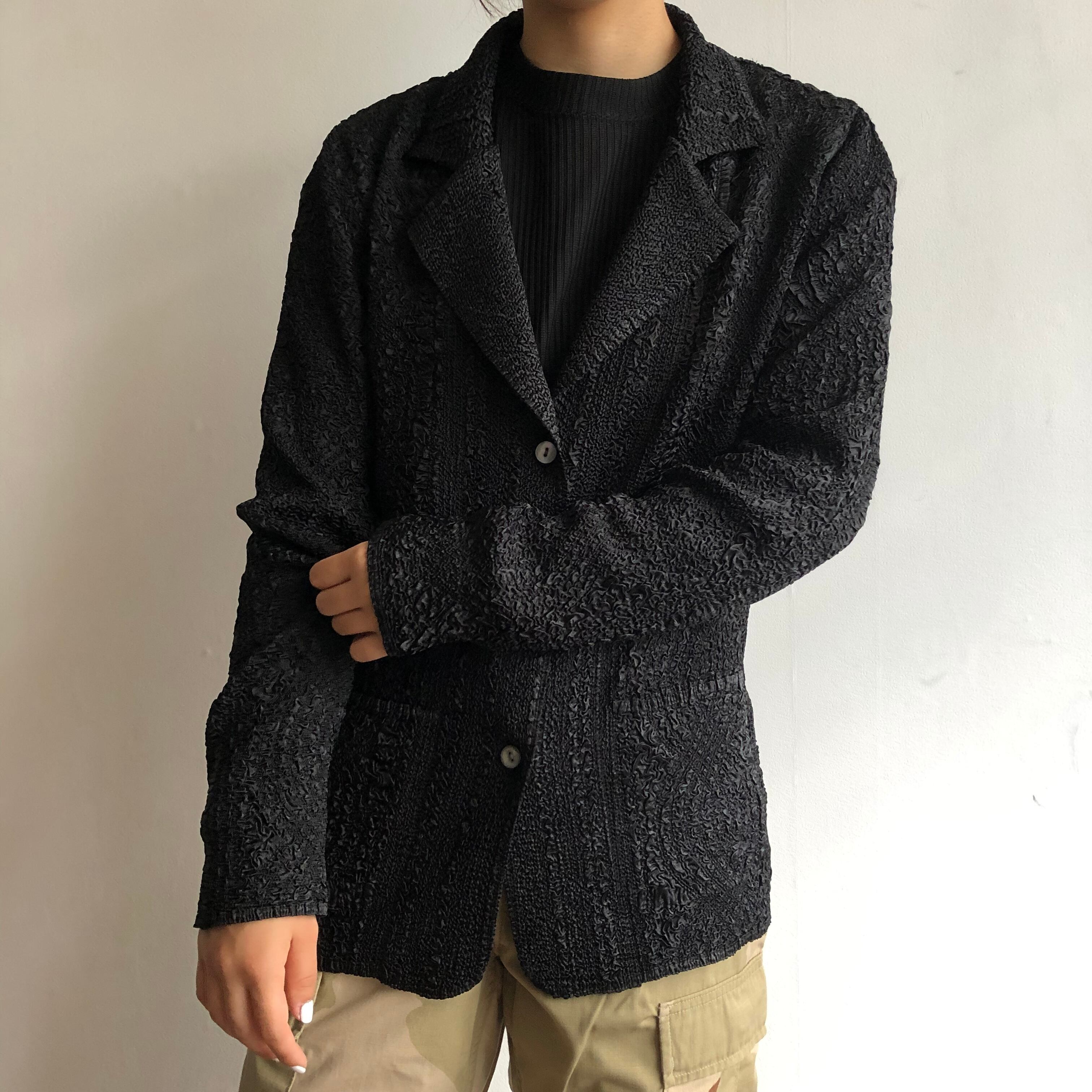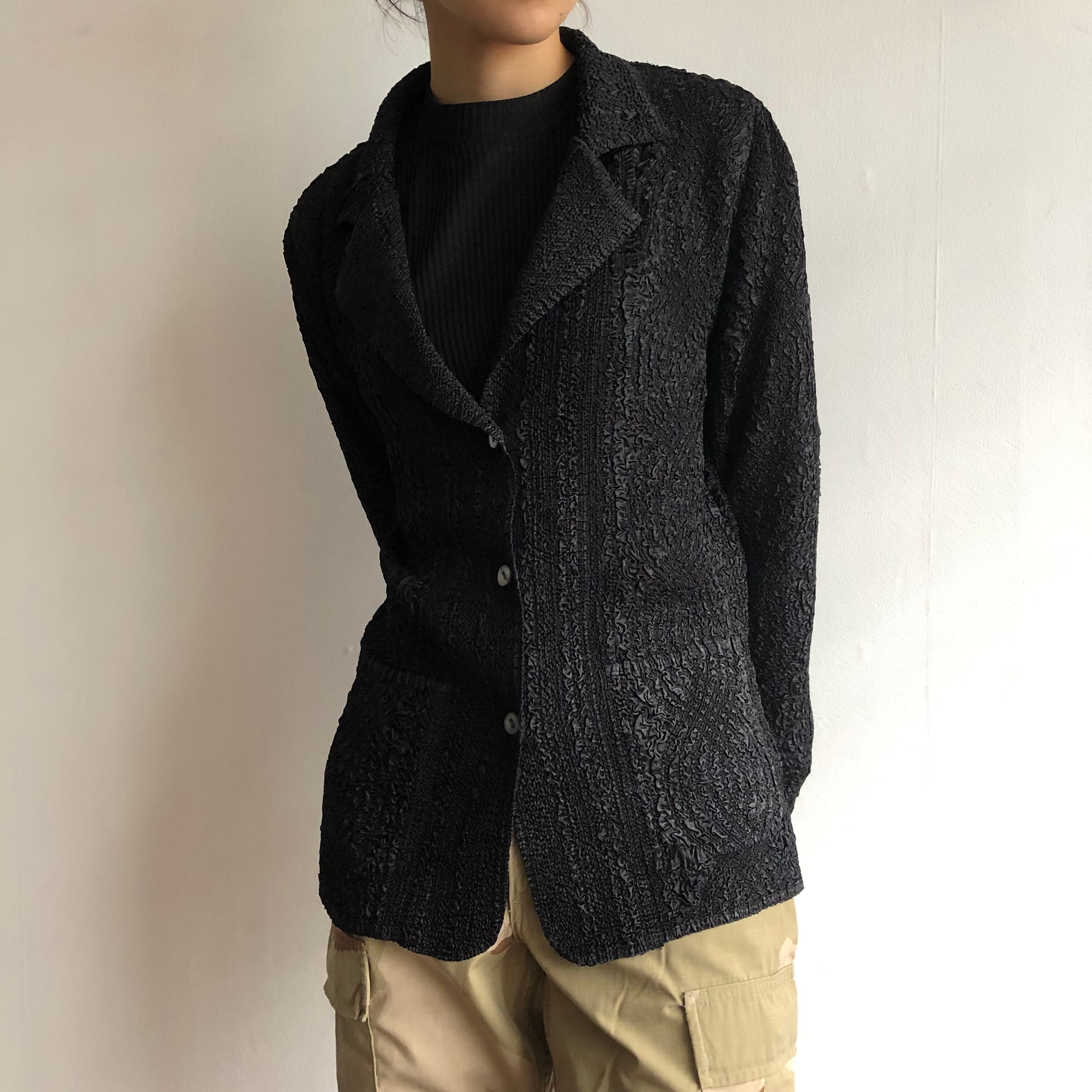 0674. black popcorn 3B jacket ブラック ポップコーントップス シャツジャケット レディース古着