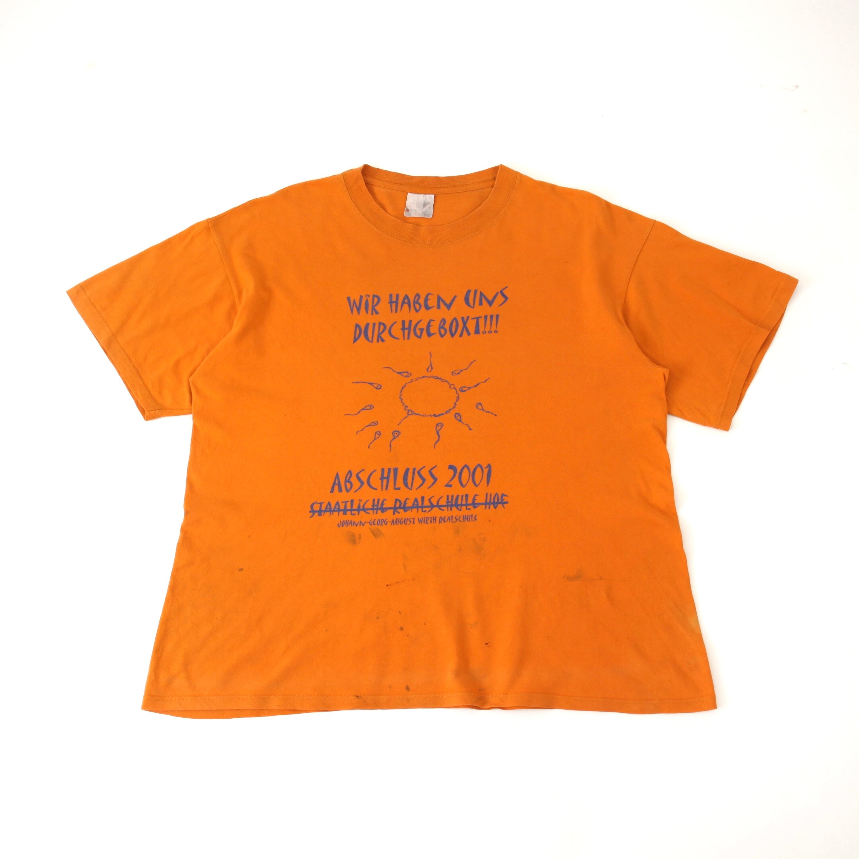 0653. 2000's ドイツの中等学校 tee オレンジ アートT エロT ドイツ 00s 00年代 vintage ヴィンテージ 古着