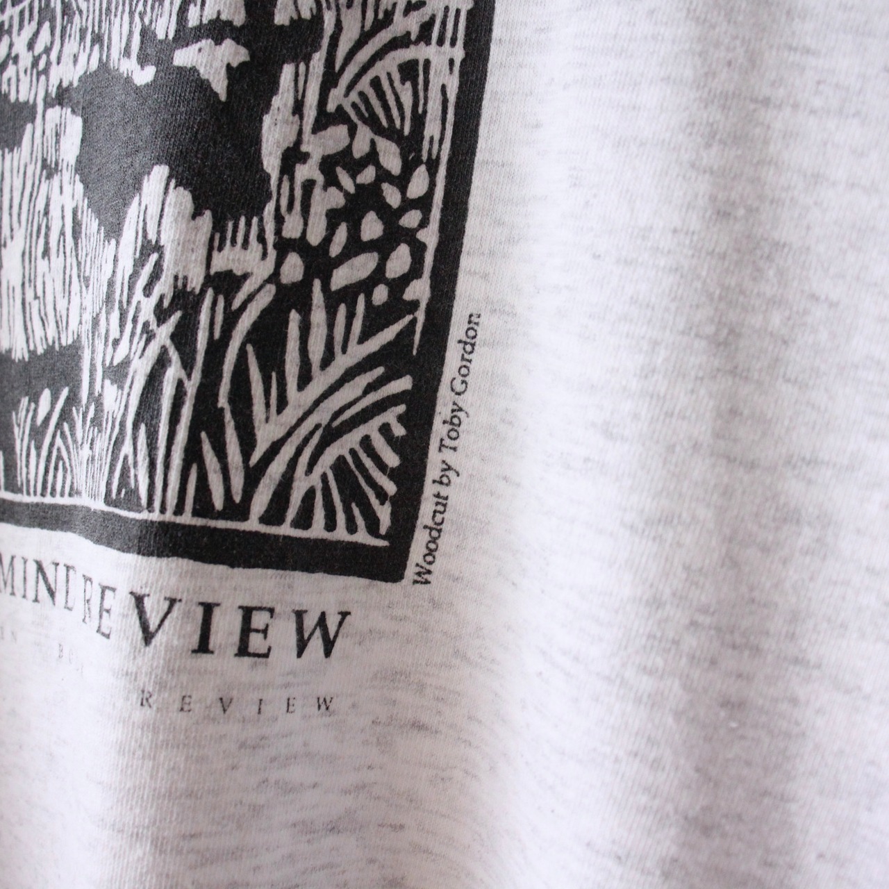 0690. 1990's "HUNGRY MIND REVIEW" issue tee ヘザーグレー アートT 騙し絵 レタリング レビュー本 90s 90年代 vintage ヴィンテージ 古着