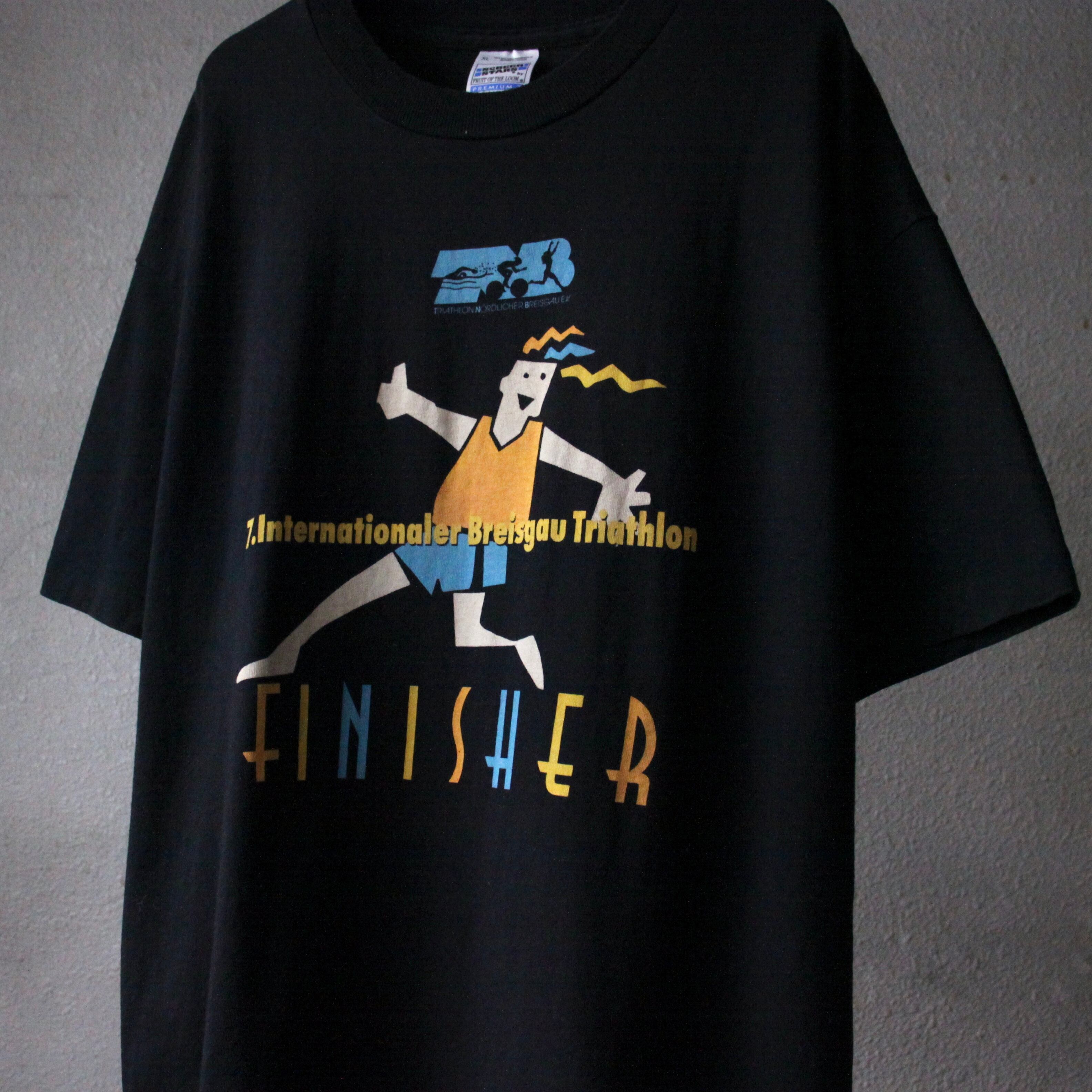 0691. 1990's ドイツのトライアスロン tee ブラック アートT 企業系 90s 90年代 vintage ヴィンテージ 古着