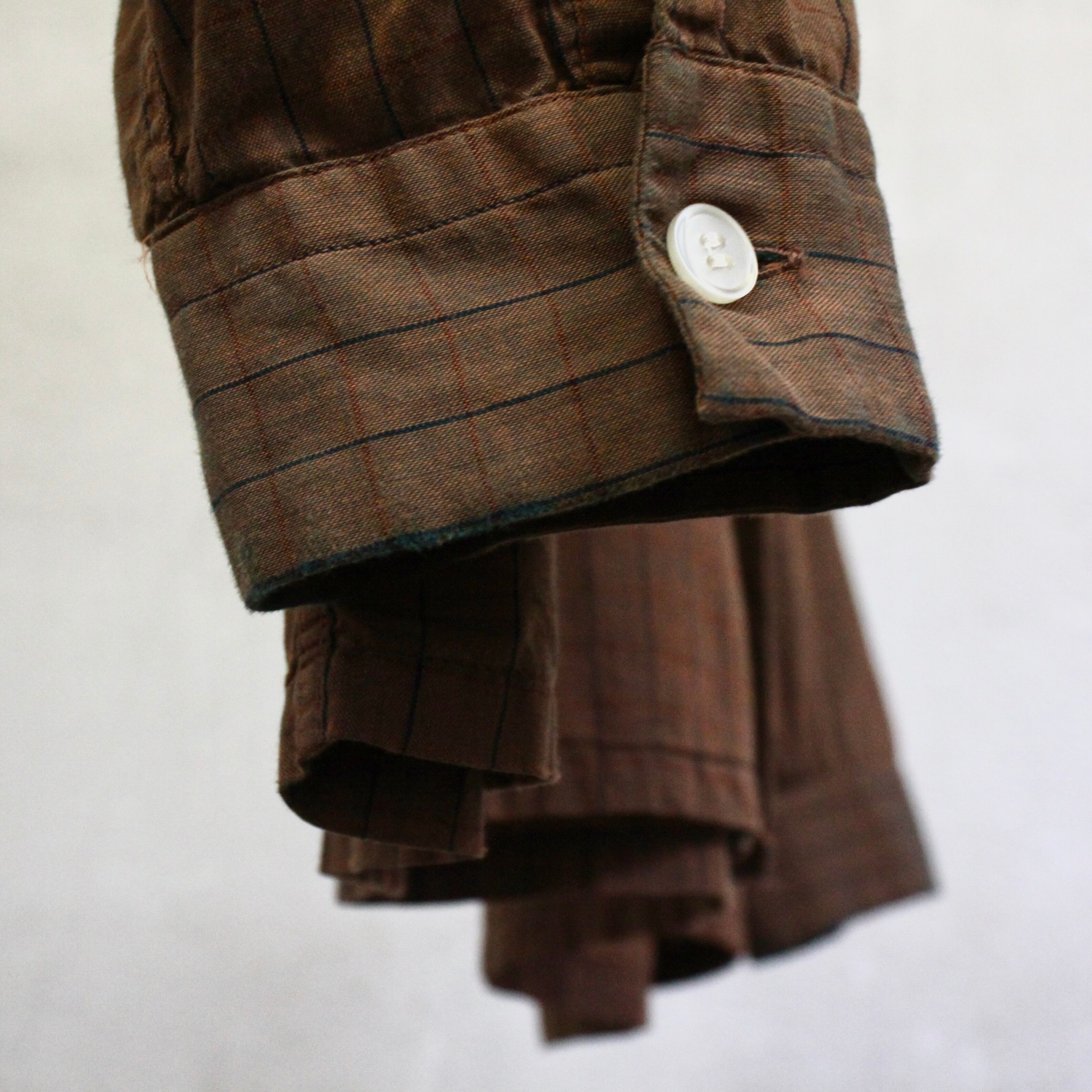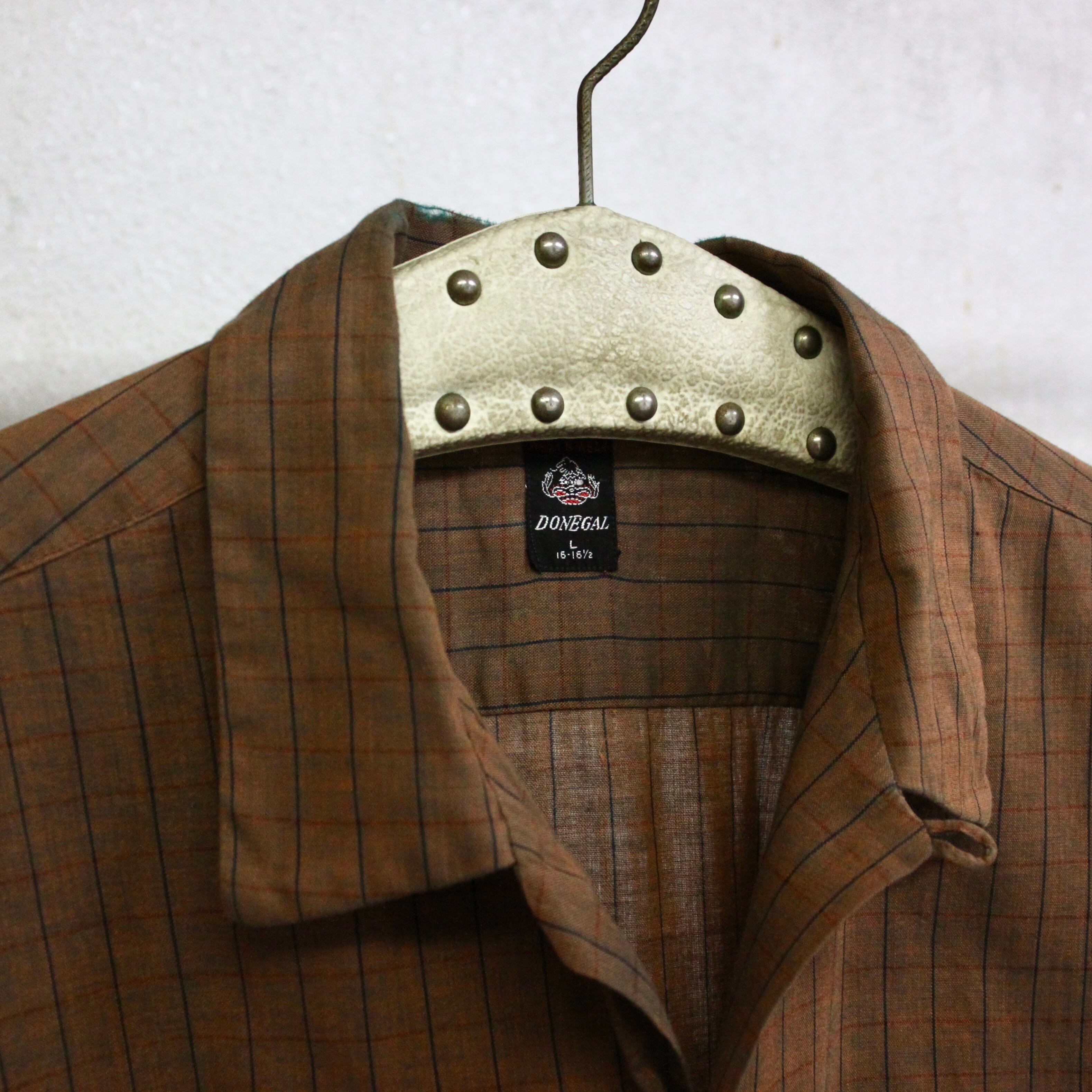 0001 / 1960's DONEGAL cotton plaid shirt ブラウン チェック柄 長袖シャツ 開襟 オープンカラー 60s 60年代 vintage 古着