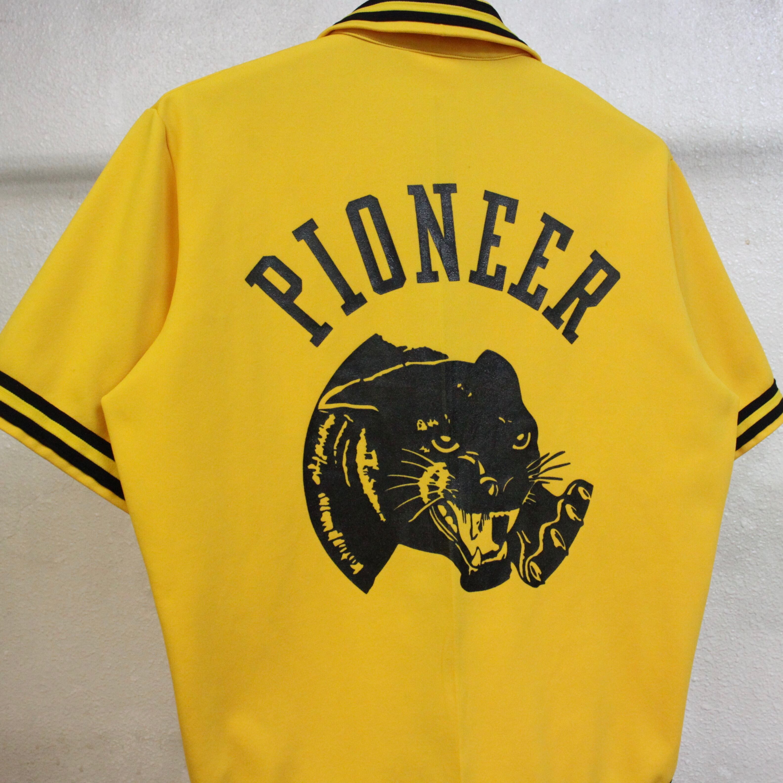 0010 / 1970's athletic jersey イエロー 半袖 ジップシャツ ジャージ カレッジプリント ブラックパンサー ハイネック 70s 70年代 USA製 vintage 古着
