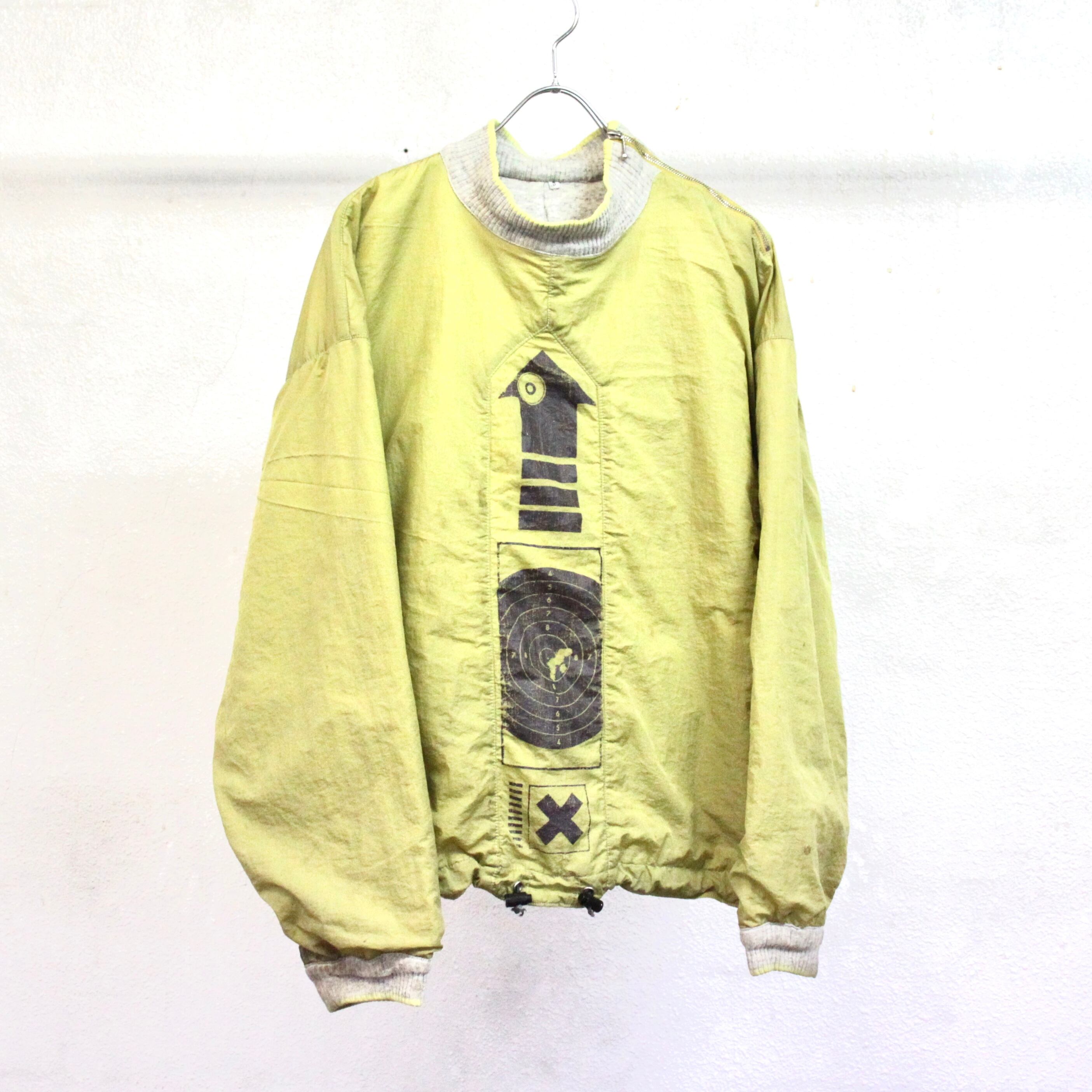 0012 / 1980's double face nylon smock ライムイエロー ダブルフェイス プルオーバー ジャケット ririジップ 80s 80年代 euro vintage ユーロ古着