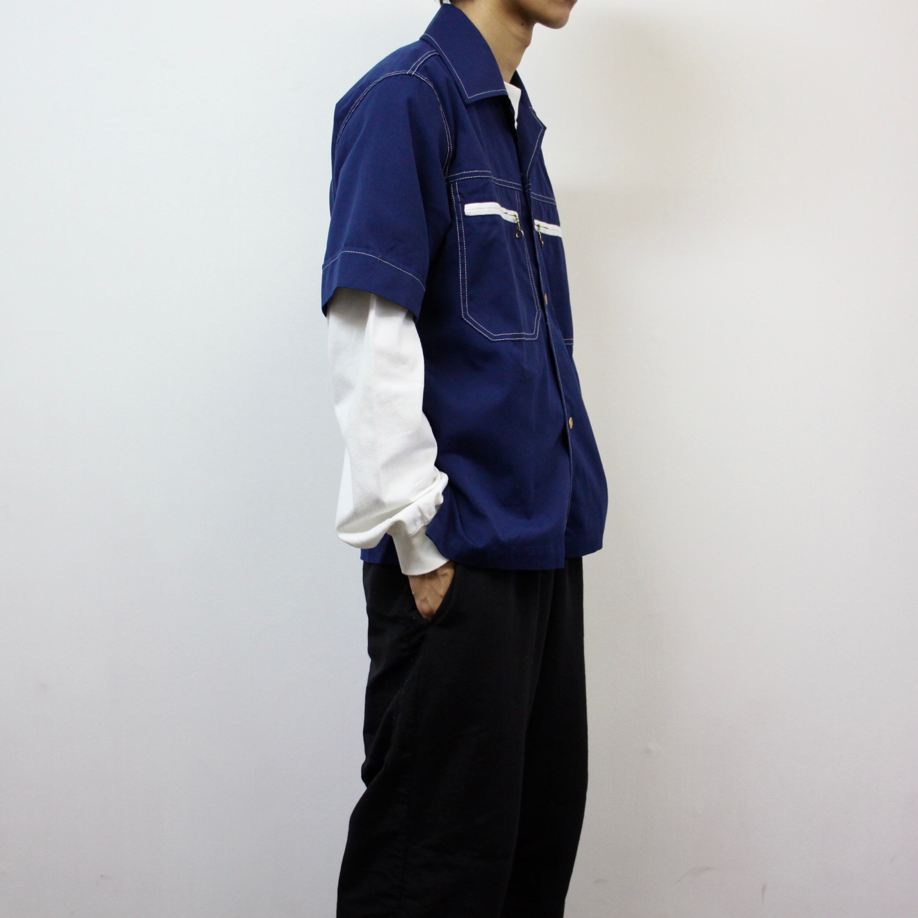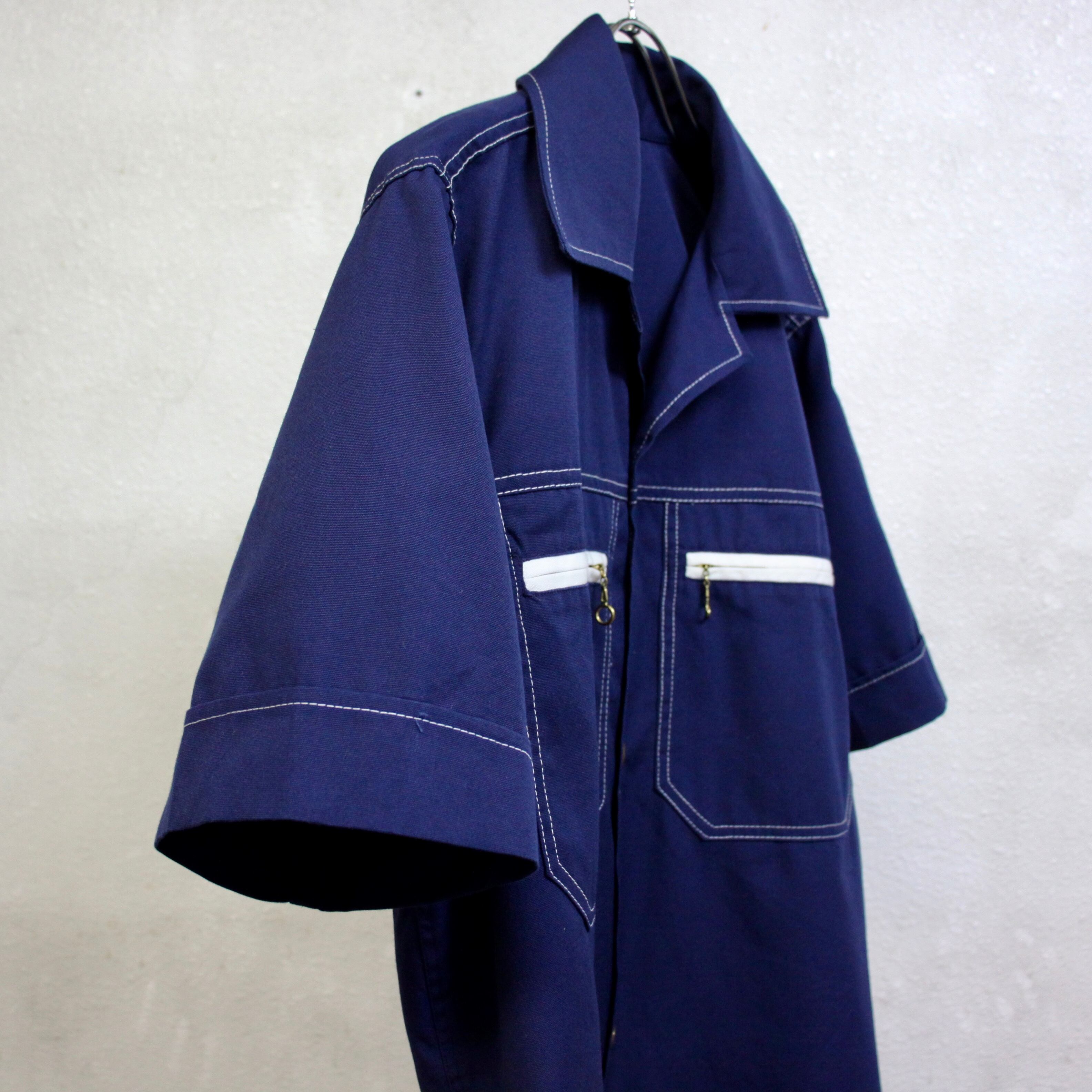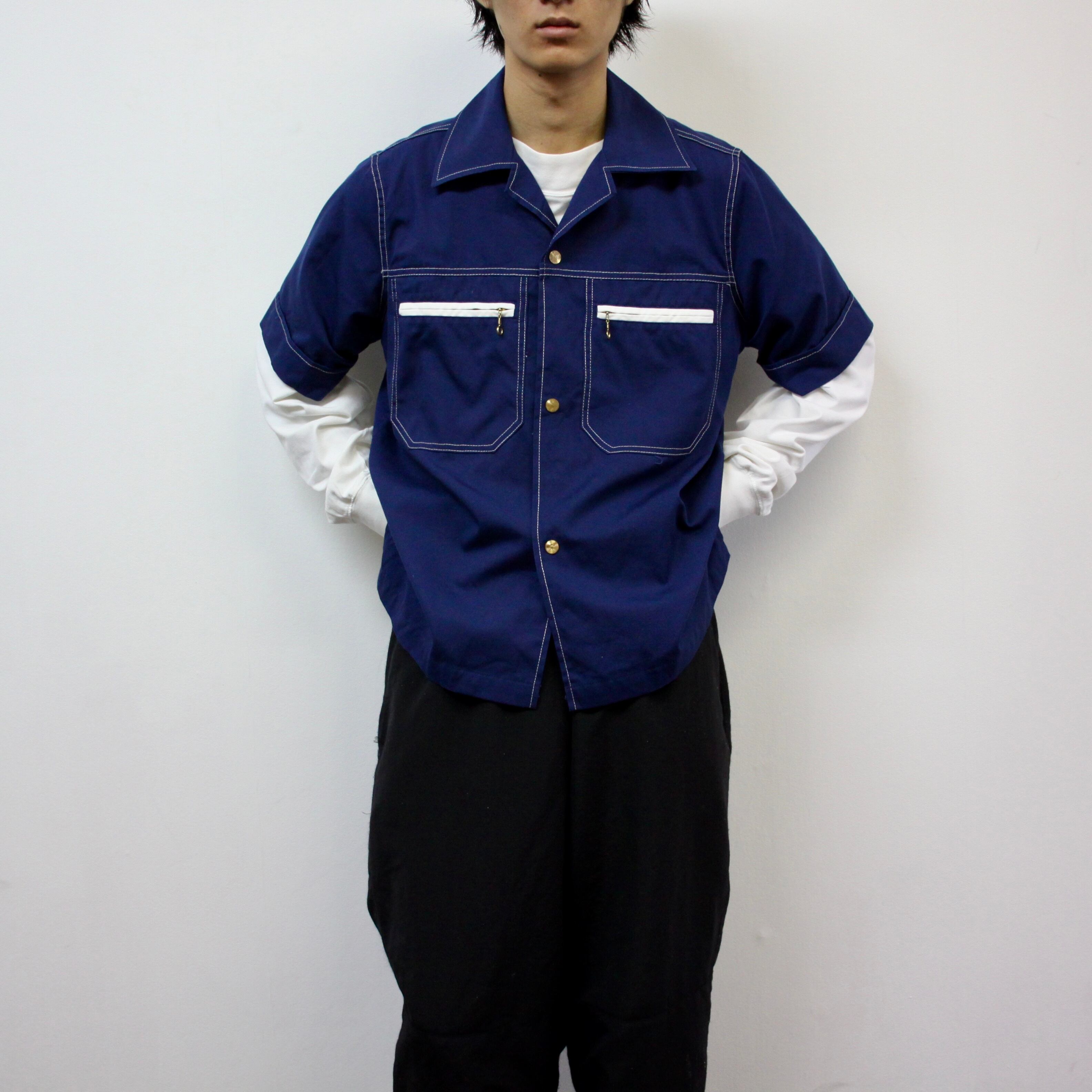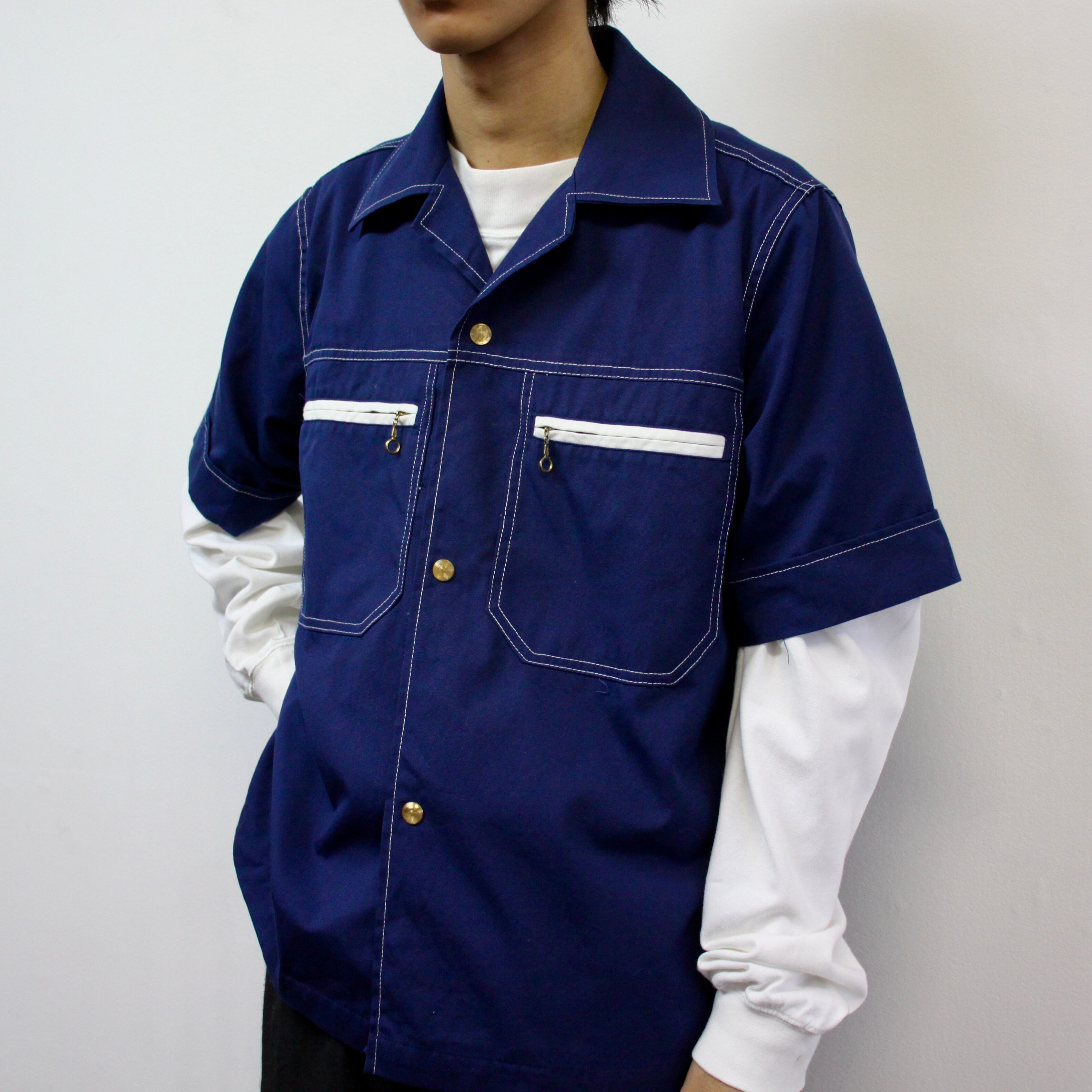 0029 / 1970's front snap work jacket ネイビー 半袖 ワークシャツ ジャケット スナップボタン 70s 70年代 vintage 古着