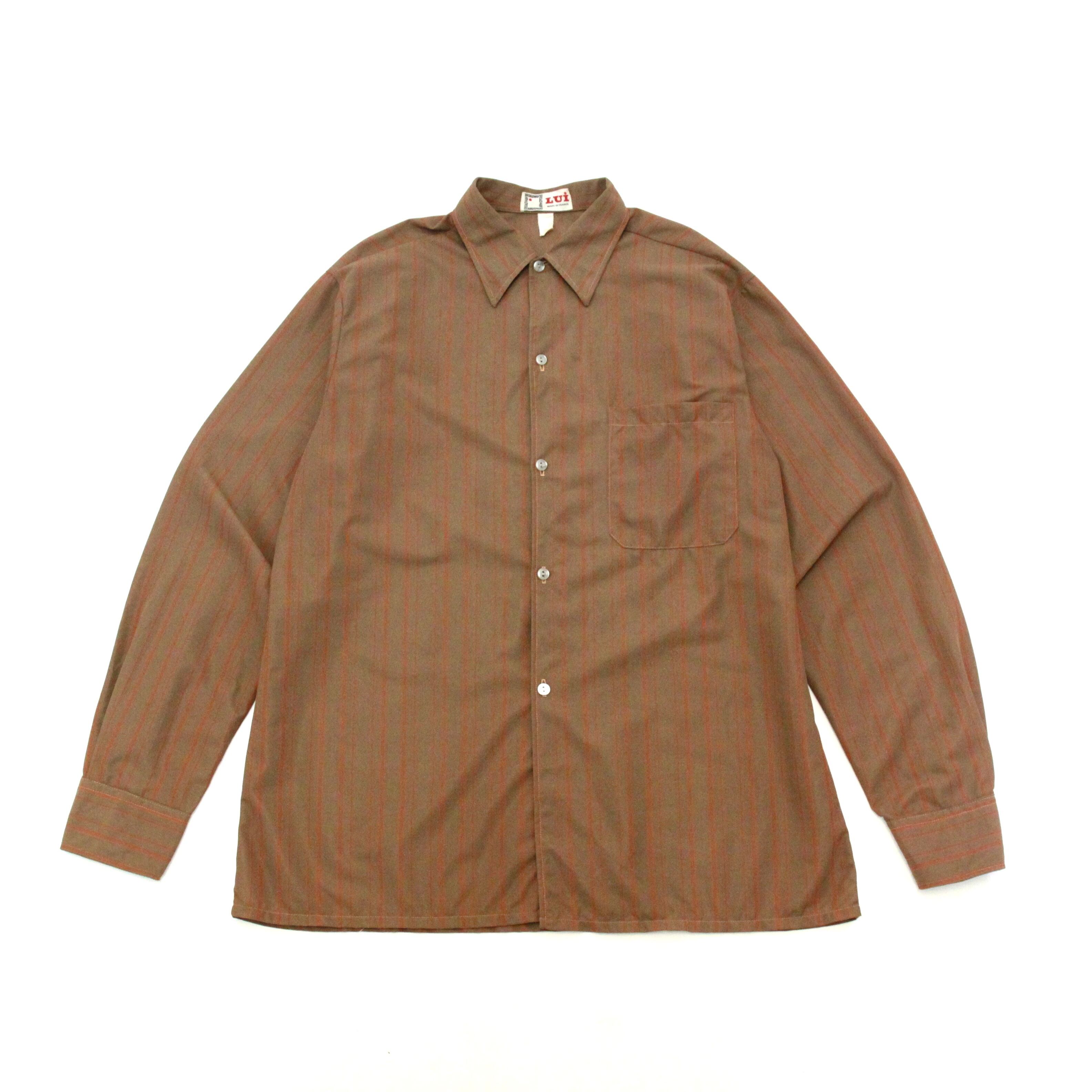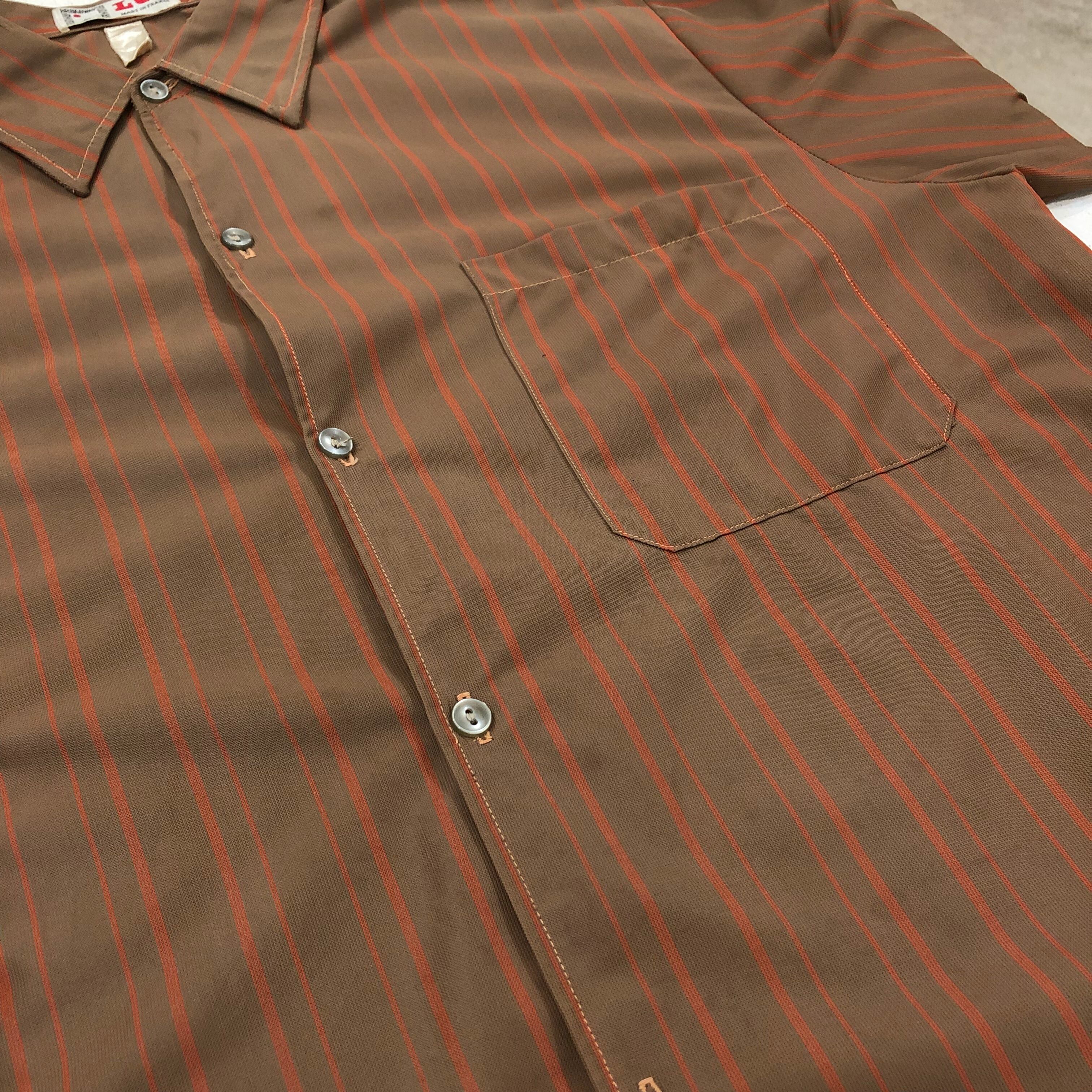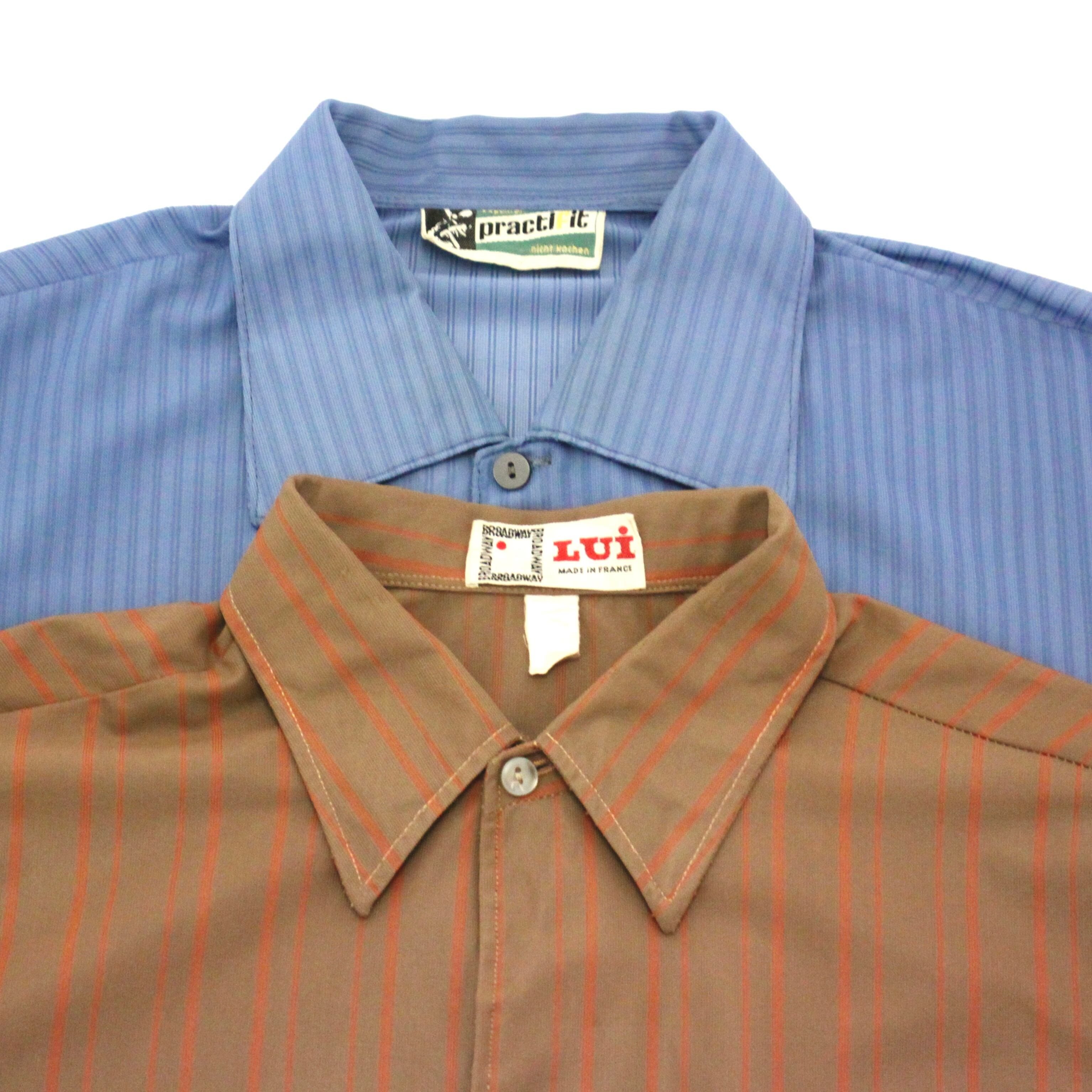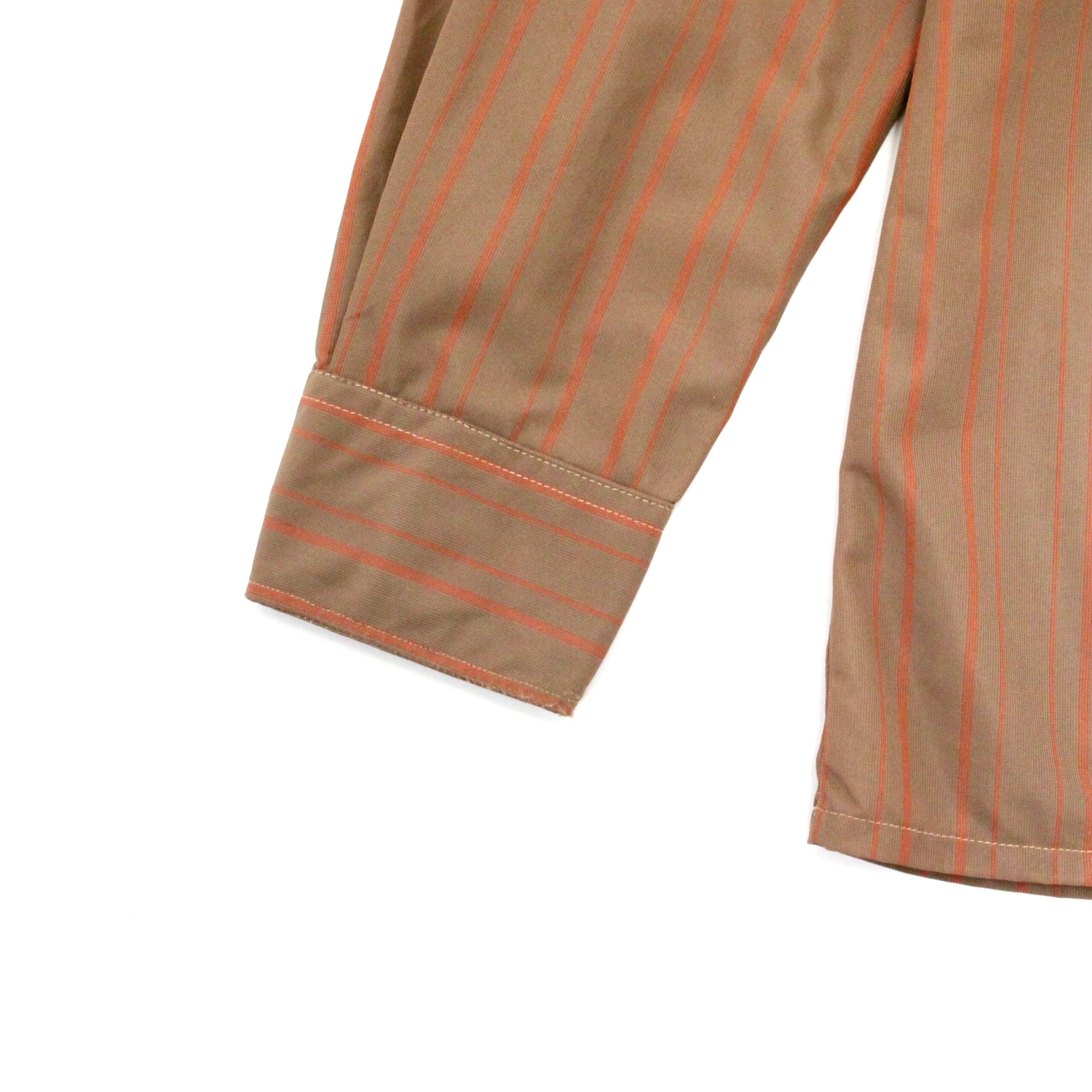 0034 / ~ 1970's euro striped nylon shirt サックスブルー ブラウン × オレンジ フランス製 長袖シャツ ナイロンシャツ 70s 70年代 vintage 古着