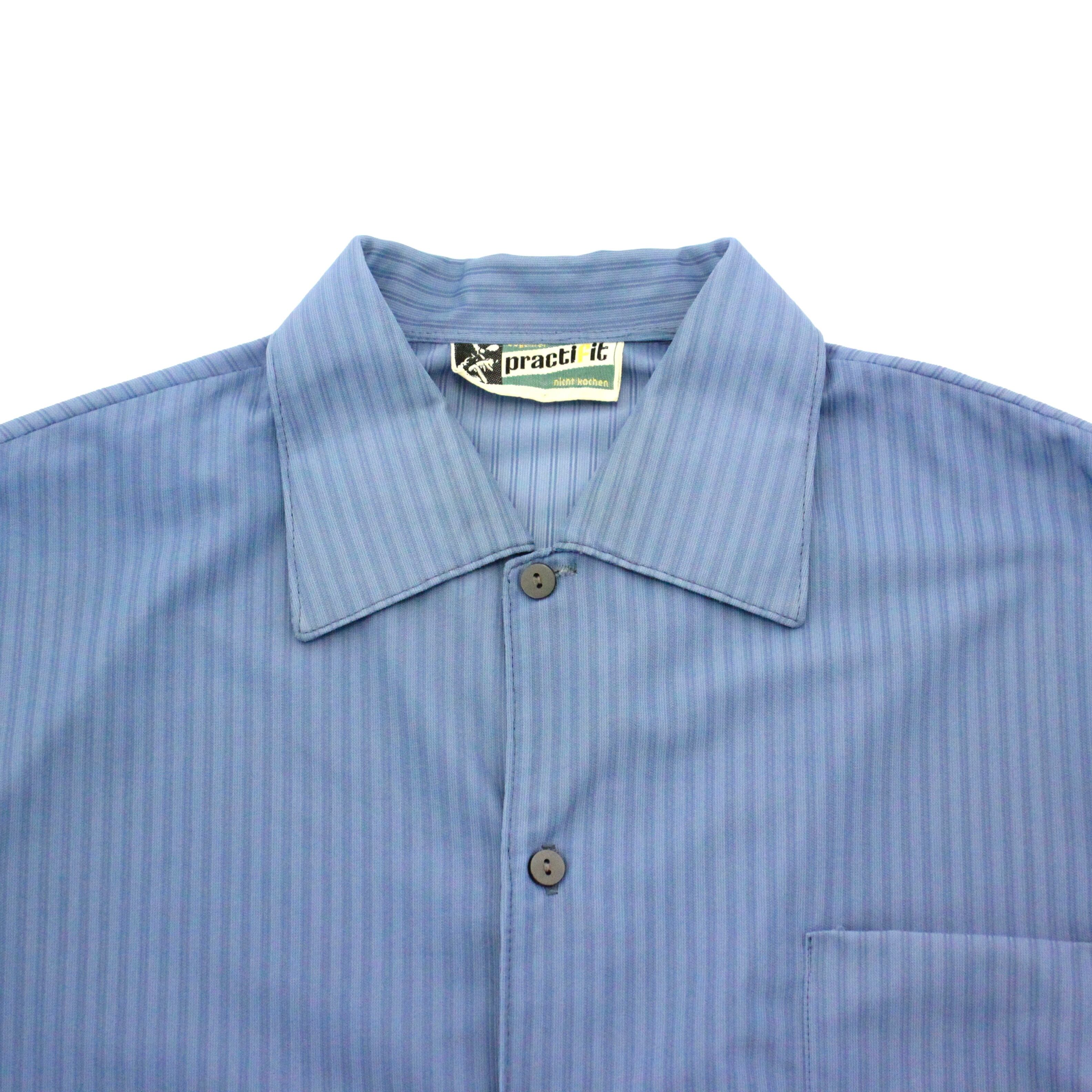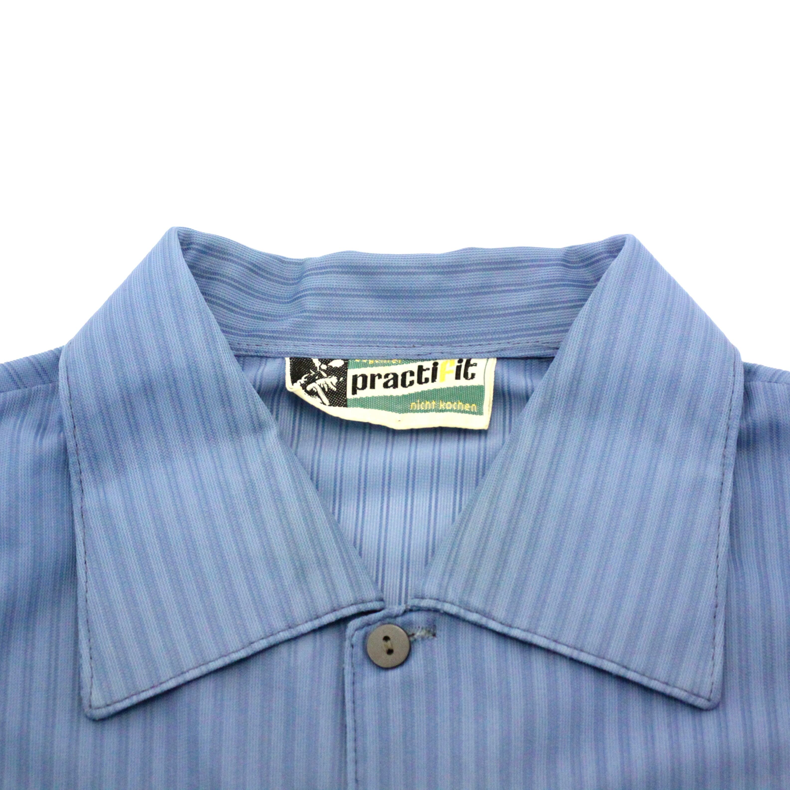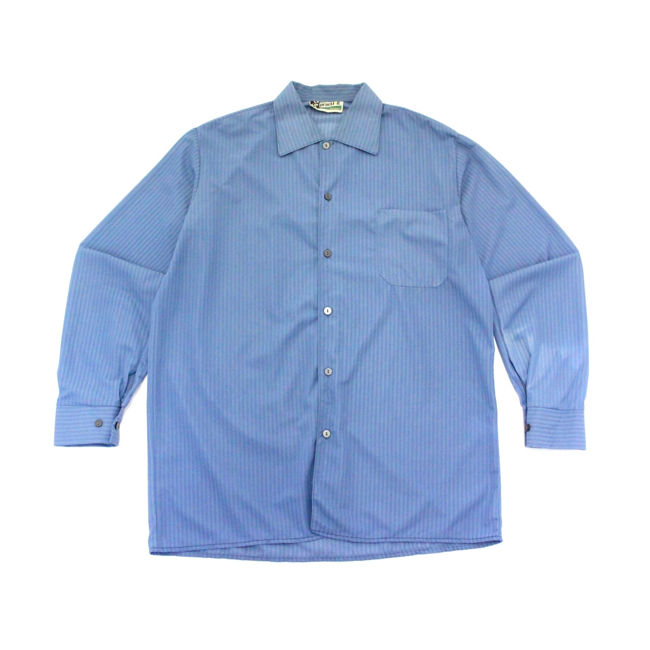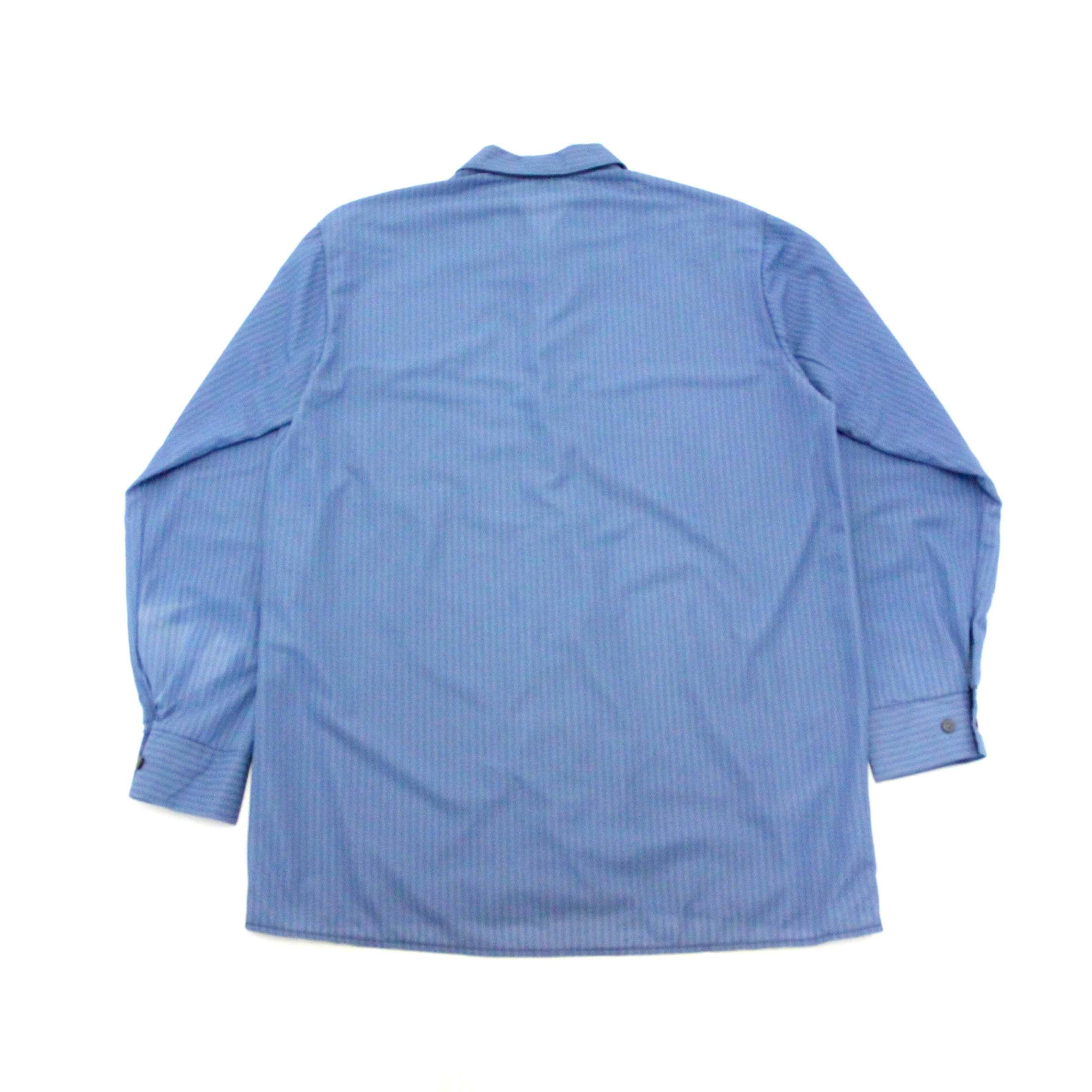 0034 / ~ 1970's euro striped nylon shirt サックスブルー ブラウン × オレンジ フランス製 長袖シャツ ナイロンシャツ 70s 70年代 vintage 古着