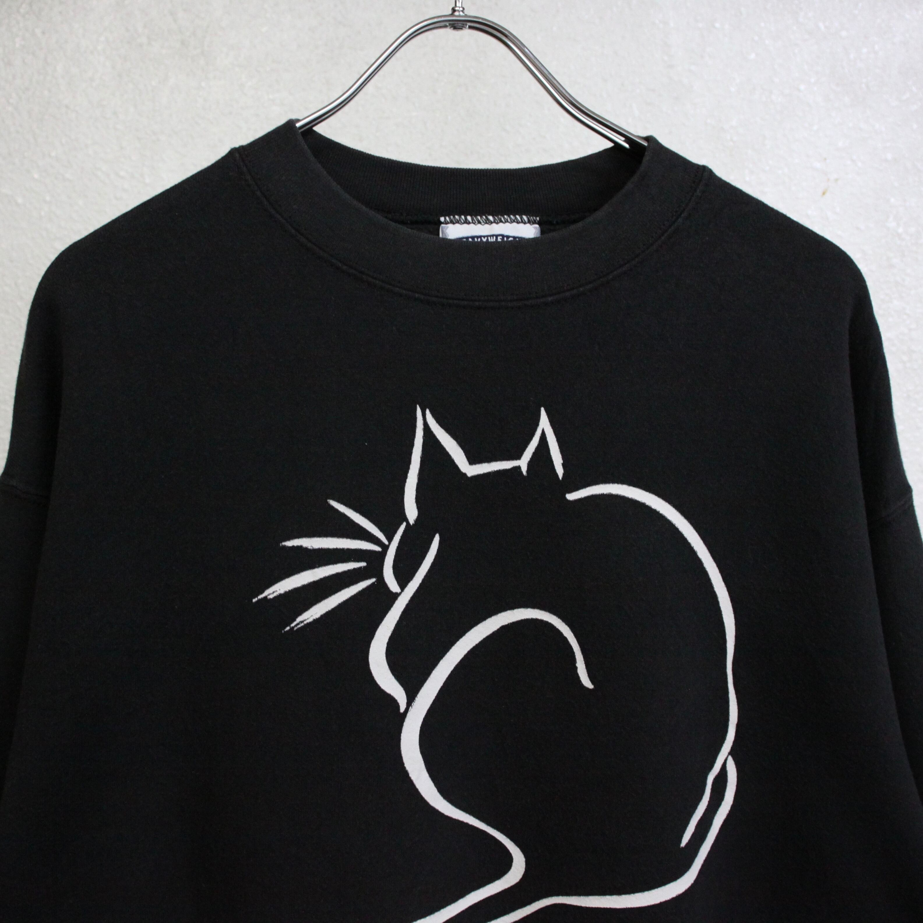 0040 / 1990's 猫 sweat ブラック プリントスウェット 漢字 動物 USA製 90s 90年代 vintage 古着