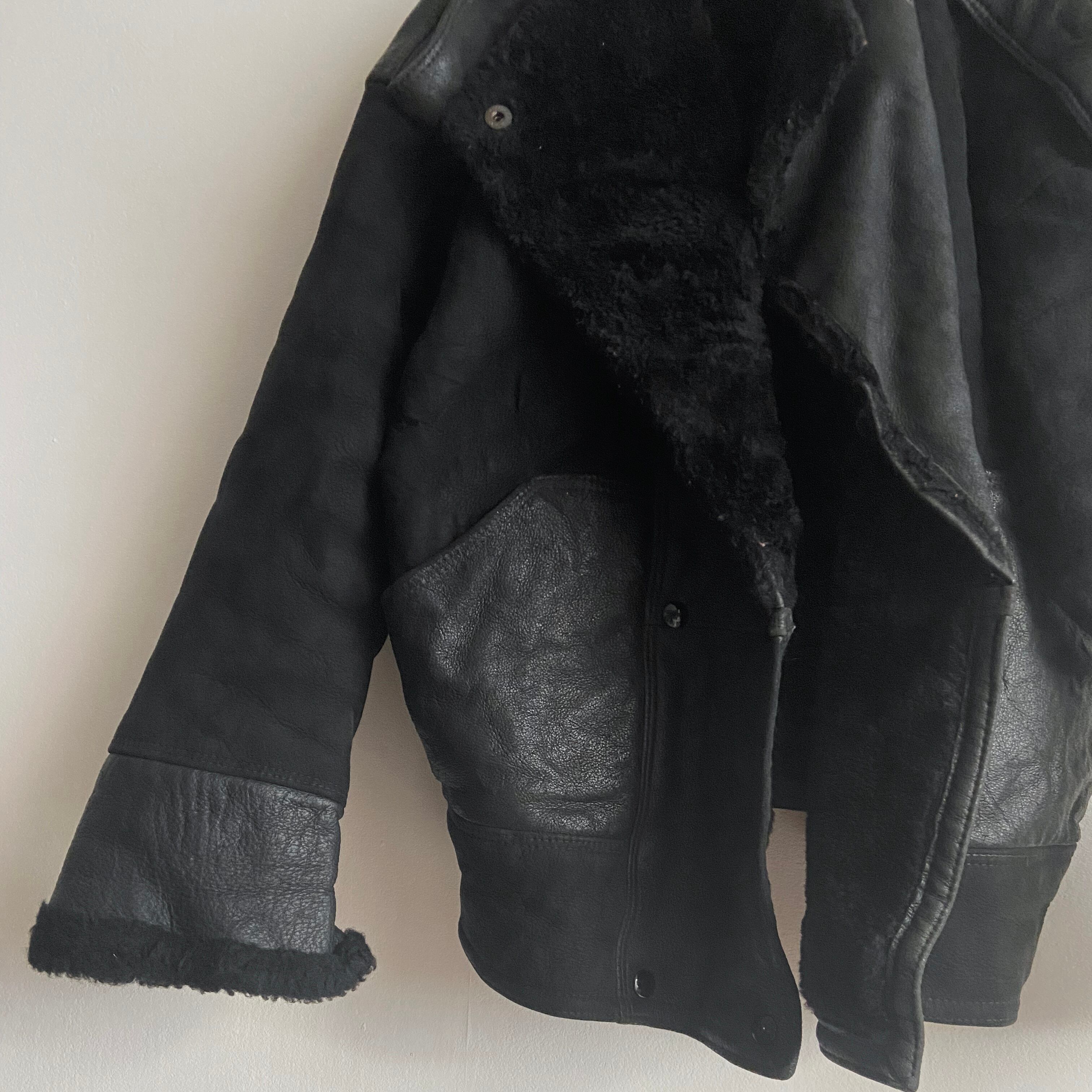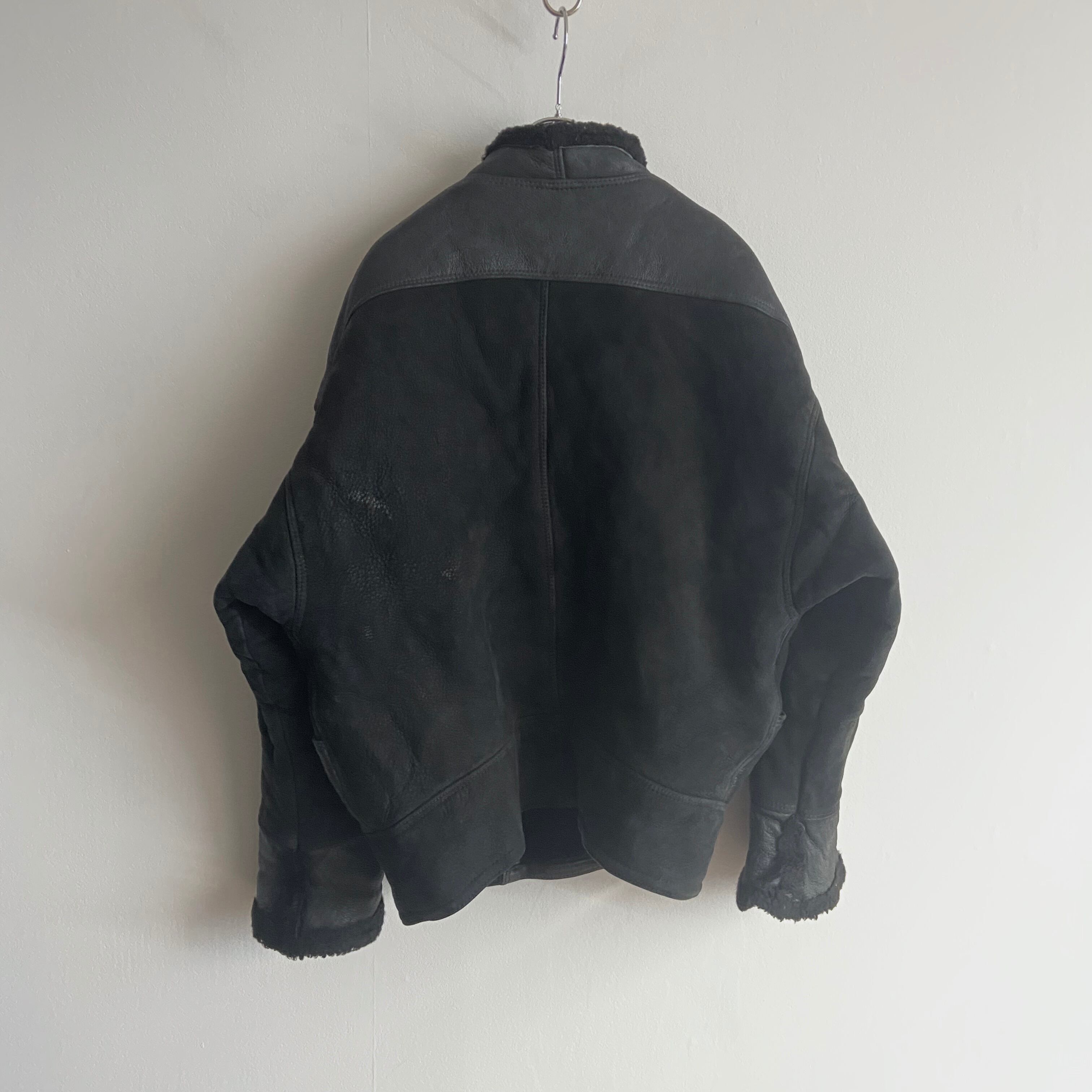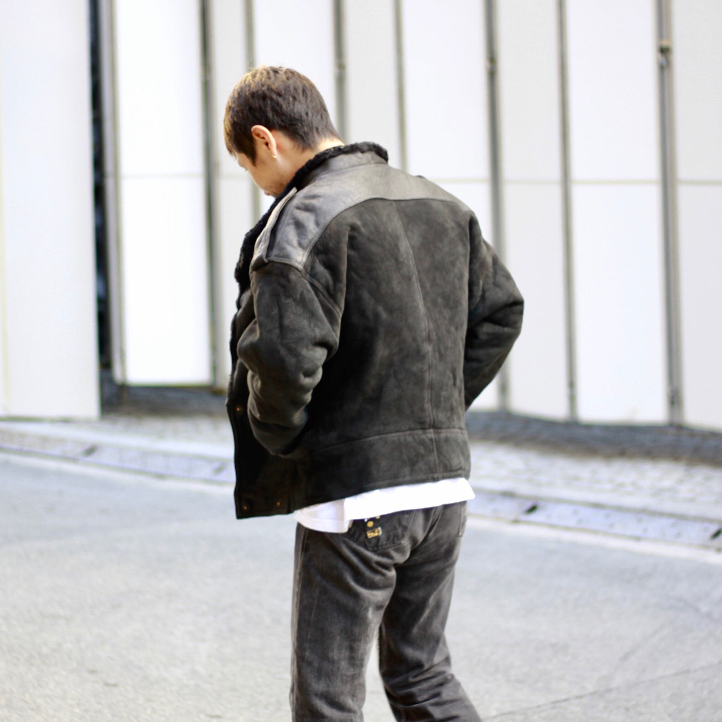 0059 / 1980's french mouton jacket ブラック ムートン レザージャケット フランス製 80s 80年代 古着 vintage
