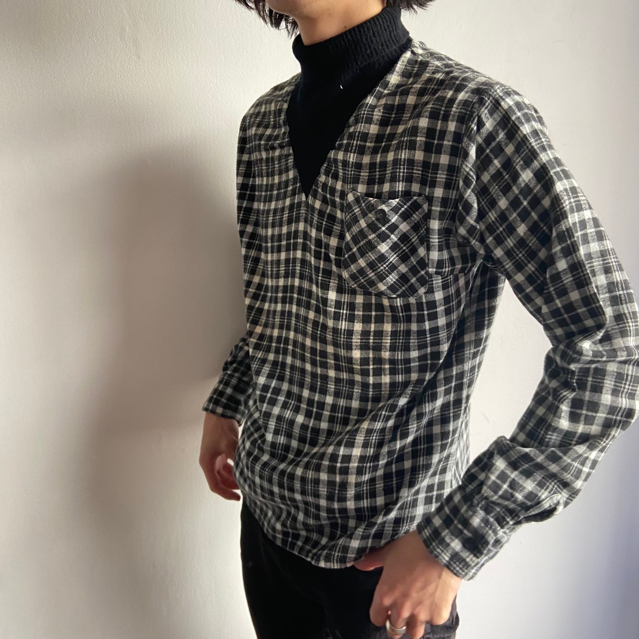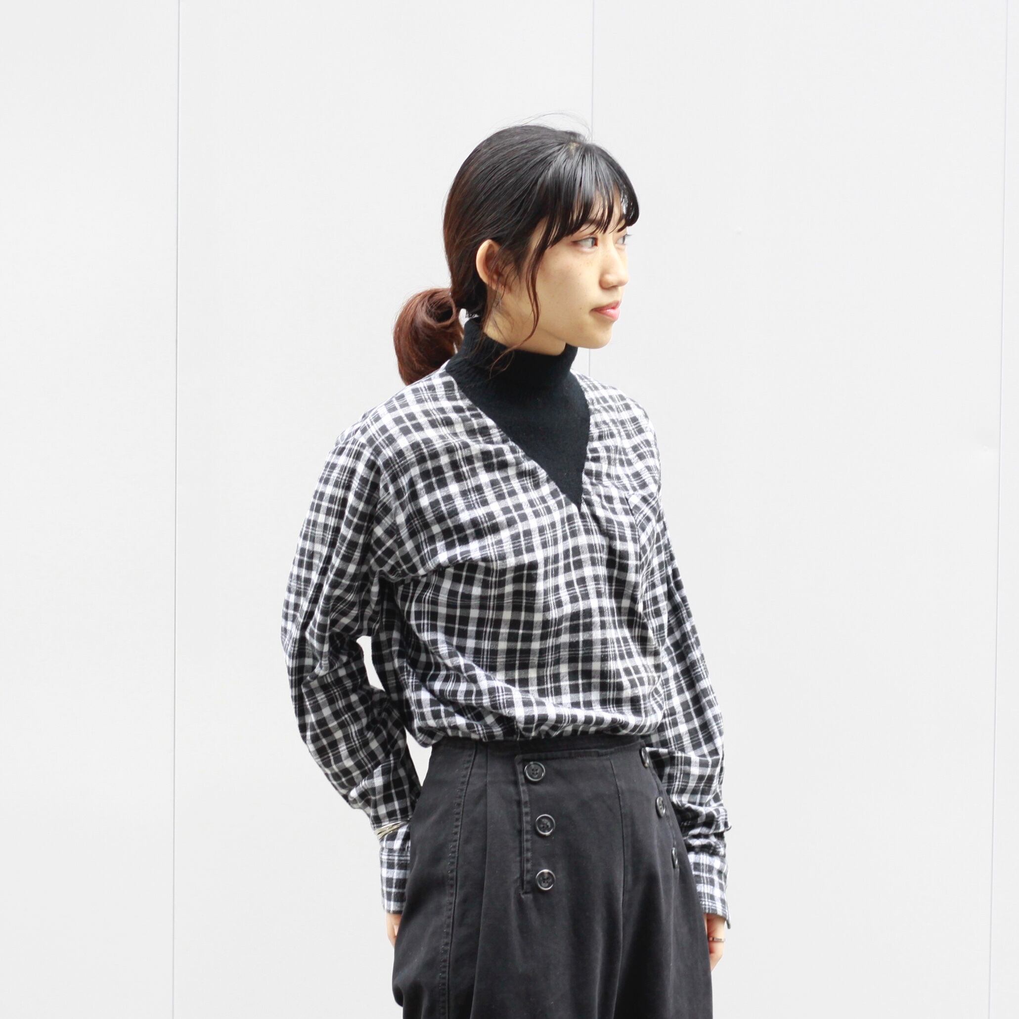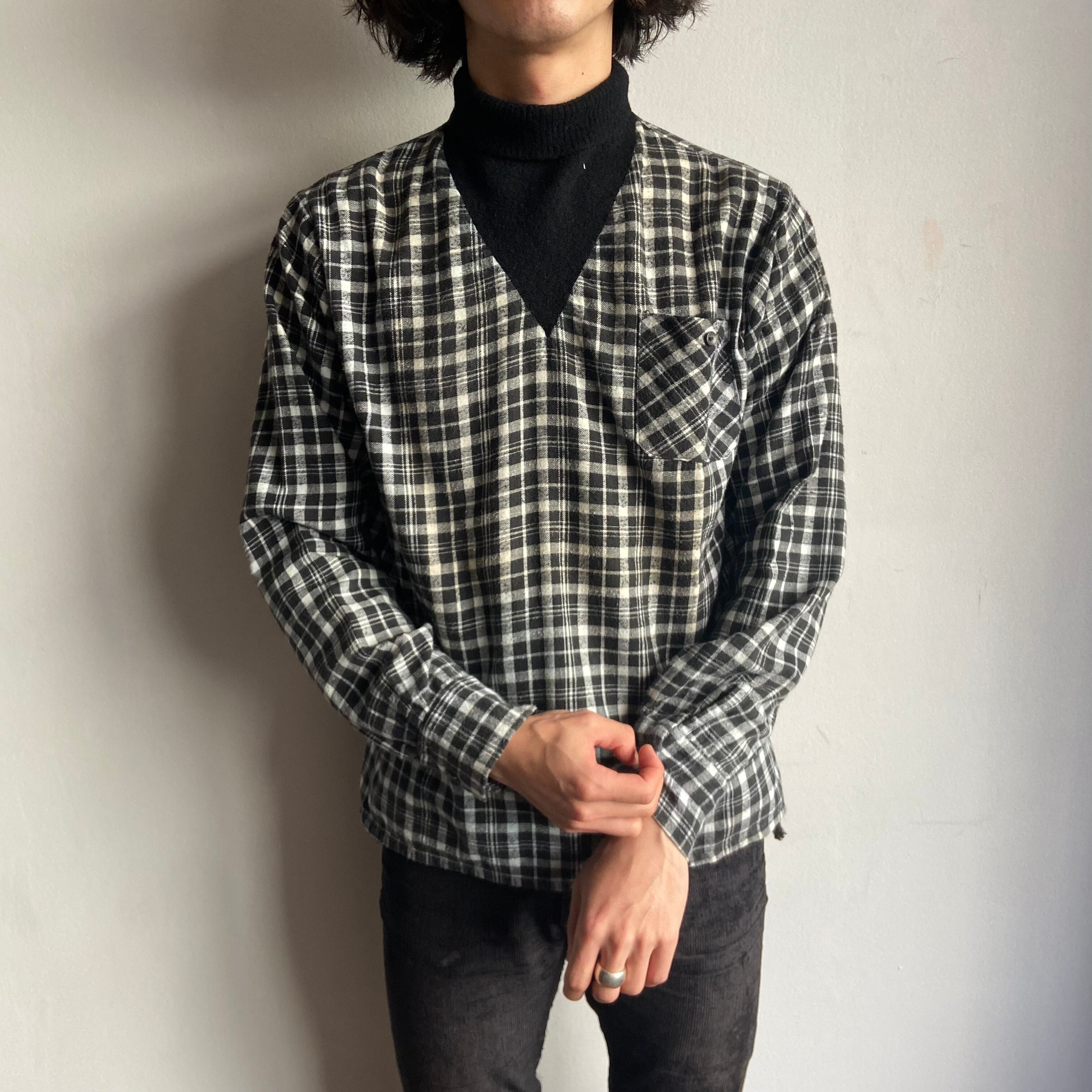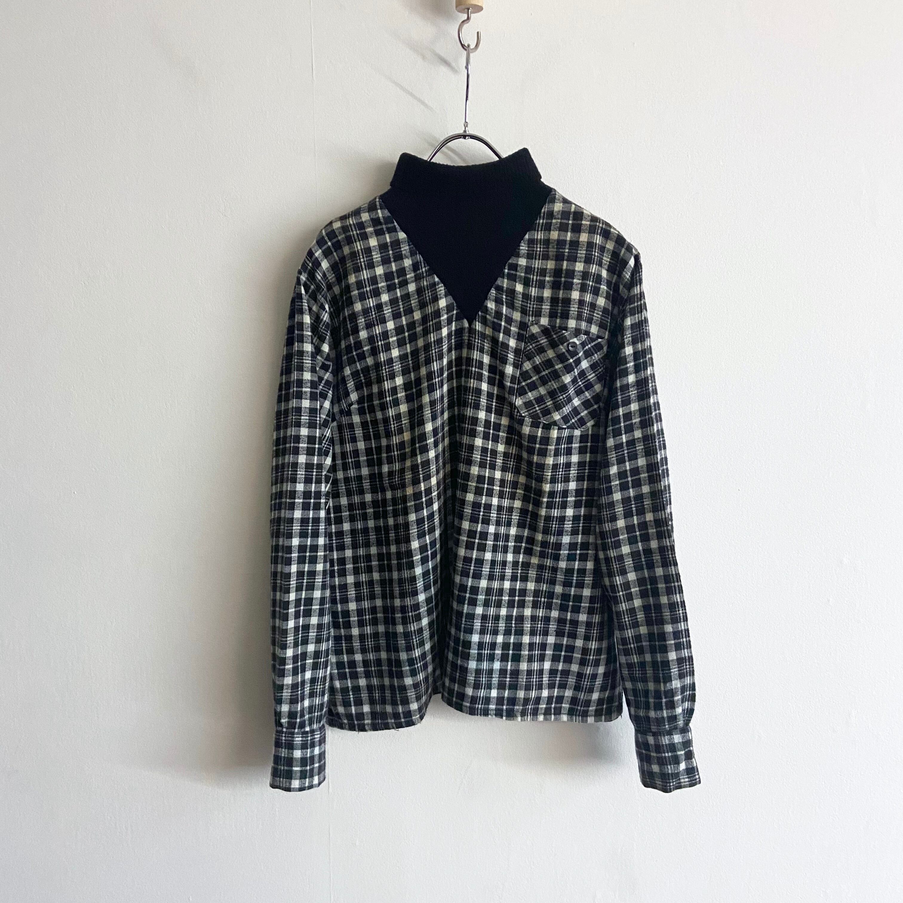 0066 / 1970's switching shirt チェック × ブラック ドッキング ヴィンテージシャツ 70s 70年代 古着 vintage