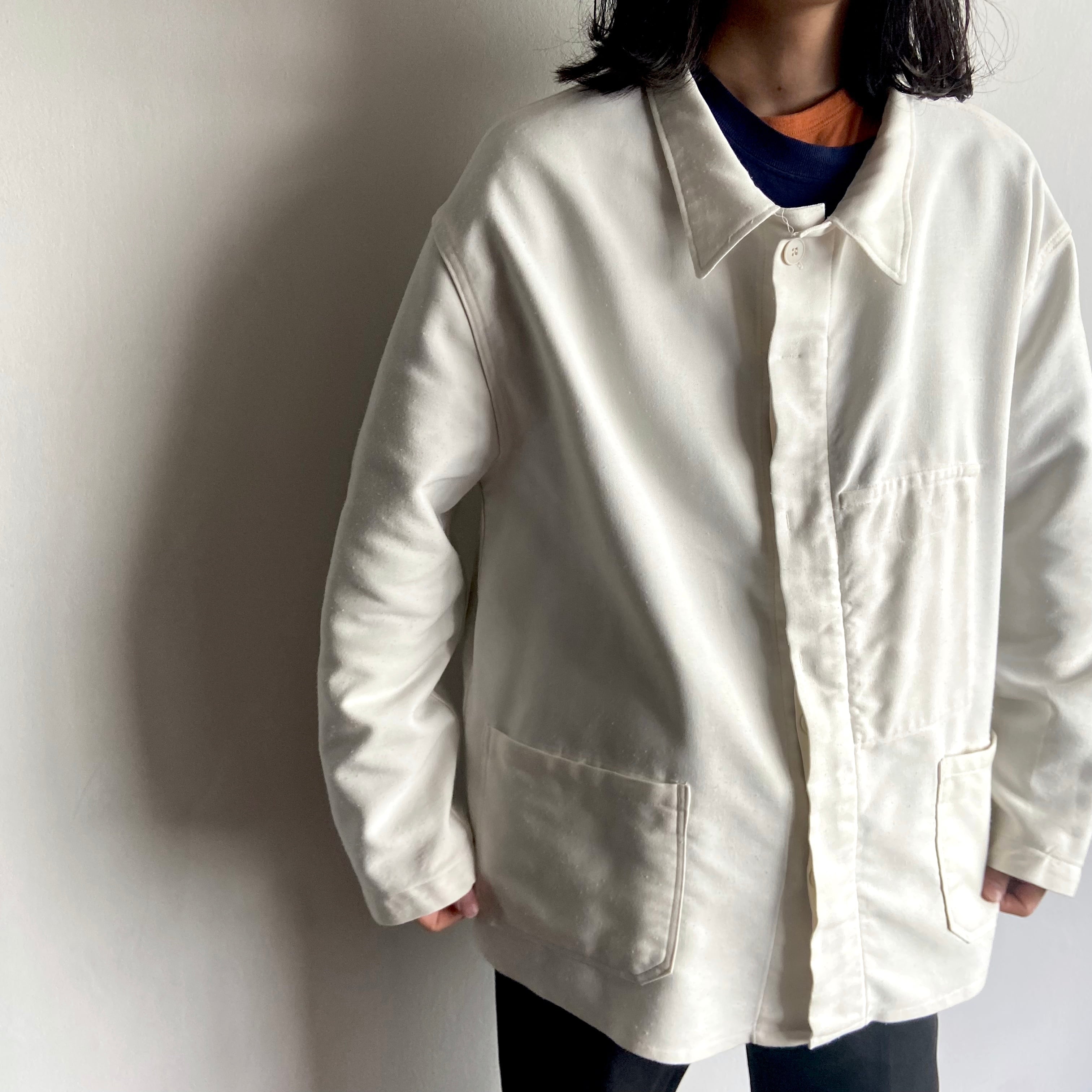 0067 / German white moleskin jacket ホワイト モールスキン カバーオール ジャケット ビッグサイズ euro work ユーロワーク 古着
