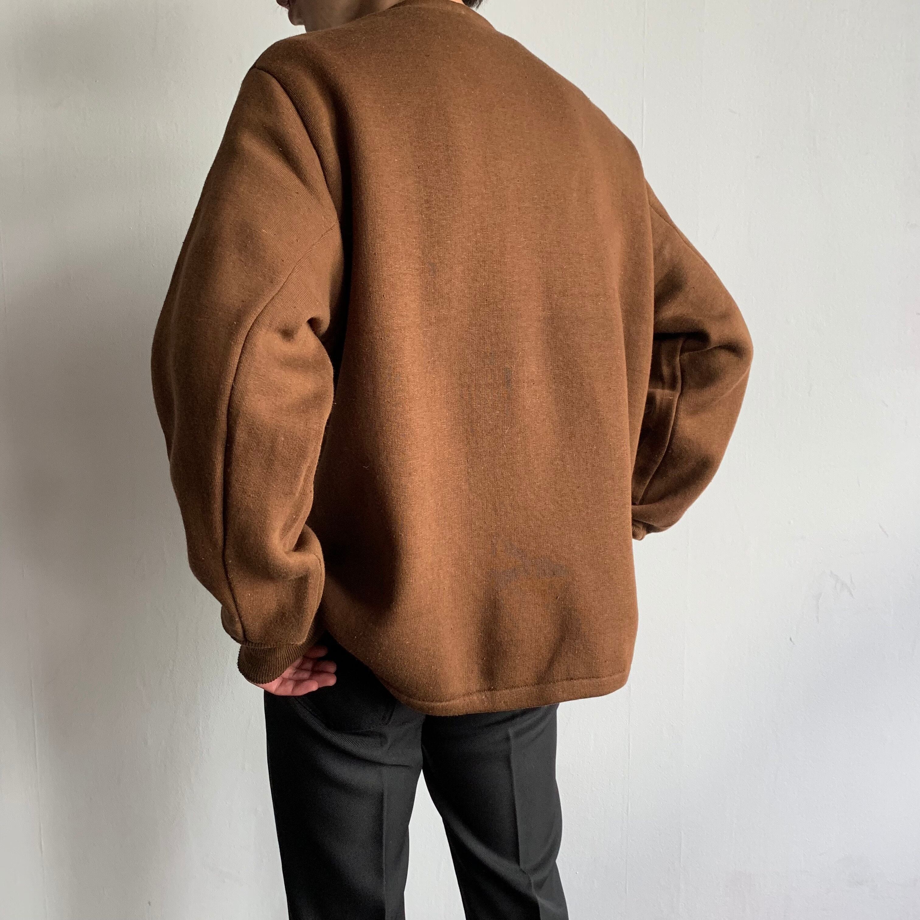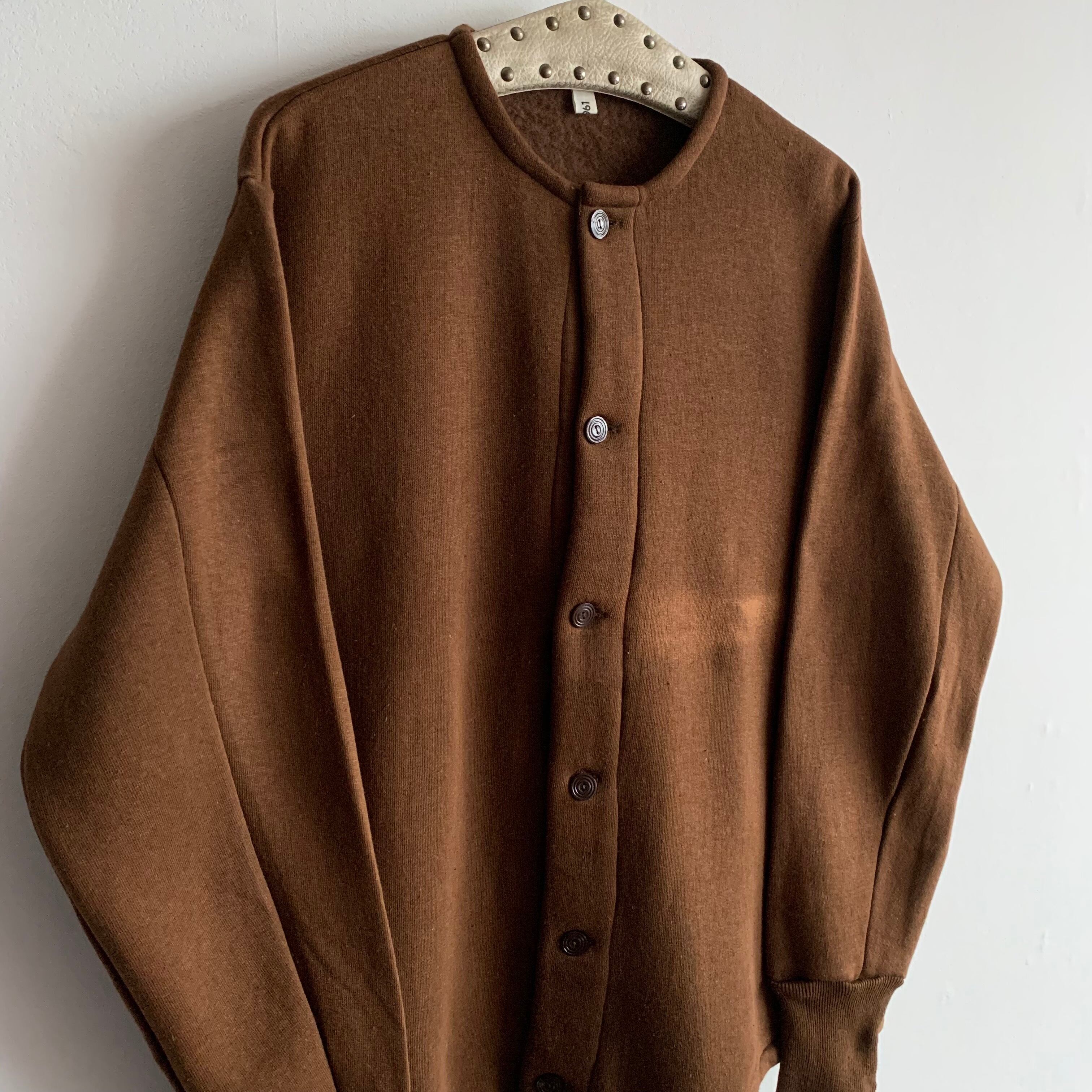 0070 / 1960's sun faded sweat cardigan ブラウン スウェットカーディガン ボタンフライ ハンガリー軍 vintage euro military ユーロミリタリー 古着
