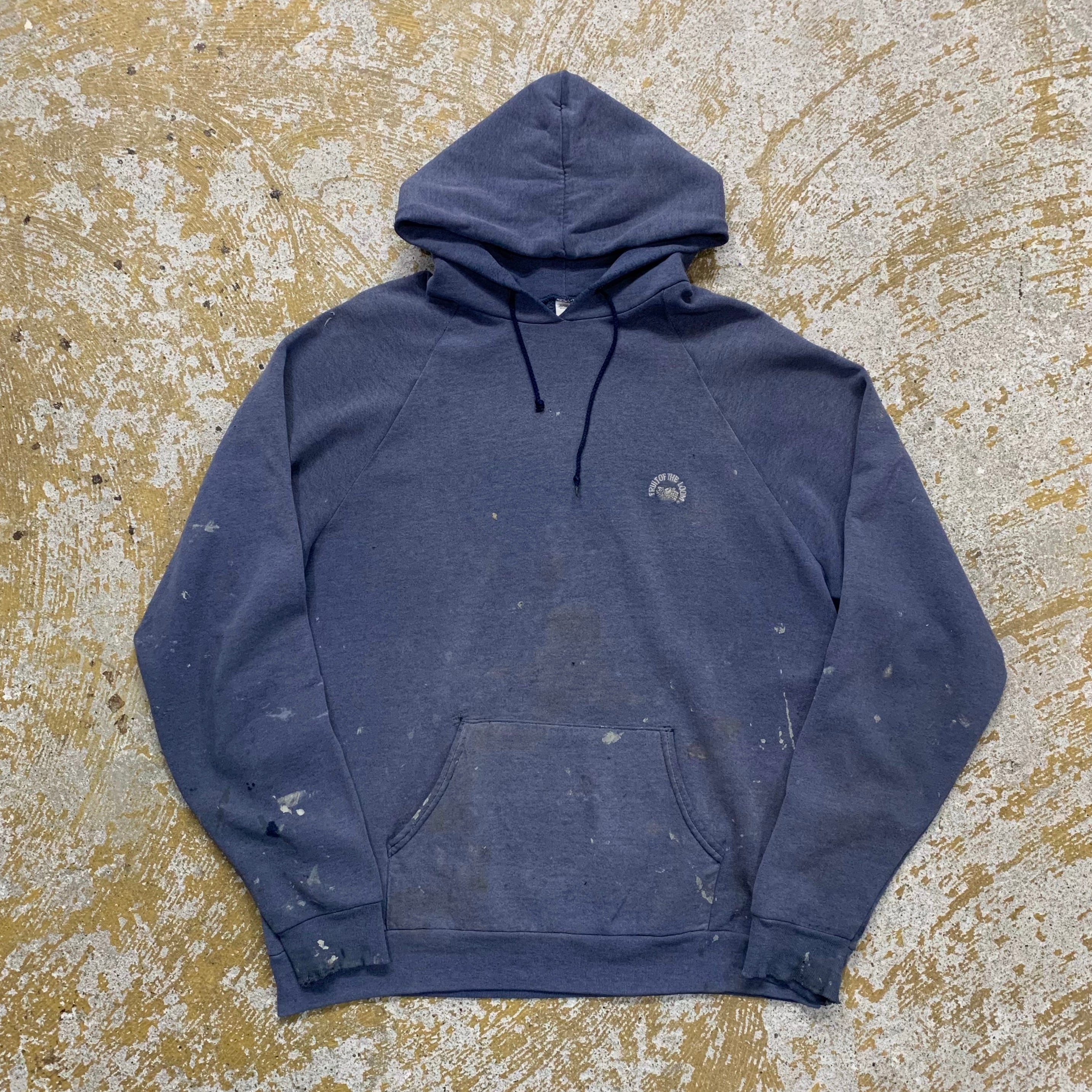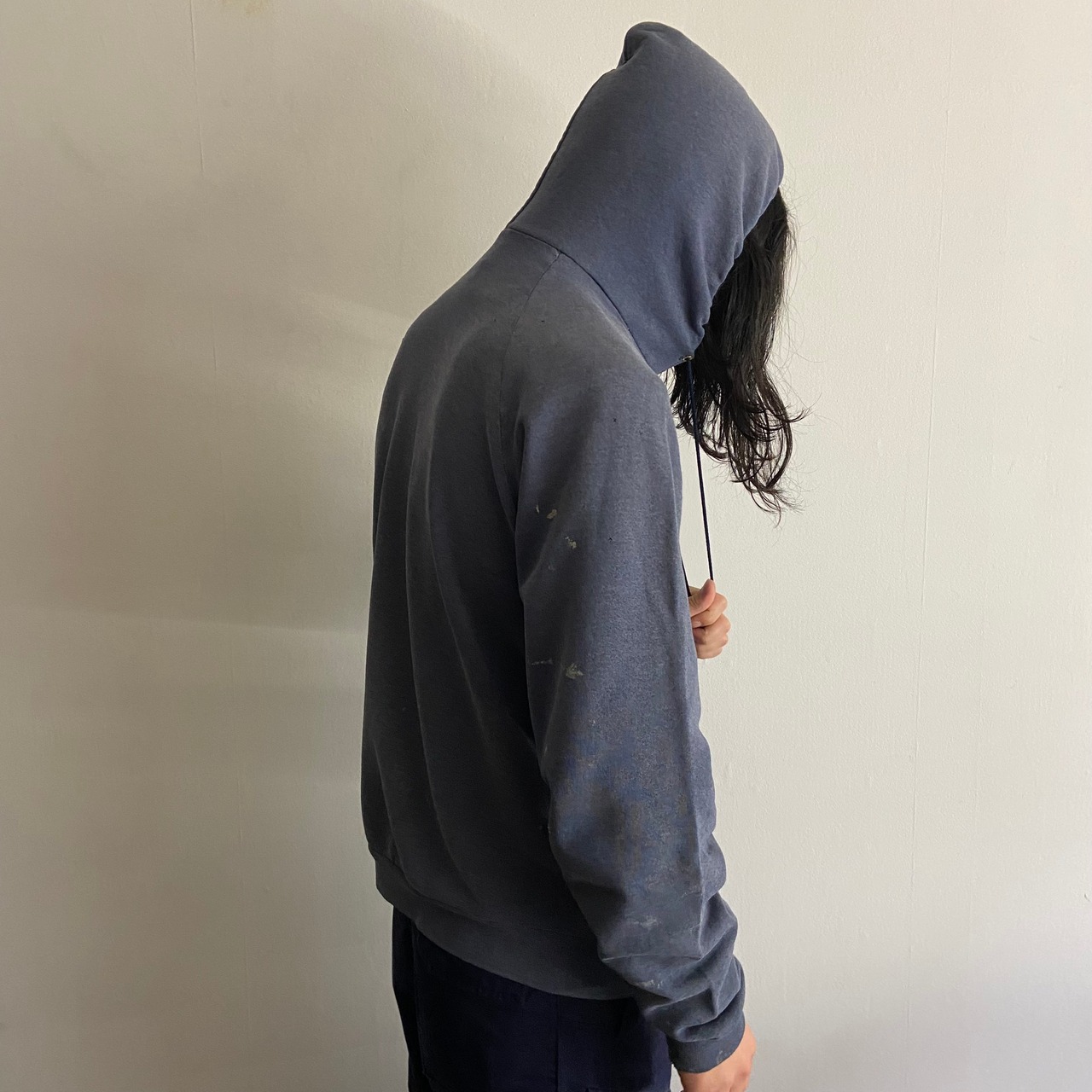 0077 / 1990's painted sweat hoodie ネイビー ペンキとび スウェットパーカー フルーツオブザルーム アイルランド製 テーラードジャケット ポロ ラルフローレン 90s 90年代 euro vintage fruit of the loom ユーロ古着