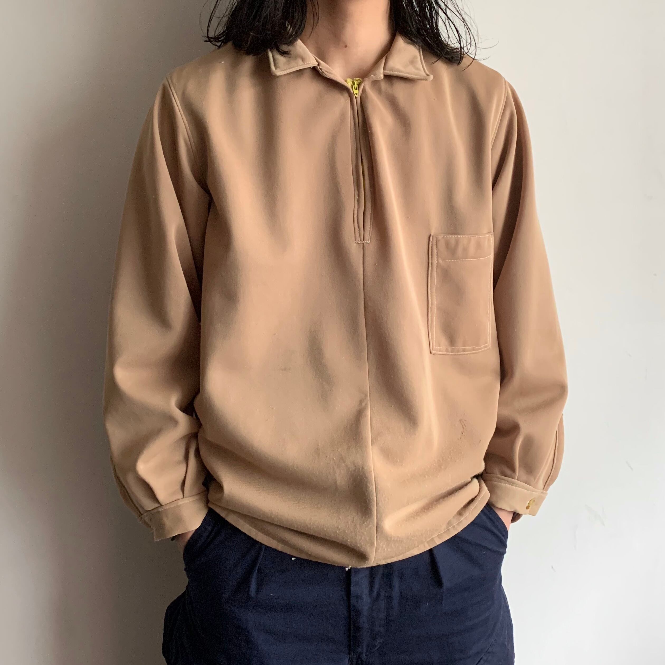 0089 / 1970's handmade? pullover shirt ベージュ ハンドメイド? 長袖シャツ ハーフジップ プルオーバー 70s 70年代 vintage 古着