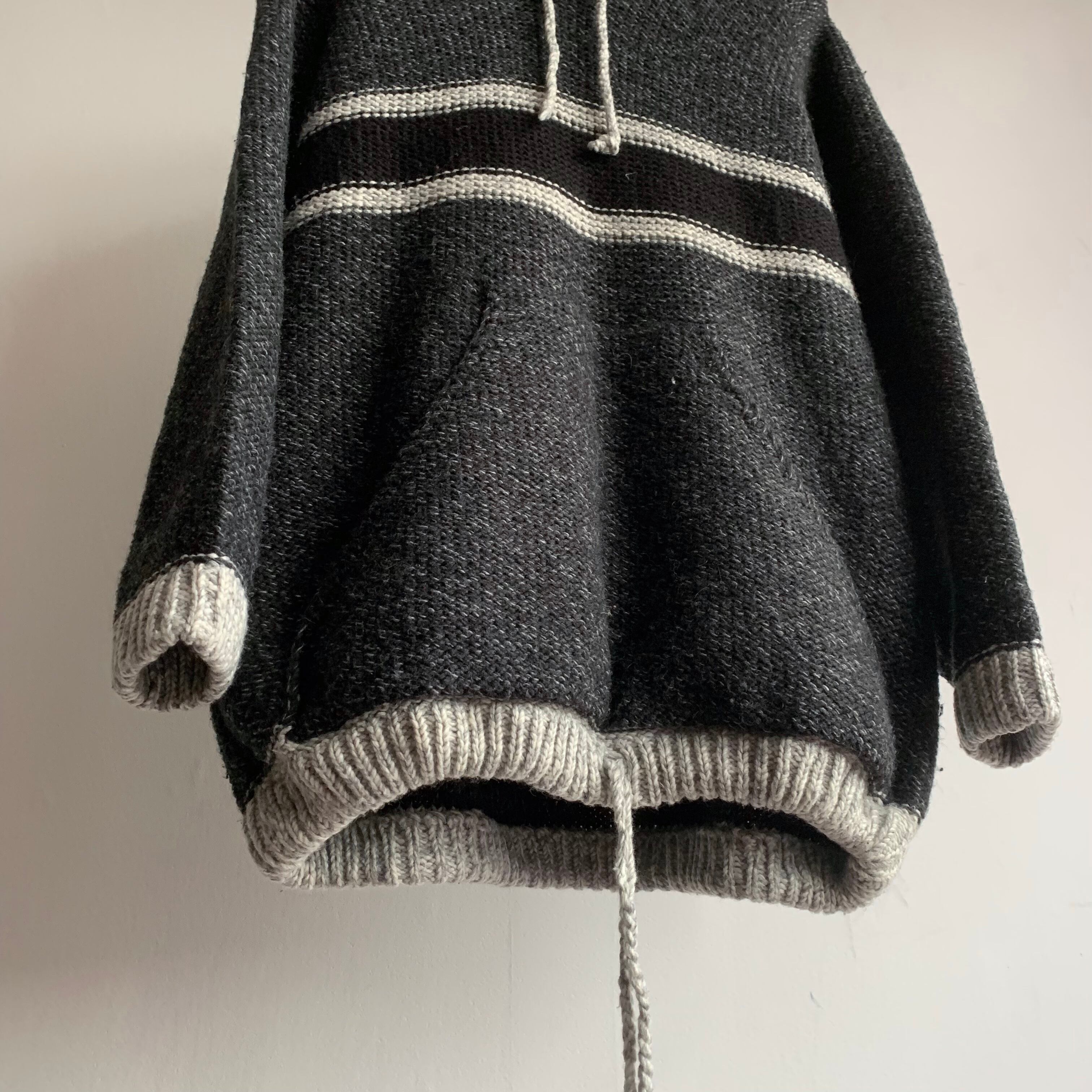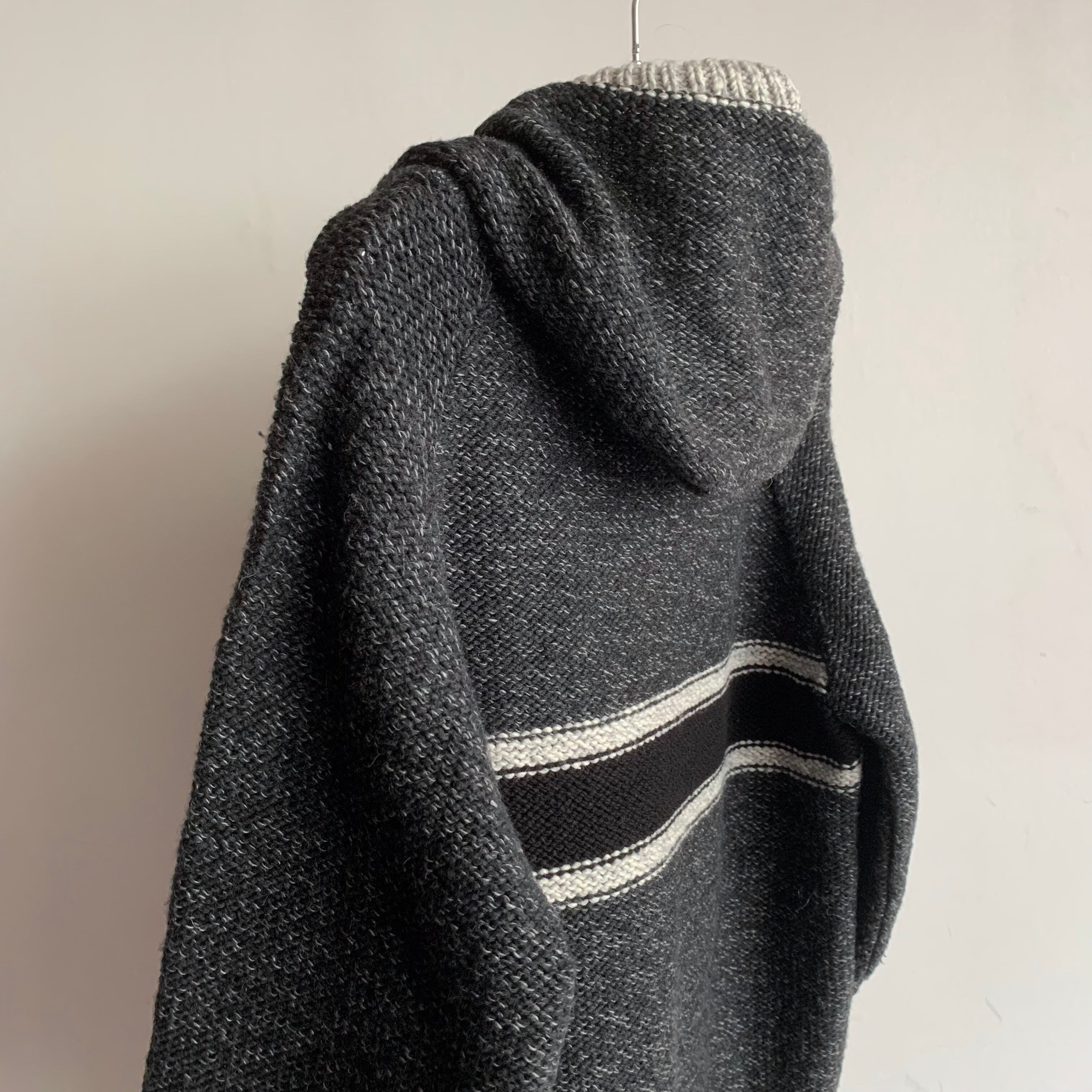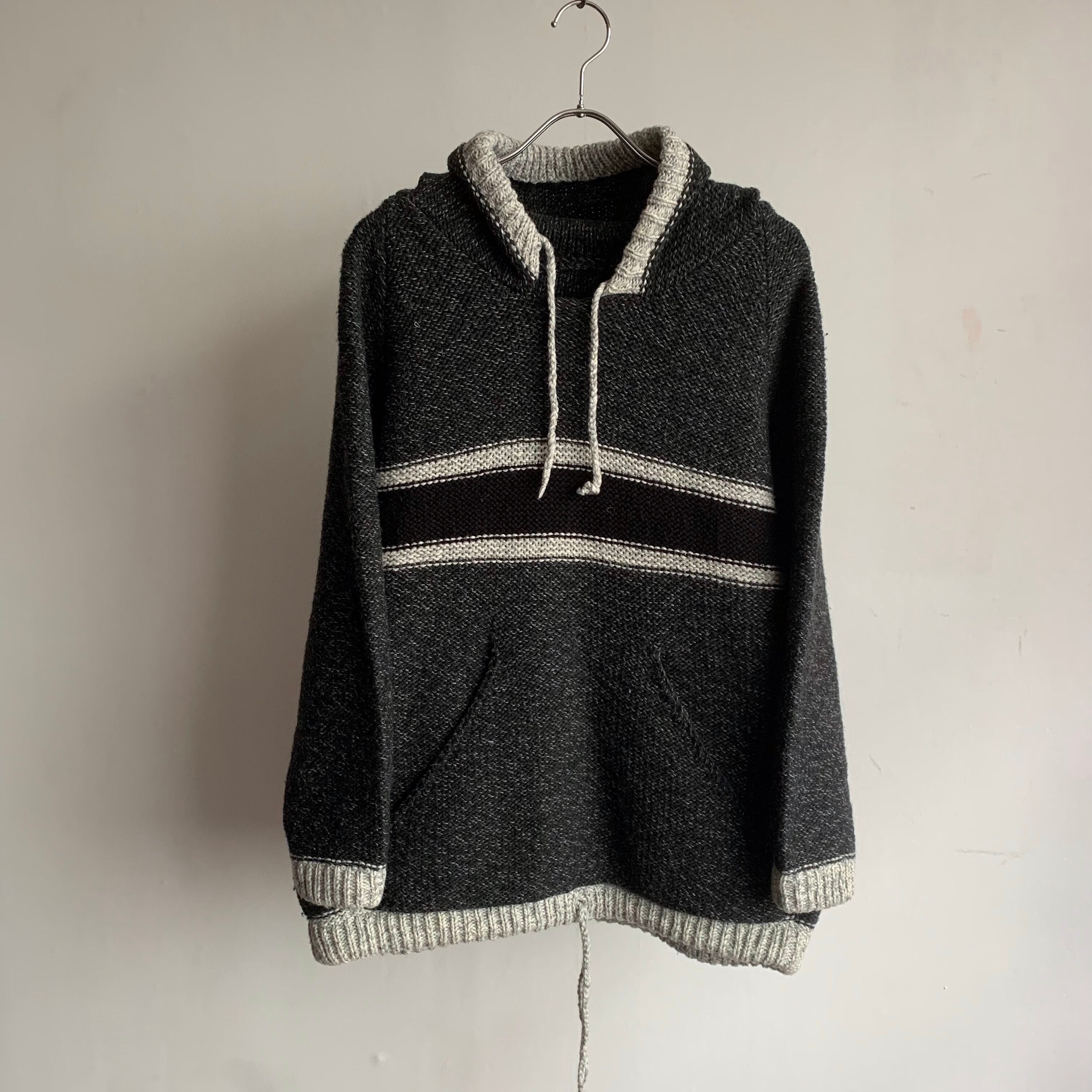 0095 / striped handknit hoodie グレー ハンドニット ボーダー パーカー 古着