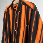 0096 / printed cords BD shirt オレンジ ストライプ プリントコーデュロイ ボタンダウン 長袖シャツ ビッグサイズ euro vintage 古着