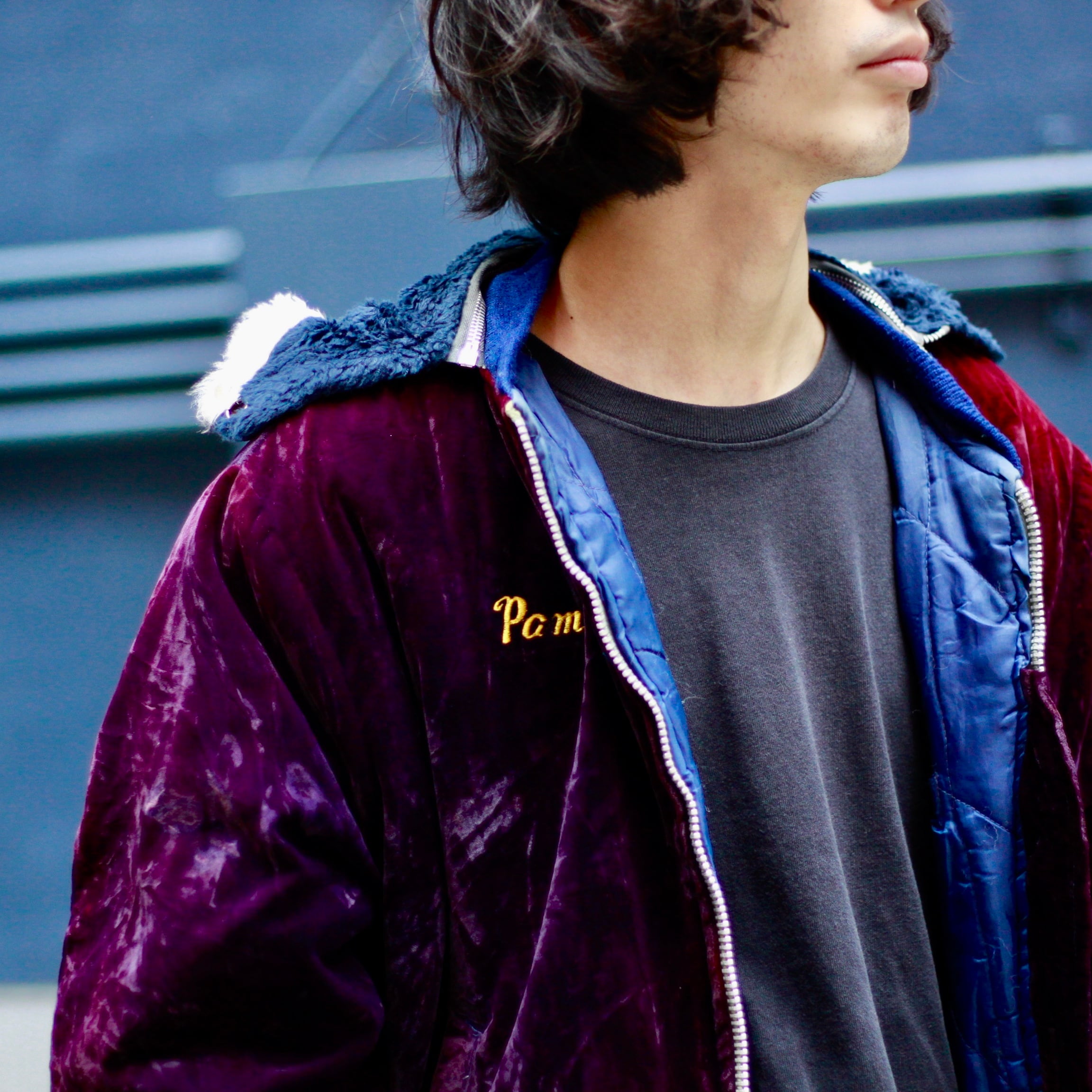 0106 / ~1980's Korea souvenir jacket パープル コリジャン スカジャン スーベニアジャケット ベロア 別珍 80s 80年代 vintage 古着