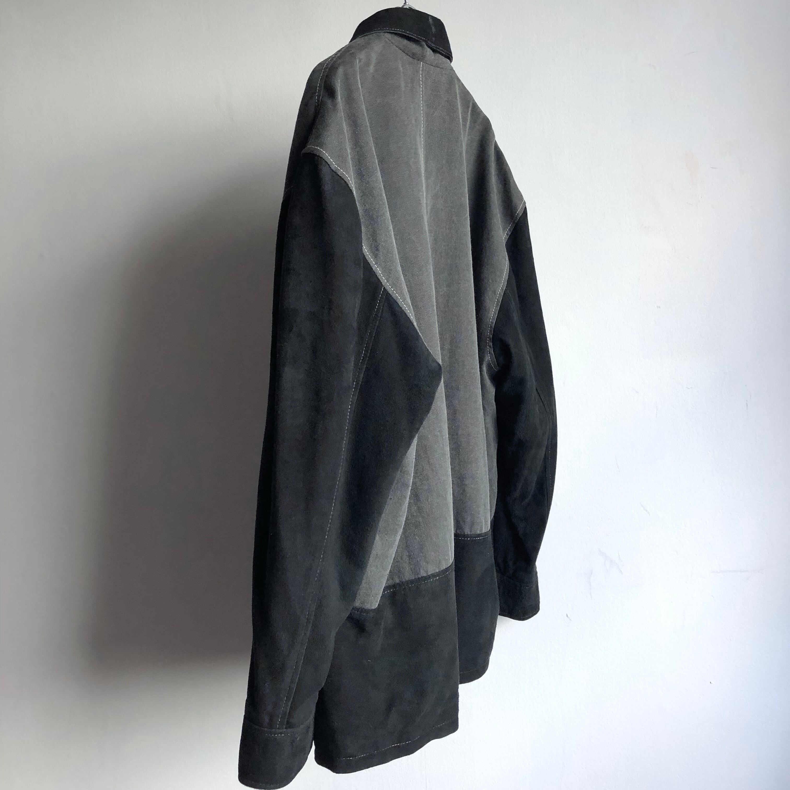 0105. 1990's canvas × suede switching jacket ブラック コットンキャンバス スエードレザー カバーオール ハーフコート 90s 90年代 euro vintage ユーロ古着