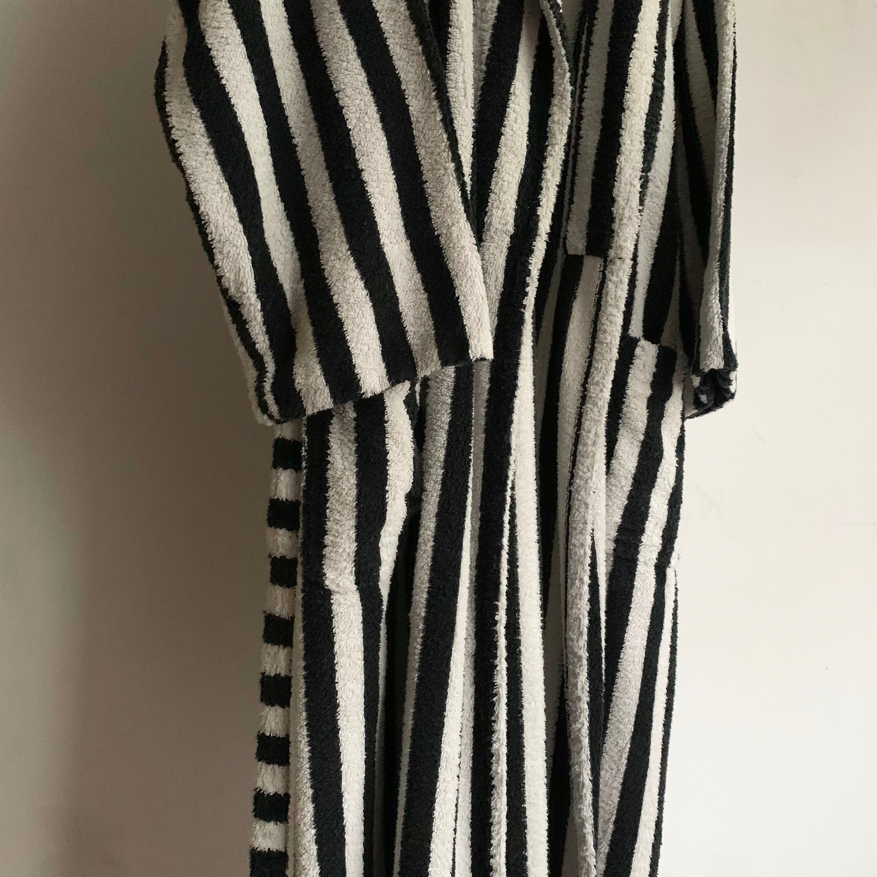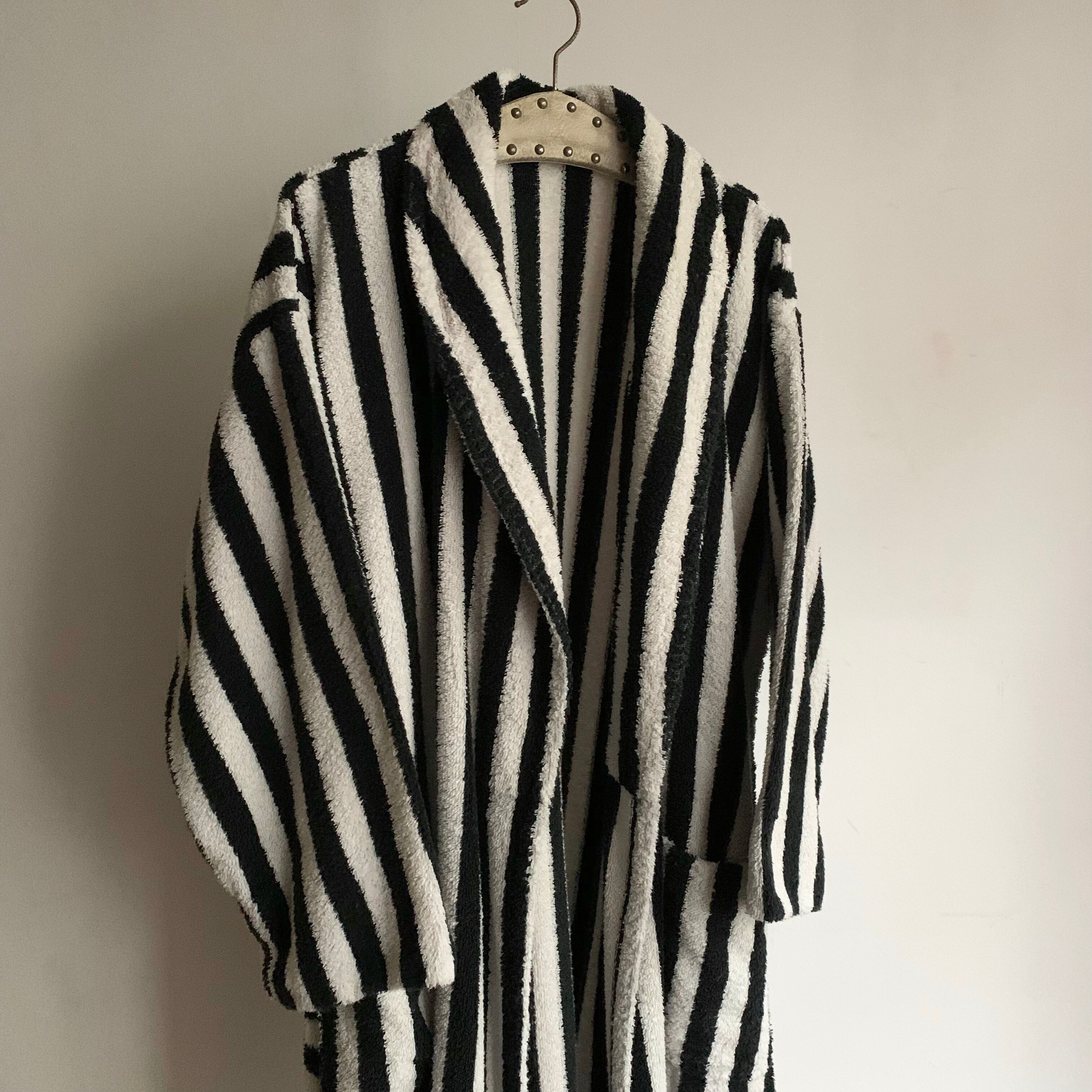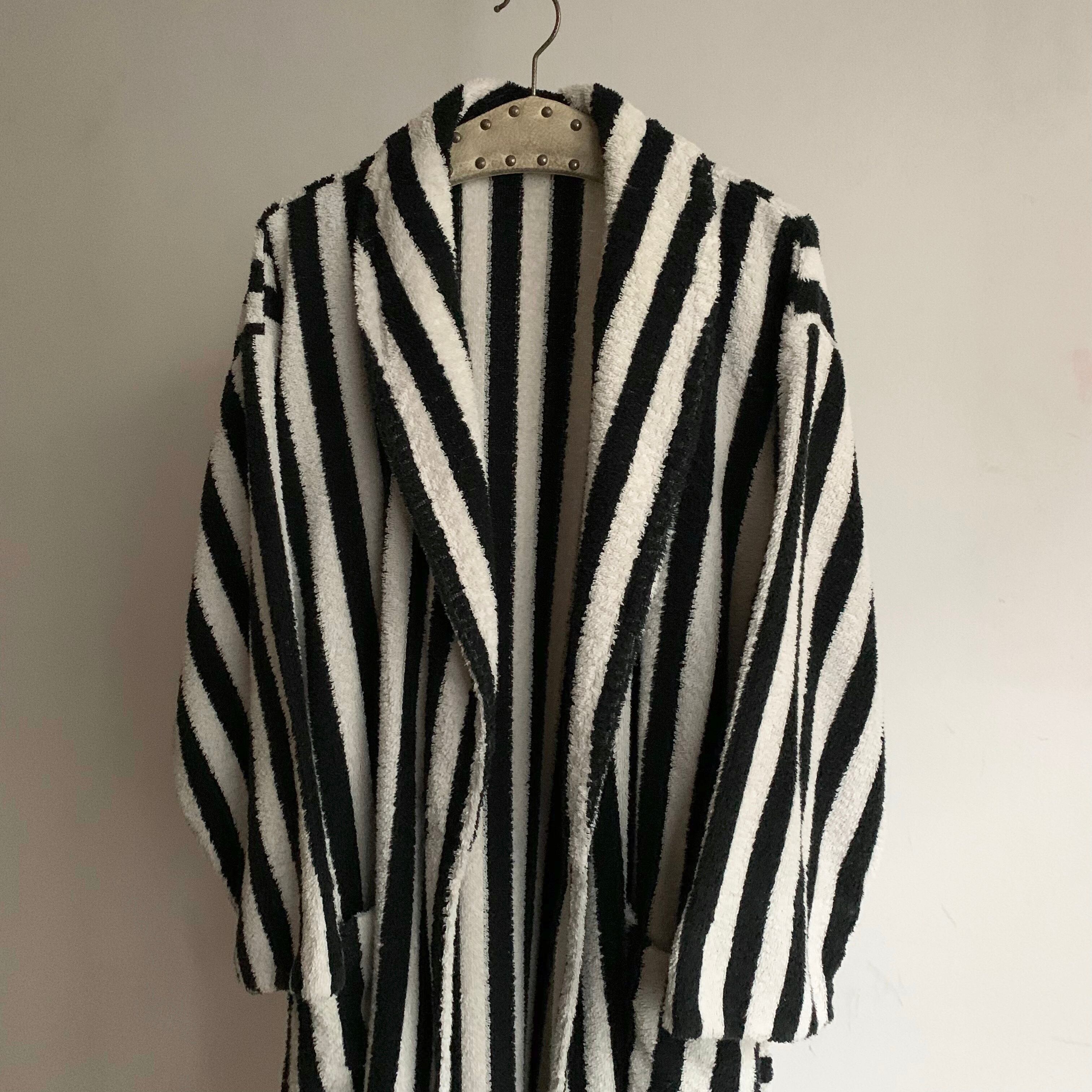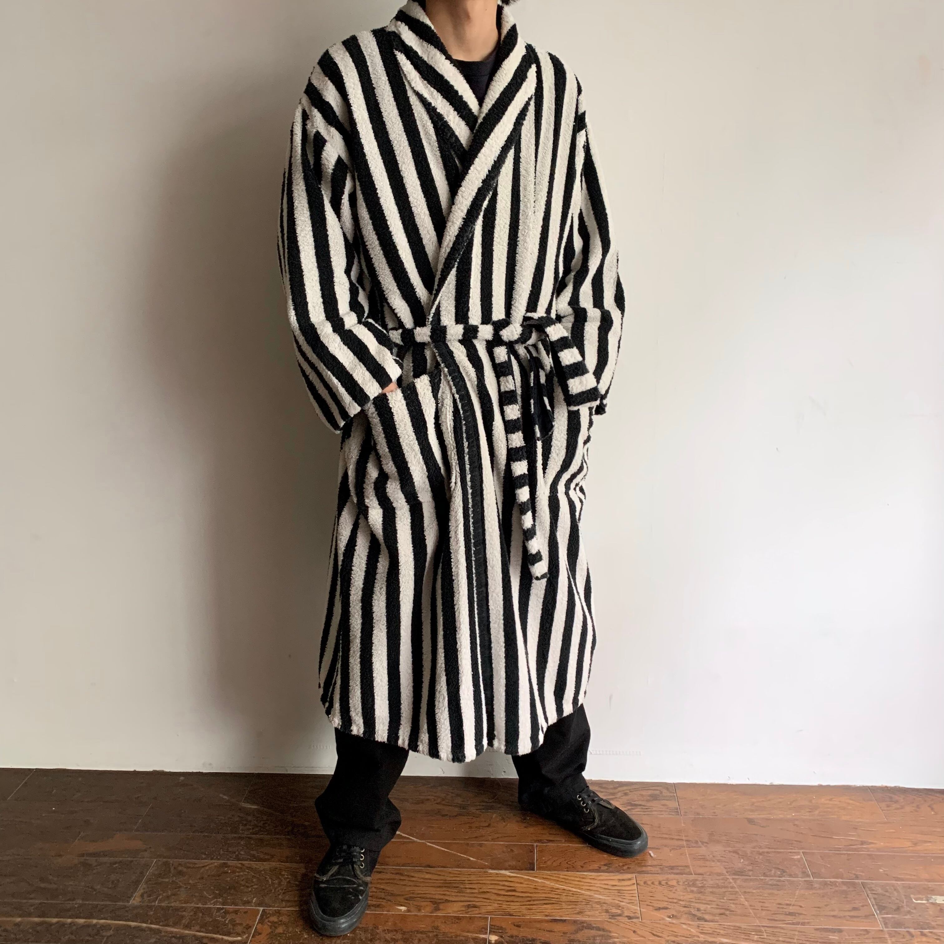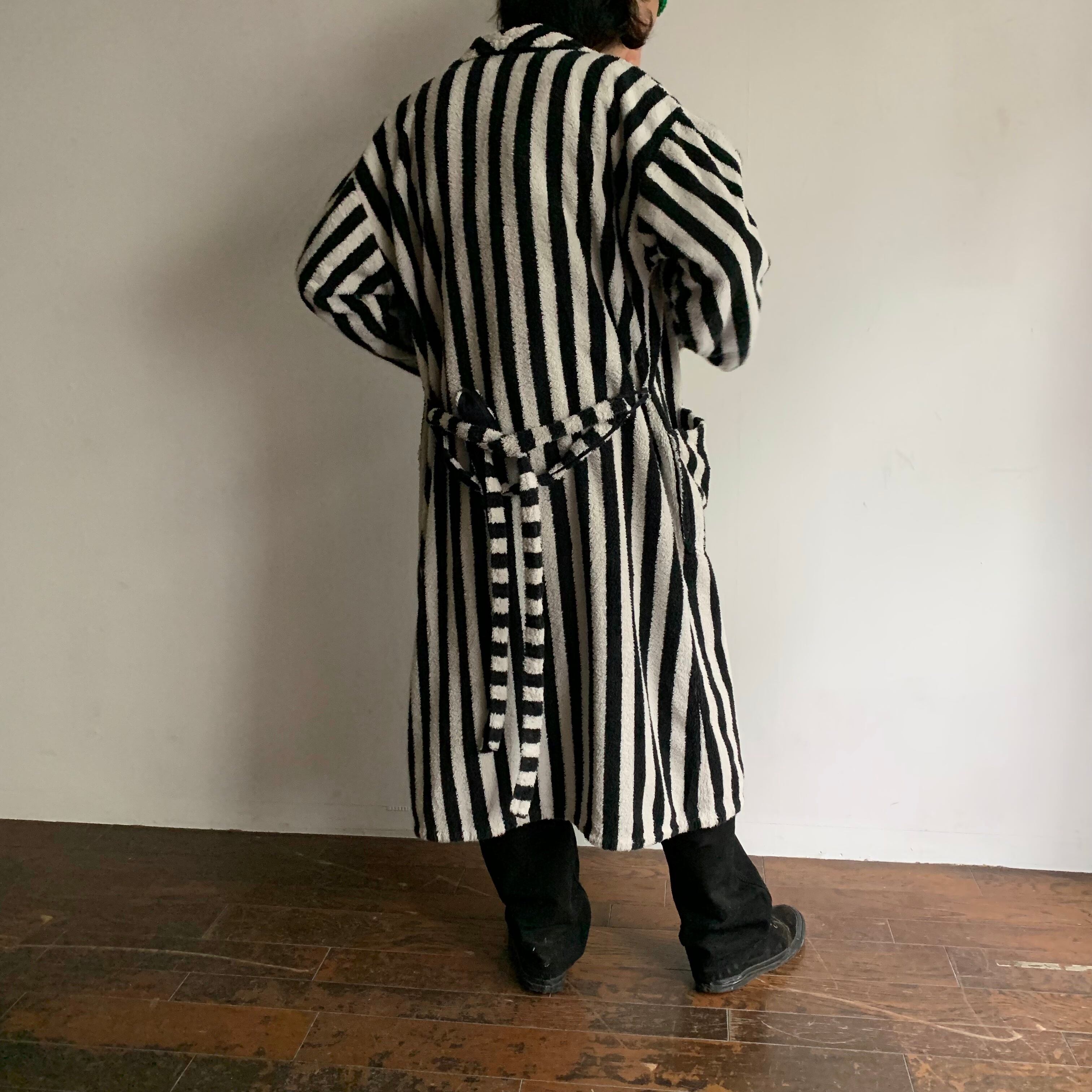0111 / 1990's stripe beach gown ブラック × ホワイト ストライプ パイルガウン ビーチジャケット コート ローブ プリズナー 90s 90年代 euro vintage ユーロ古着