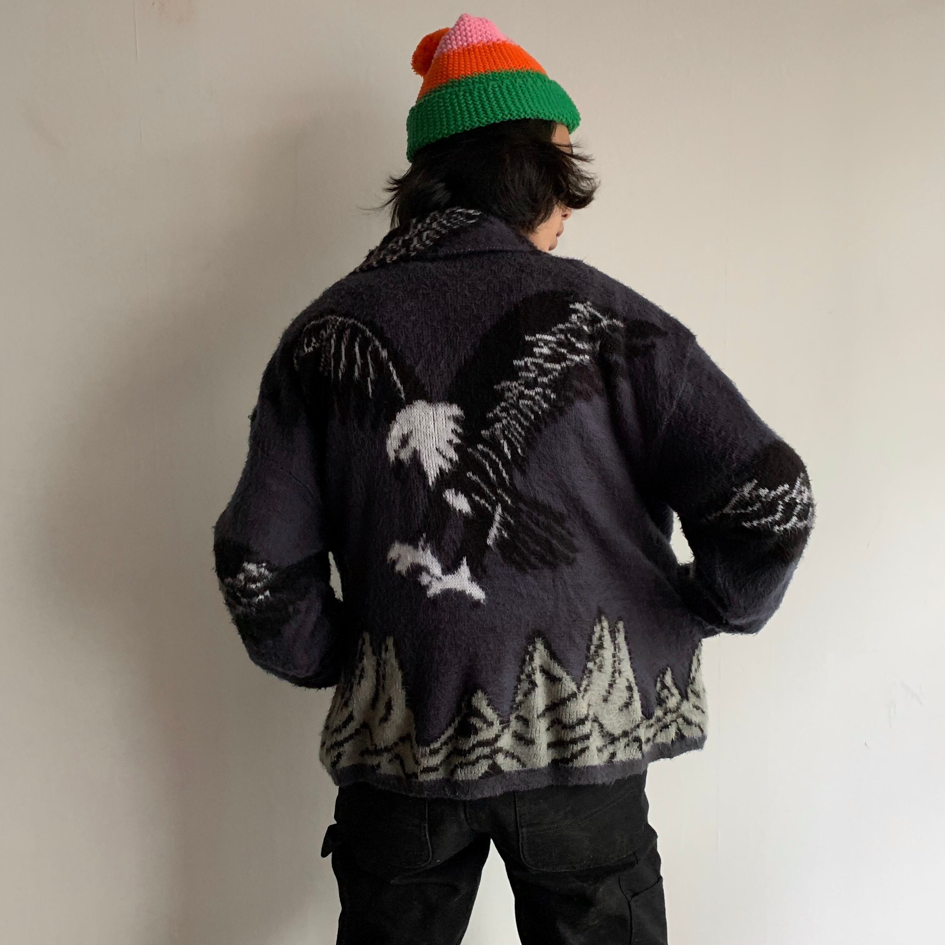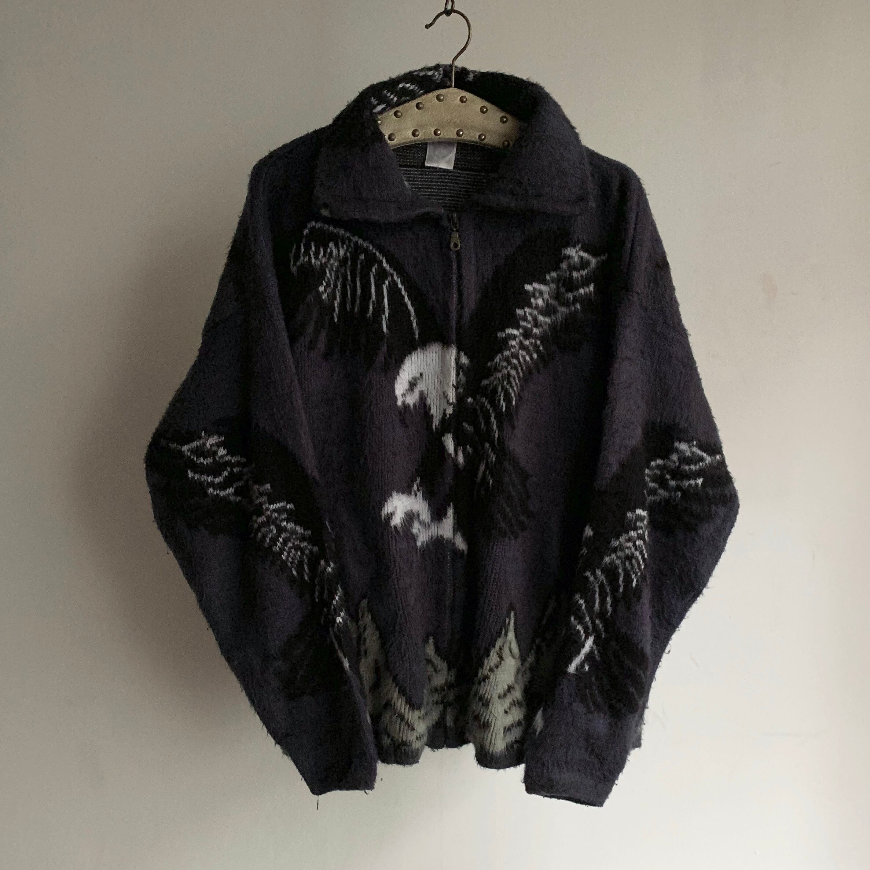 0113 / 1990's Ecuador knit jacket ”eagle” チャコールグレー 鷹 エクアドルニット ジャケット 90s 90年代 vintage 古着