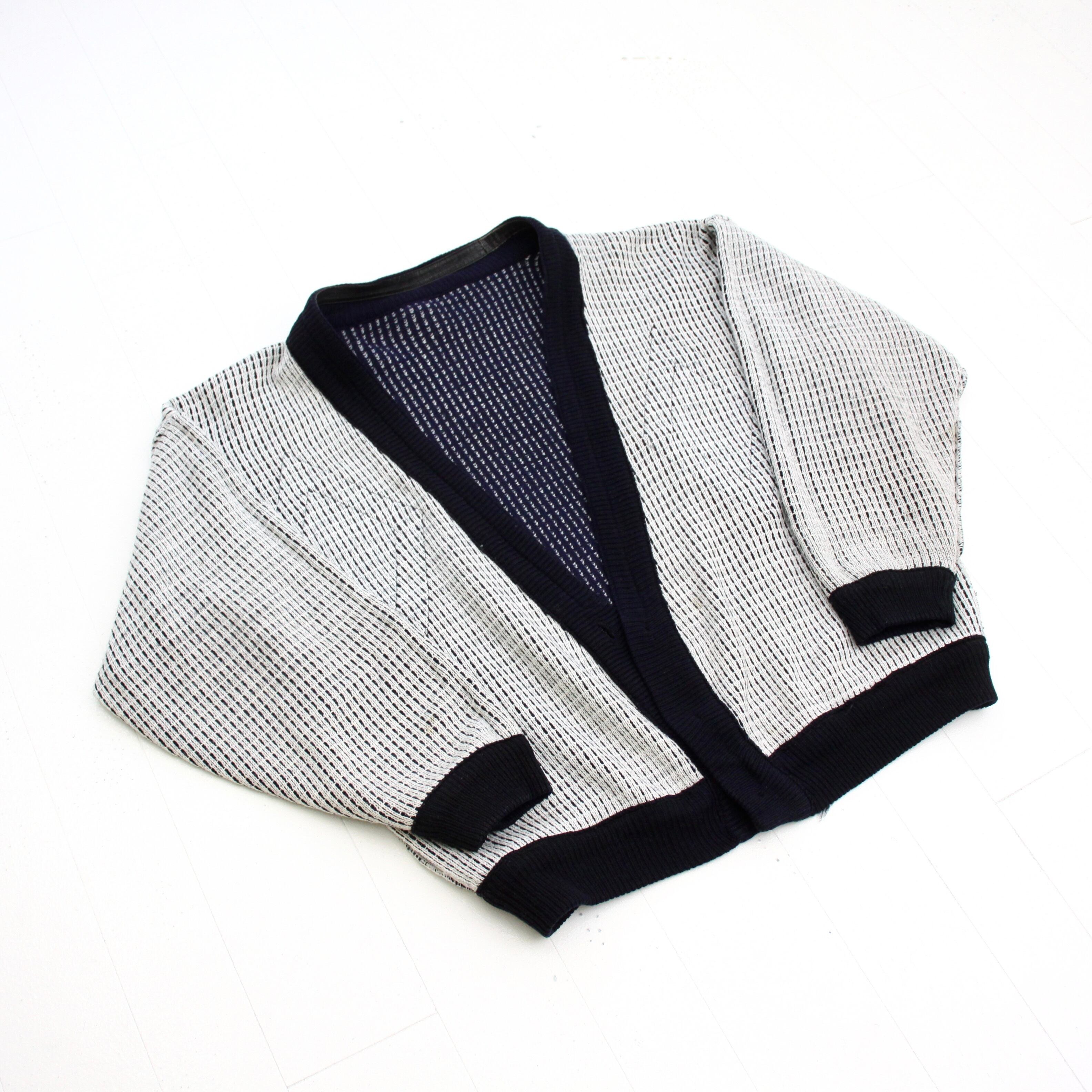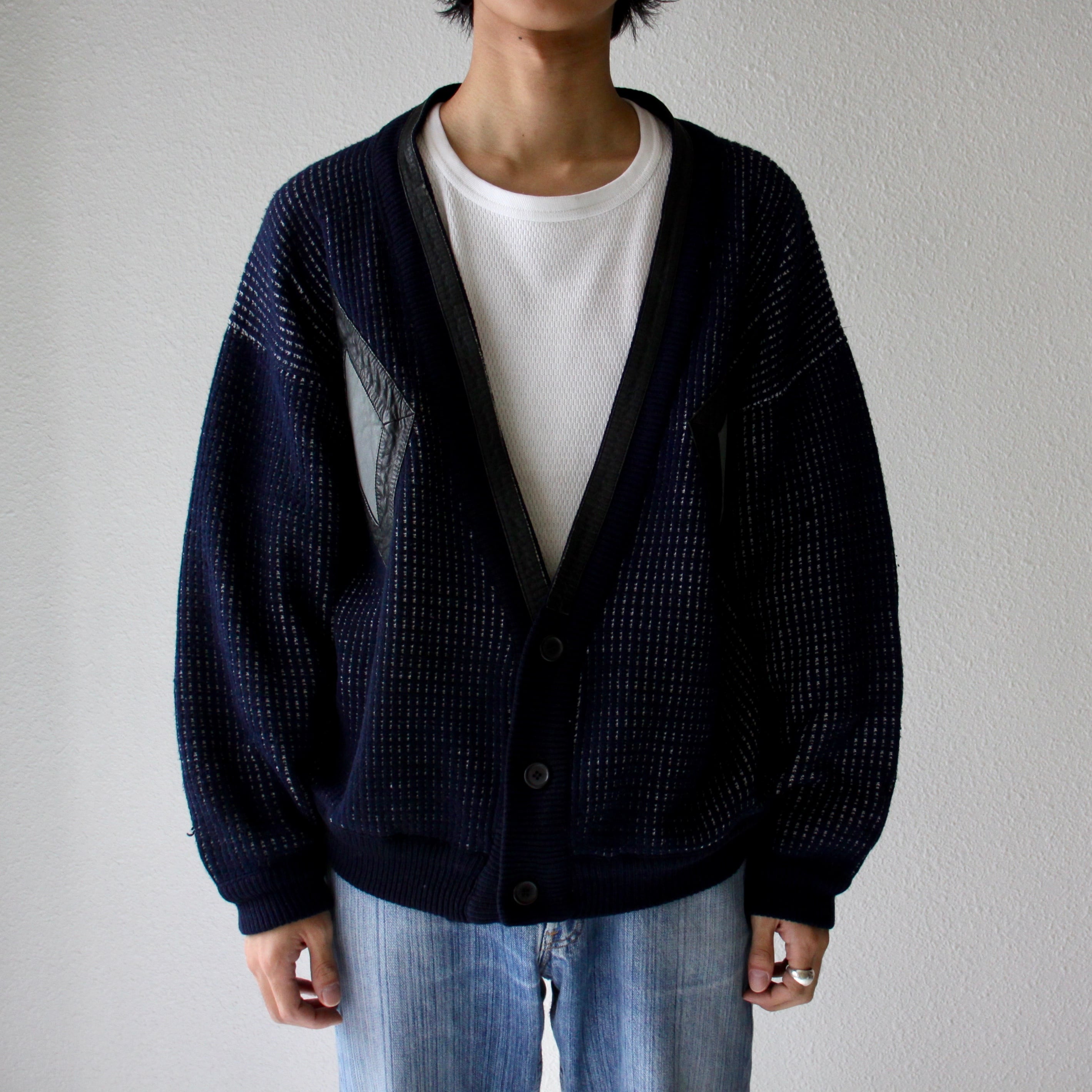 0138 / 1990's leather patch knit cardigan アーガイル アクリルカーディガン 90s 90年代 古着 vintage