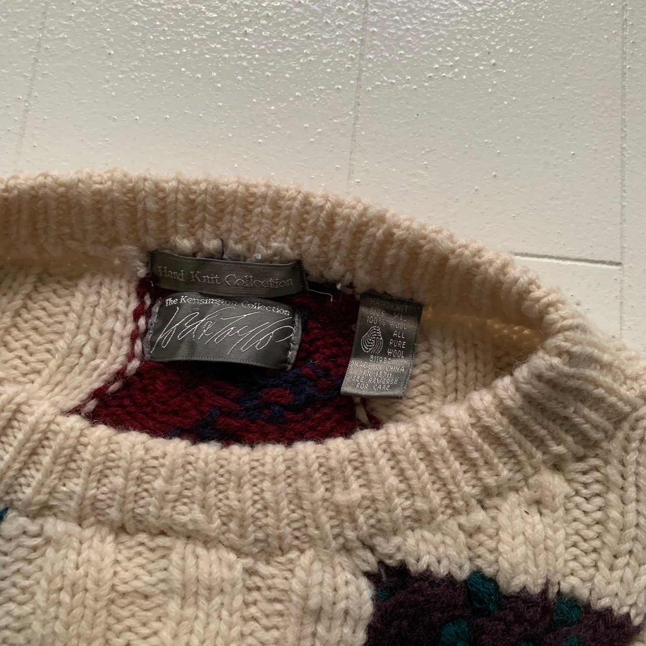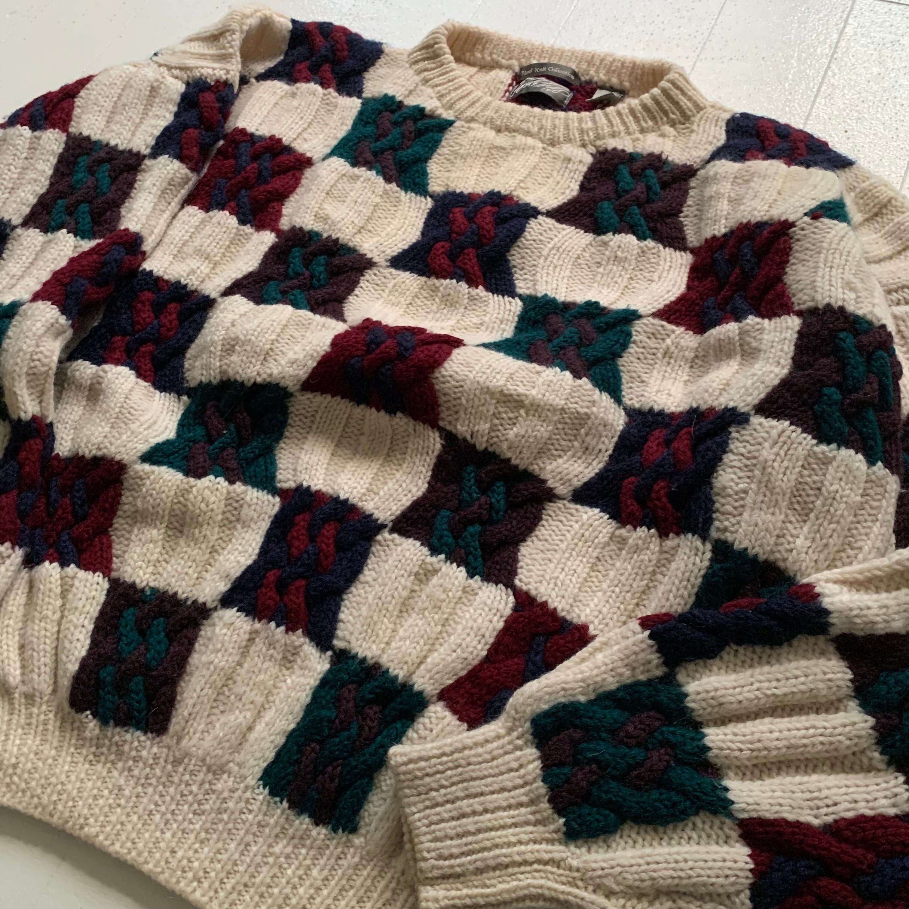0146 / 1990's patchwork hand knit sweater クリーム パッチワーク ハンドニット チェック 90s 90年代 古着 vintage