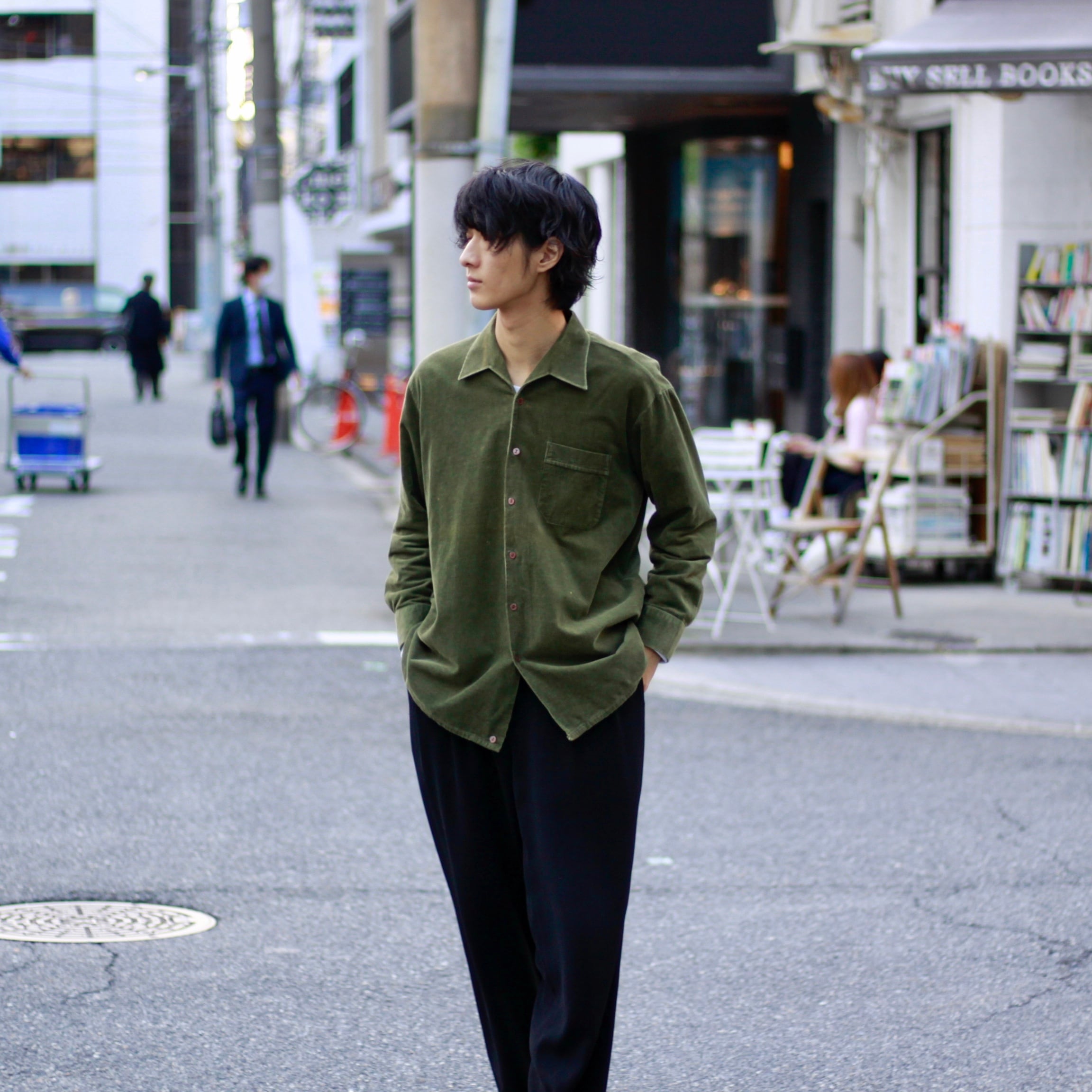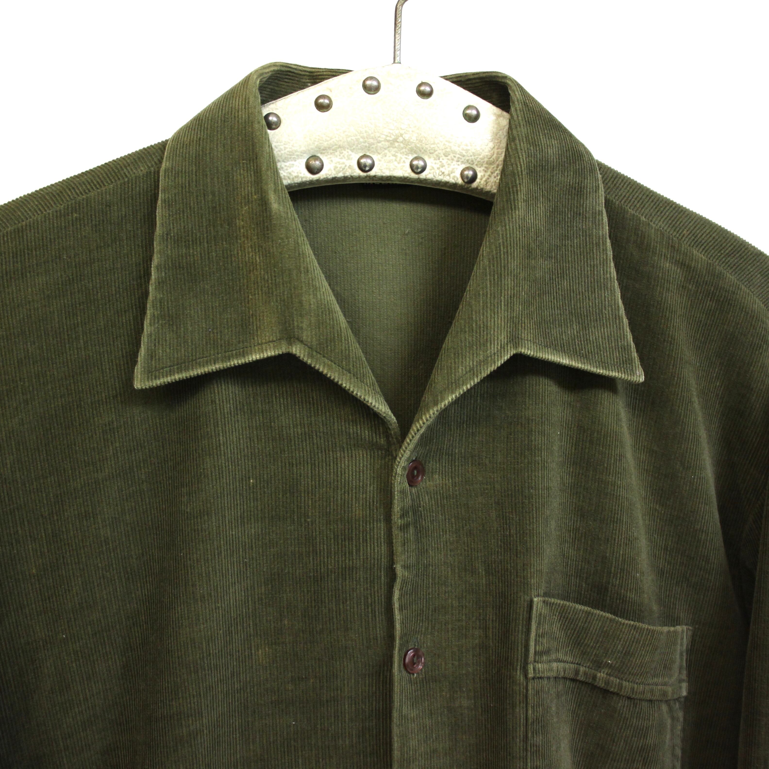 0159 / ~1980's walbusch olive cords shark collar オリーブグリーン シャークカラー コーデュロイ 長袖シャツ ボックス ワルブッチ 80s 80年代 euro vintage ユーロ古着