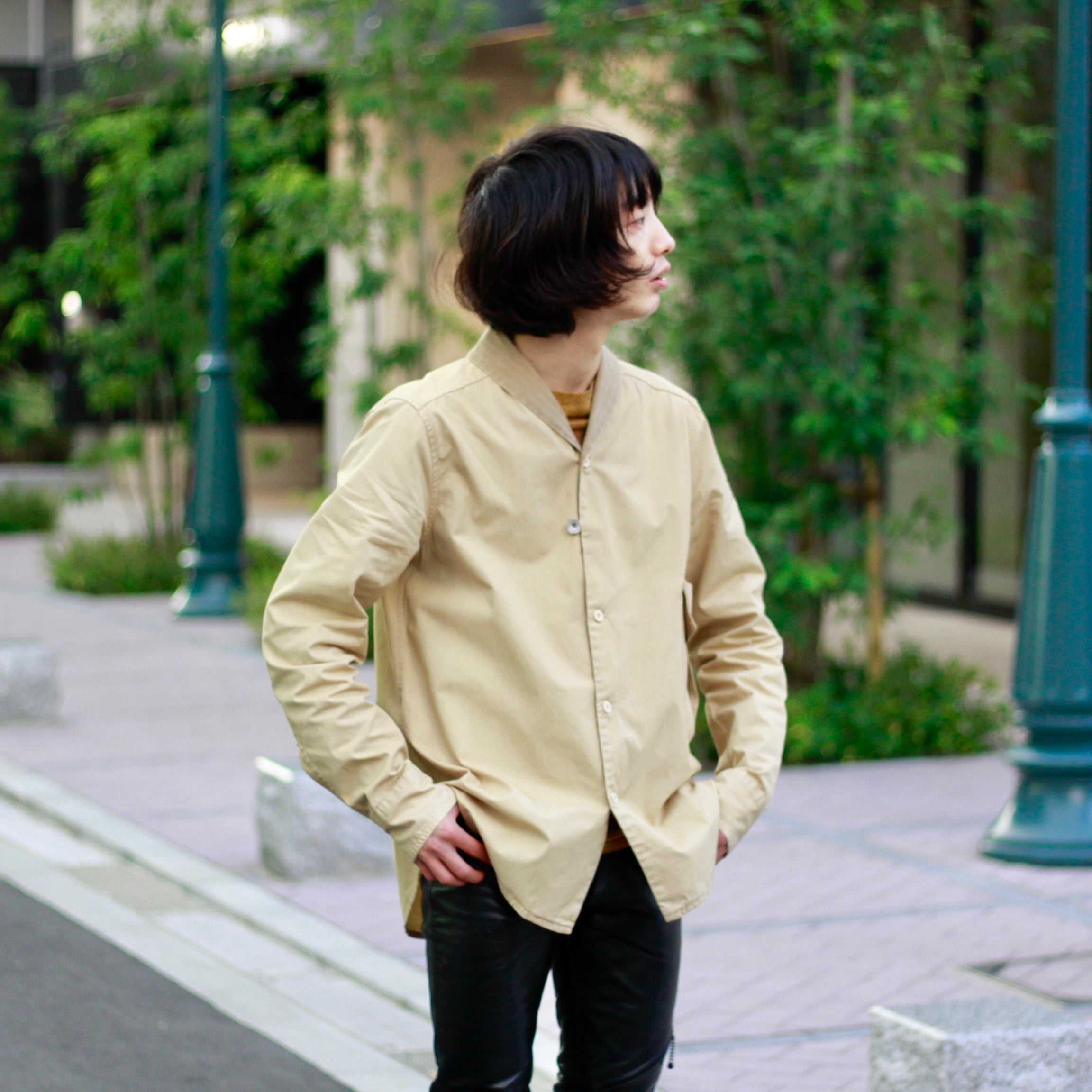 0160 / 2000's~ dondup cotton shirt jacket ベージュ 長袖シャツ ジャケット ショールカラー 変形 ITALY製 ドンダップ 00s 00年代 euro ユーロ古着