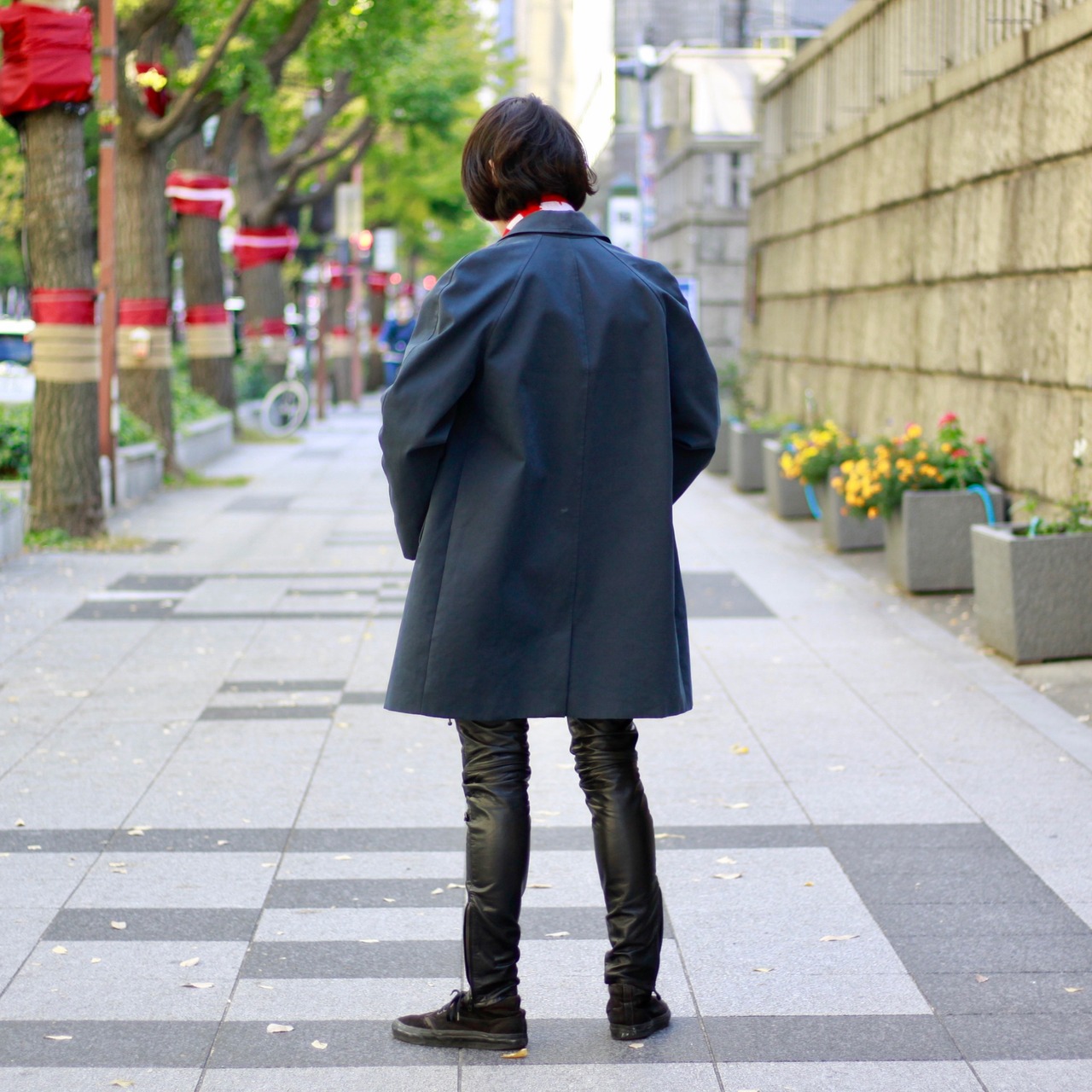 0161 / HARMONY PARIS balmacaan coat ネイビー 高密度コットン バルマカーン ロングコート ステンカラーコート ハーモニー David Obadia デビッド・オバディア euro ユーロ古着