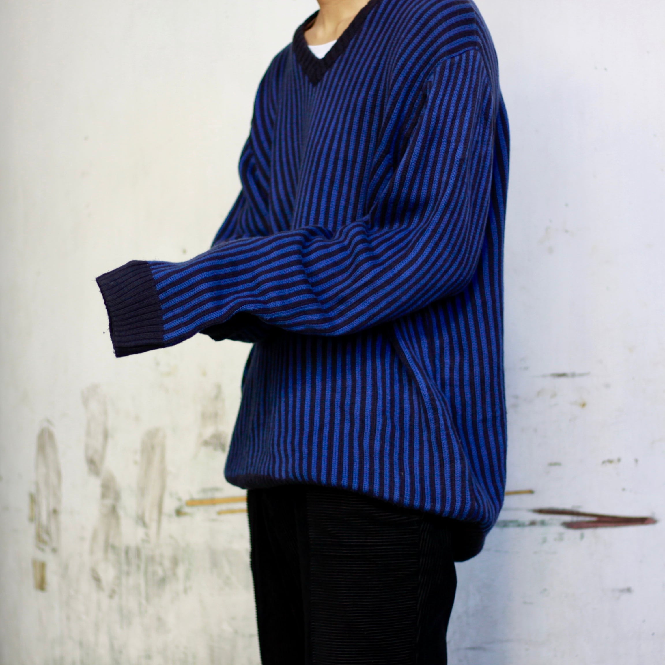 0172 / JOOP! jacquard stripe knit ストライプ ジャカード 織り柄 Vネック ニット セーター ヨープ ジョープ euro ユーロ古着