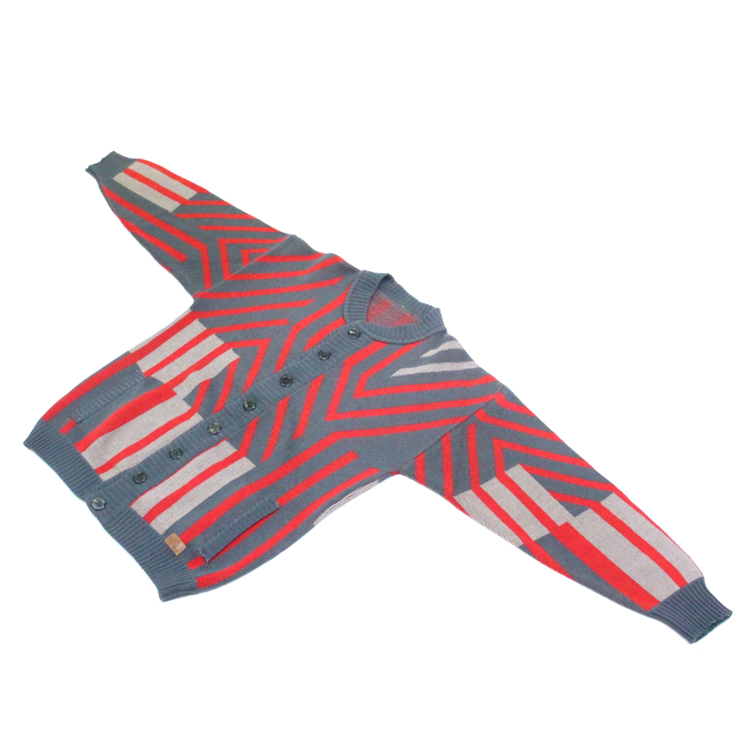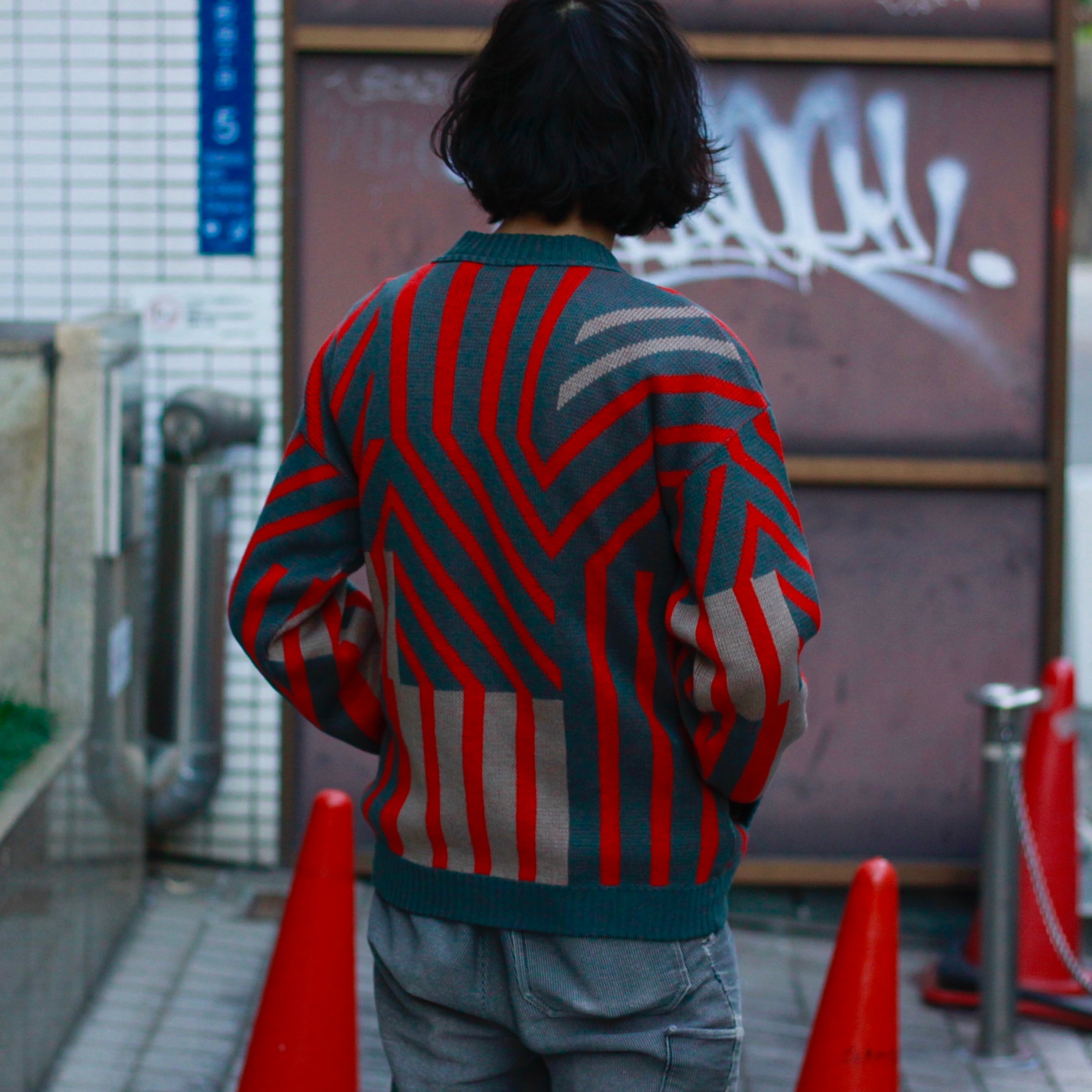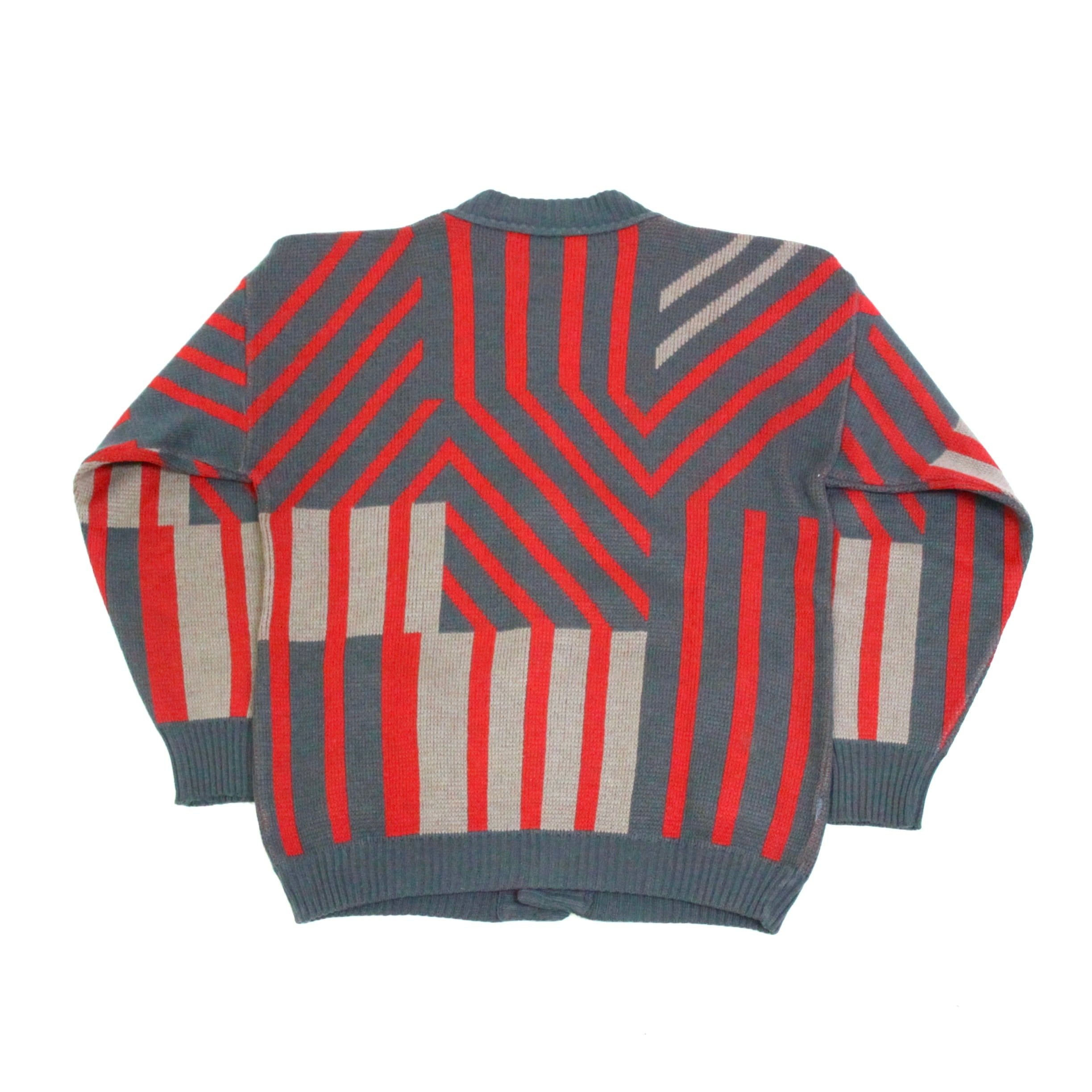 0181 / 1990's geometric jacquard knit jacket 幾何学 総柄 ジオメトリック 織り柄 ジャカード アクリルニット カーディガン セーター 90s 90年代 euro vintage ユーロ古着