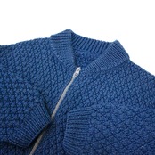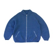 ブルーグレーの小さいダイヤモンド柄で編まれたブルゾンタイプ。