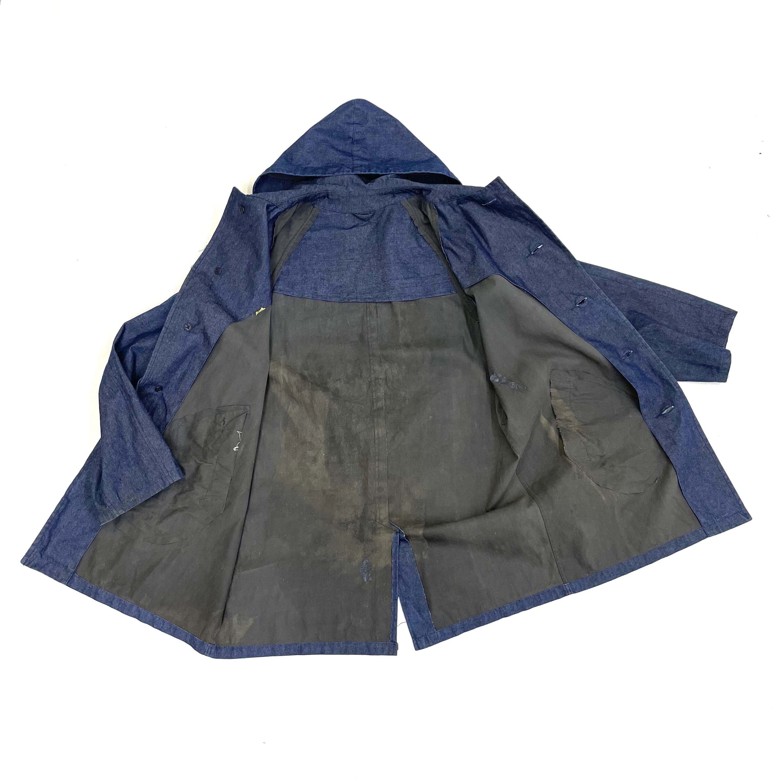 0210 / rubberized denim rain coat デニム インディゴ レインコート ゴム引き デタッチャブル ユーロ古着 古着 vintage