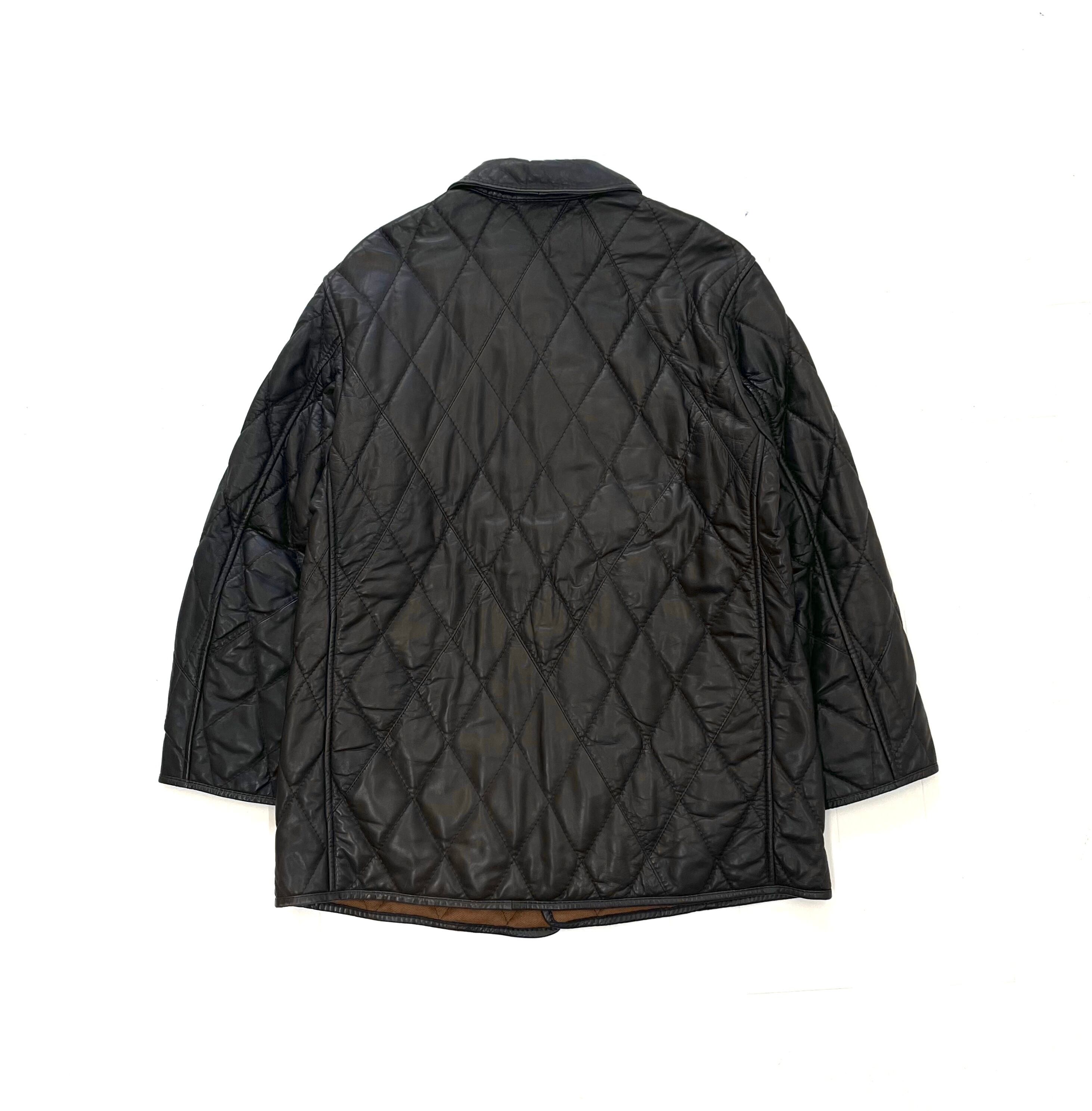 0211 / leather quilting coat ブラウン レザー キルティング チンストラップ 90s 90年代 euro vintage ユーロ古着