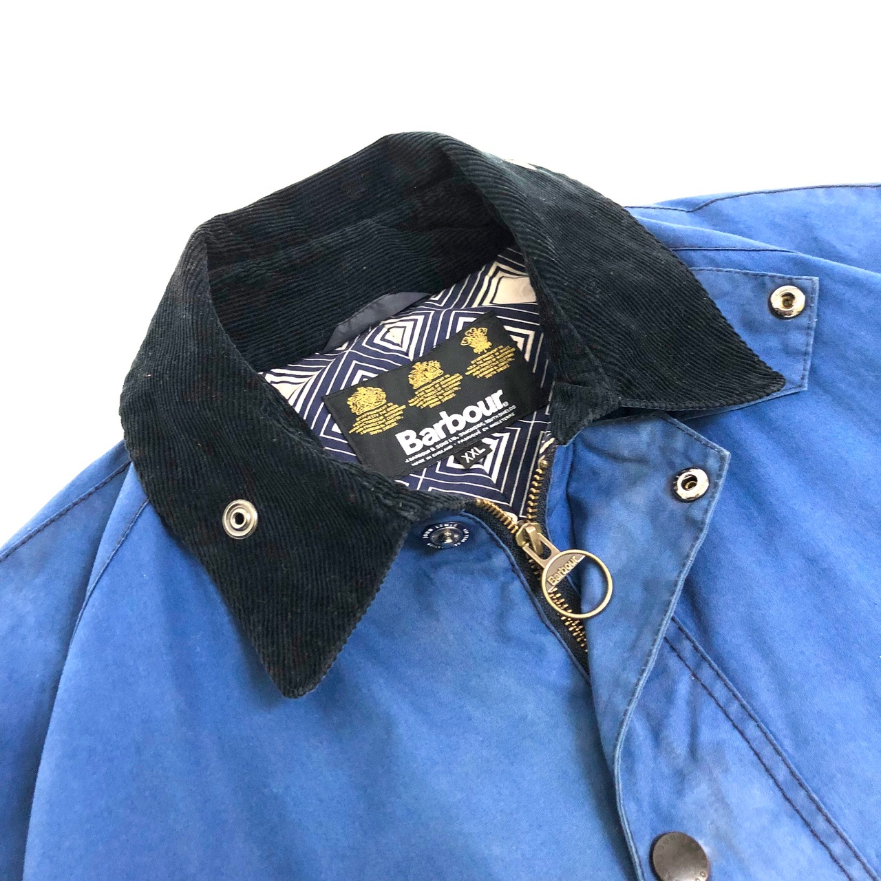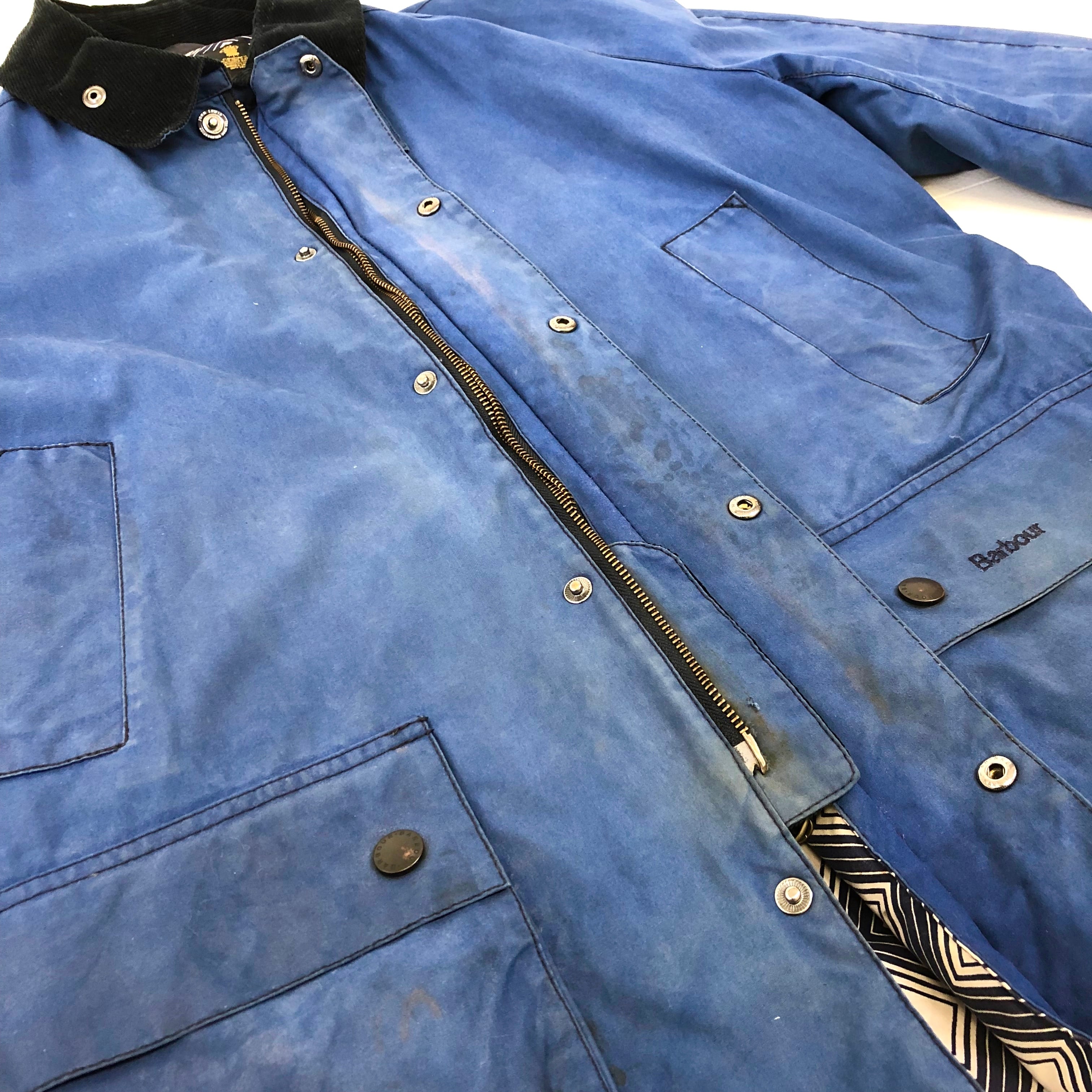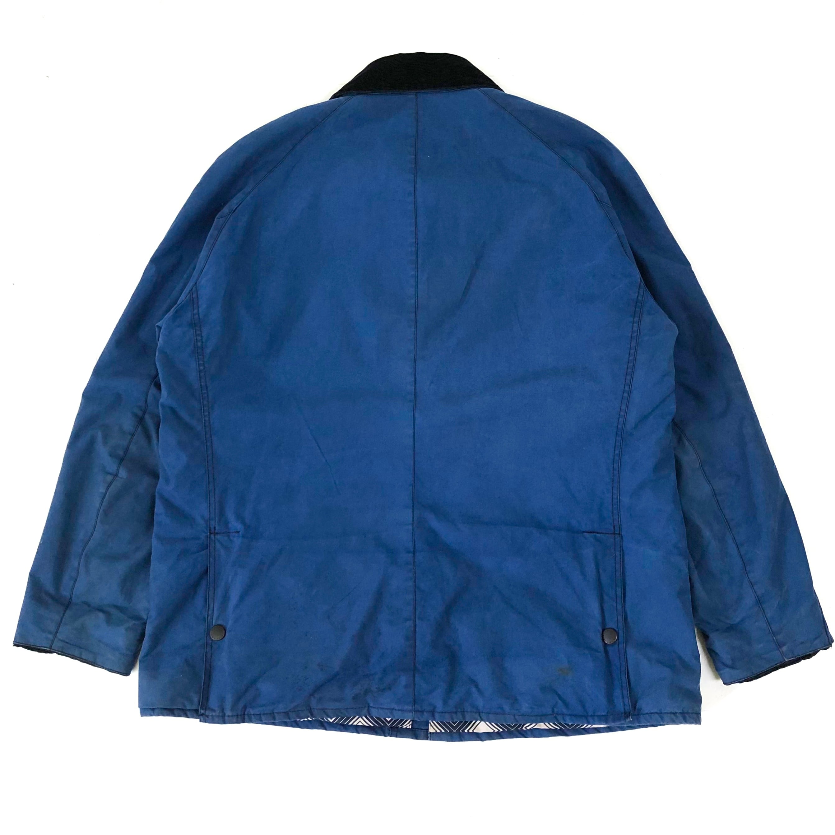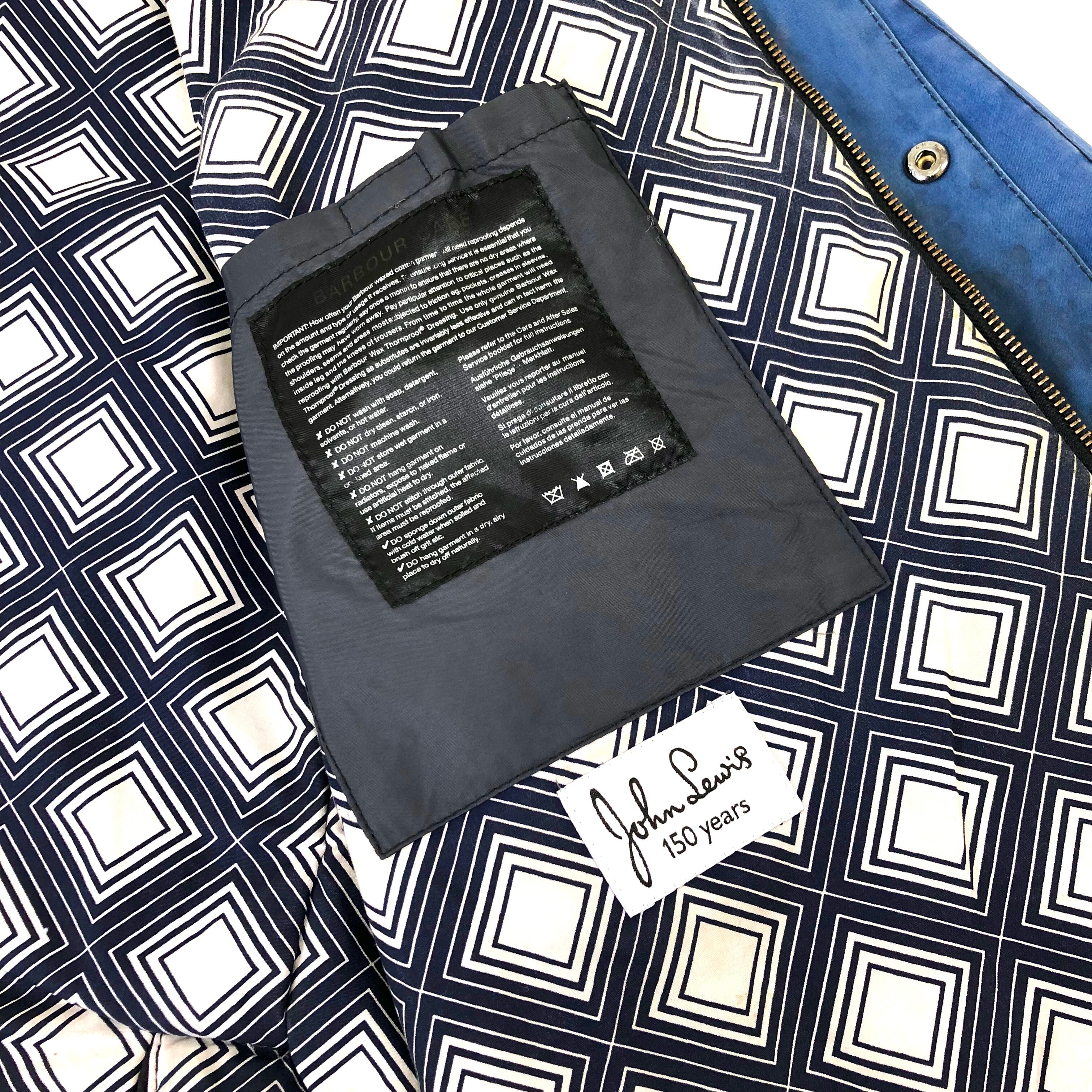 0240 / 2014's Barbour × John Lewis “ASHBYTON” ブルー×総柄 ワックスドコットン コート ジャケット ビデイル 中綿 バブアー 3ワラント イングランド製 古着