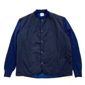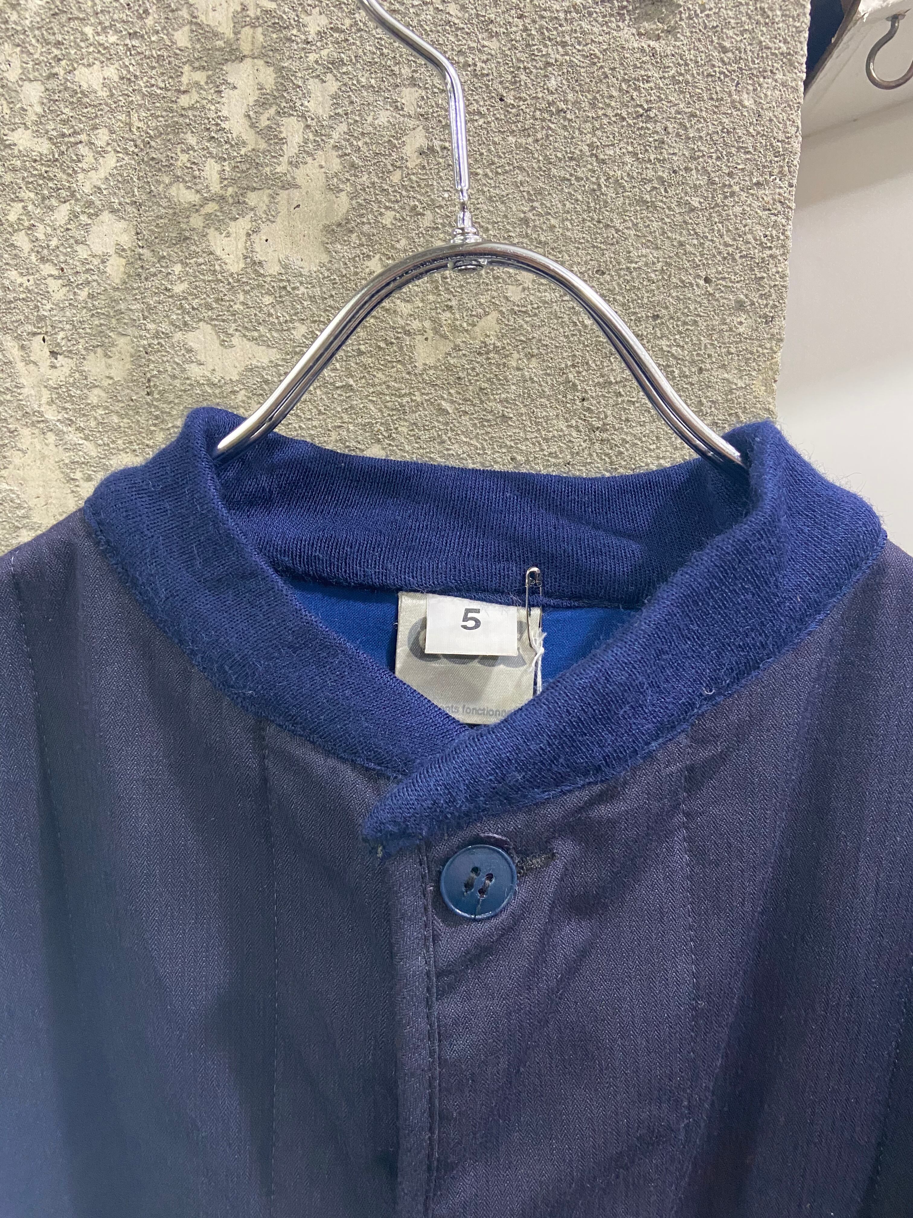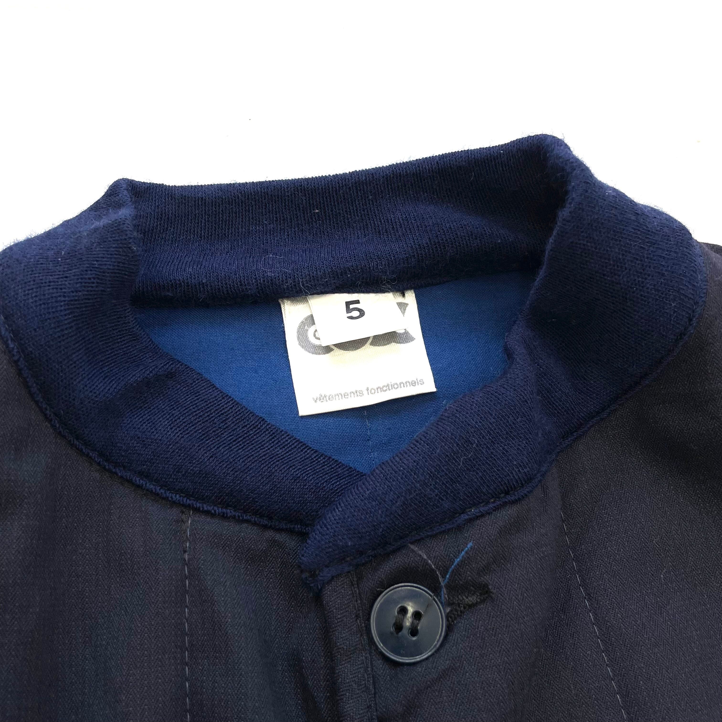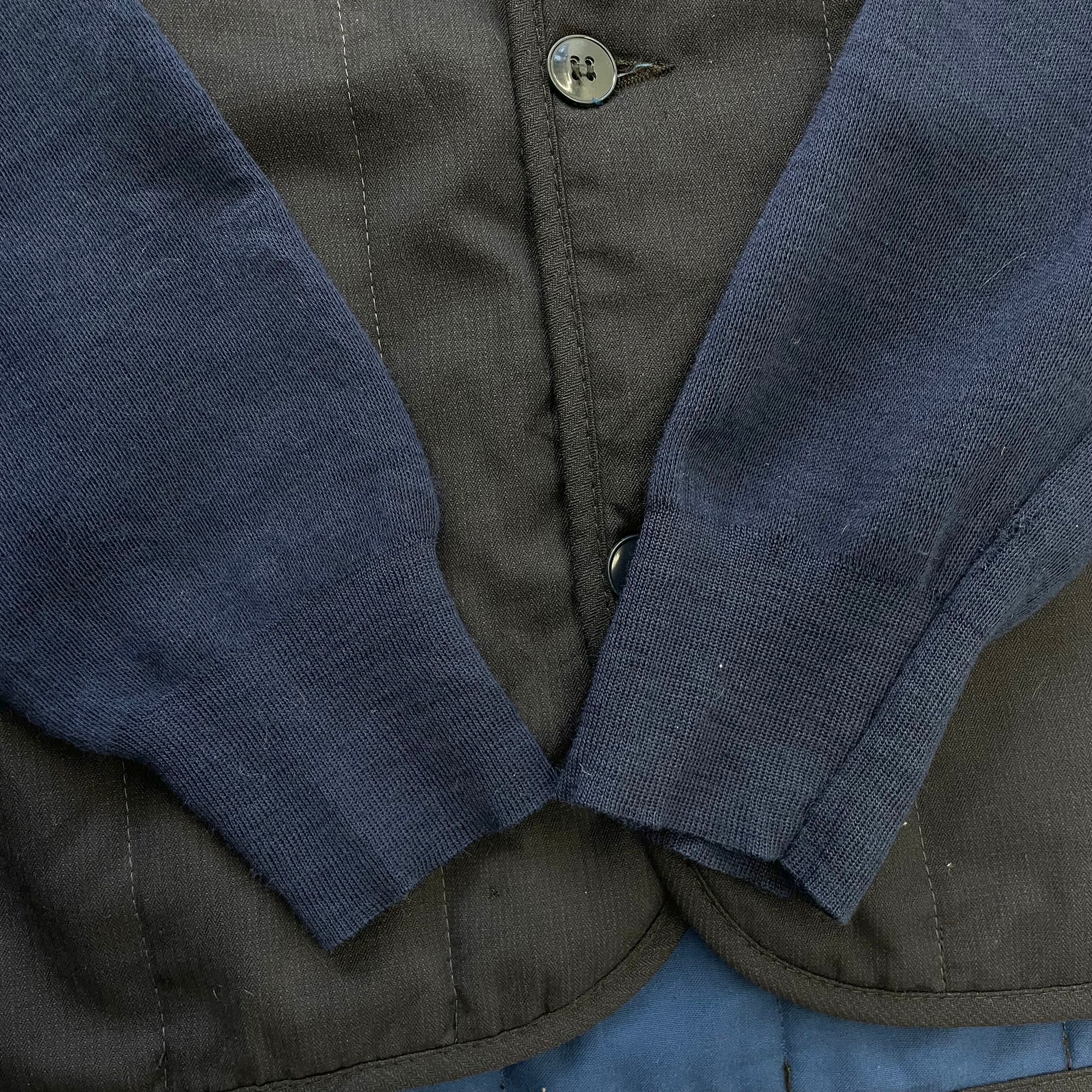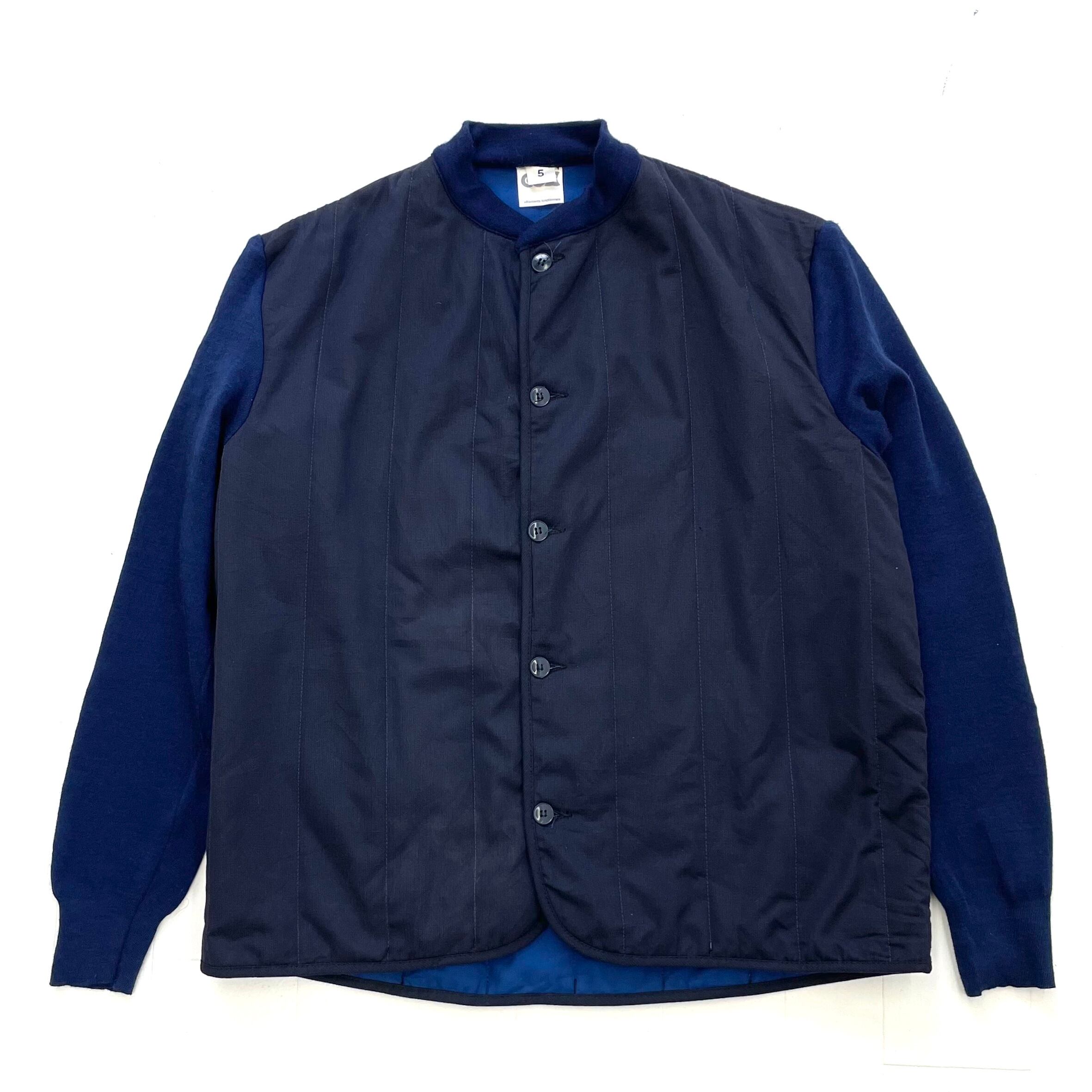 0245 / French work switching cardigan ダークネイビー ニット カーディガン 切替 中綿 ポストマン フレンチワーク ユーロ古着