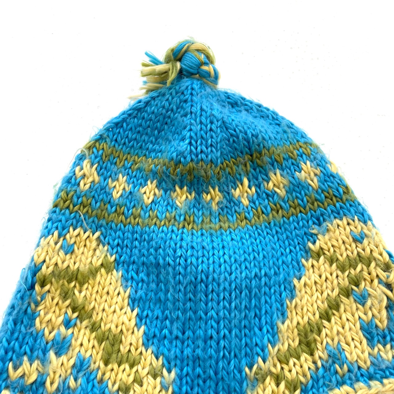 0242 / bonbon Nordic knit cap オレンジ ピンク 水色 耳あて ボンボン ニット帽 ノルディック キャップ 雑貨 古着