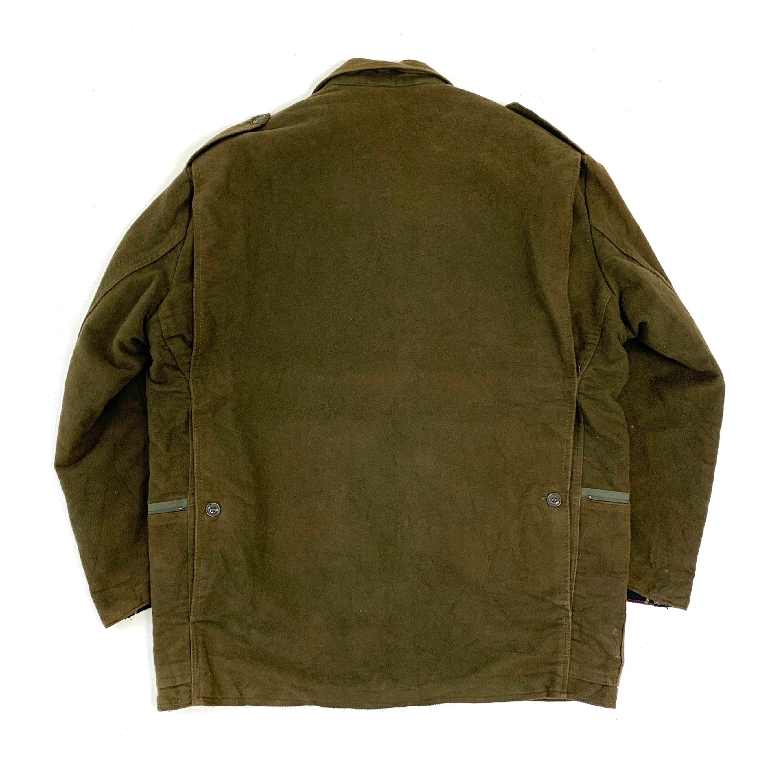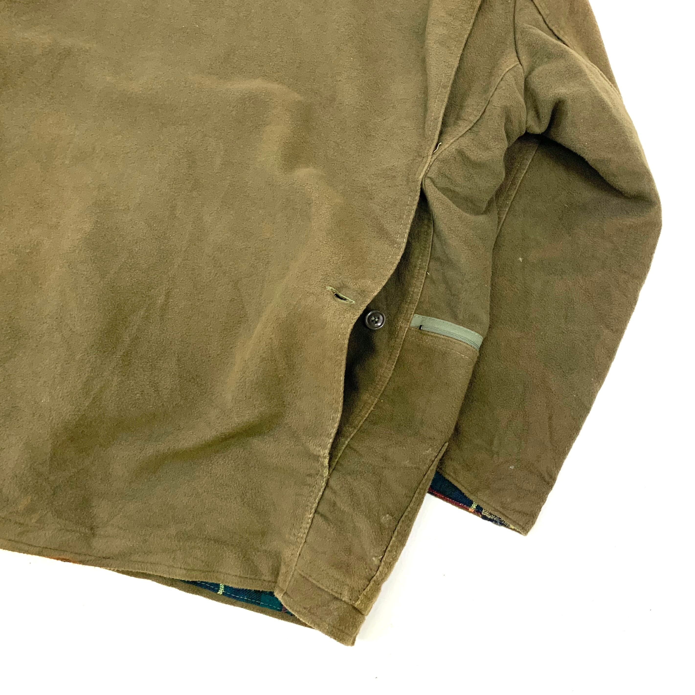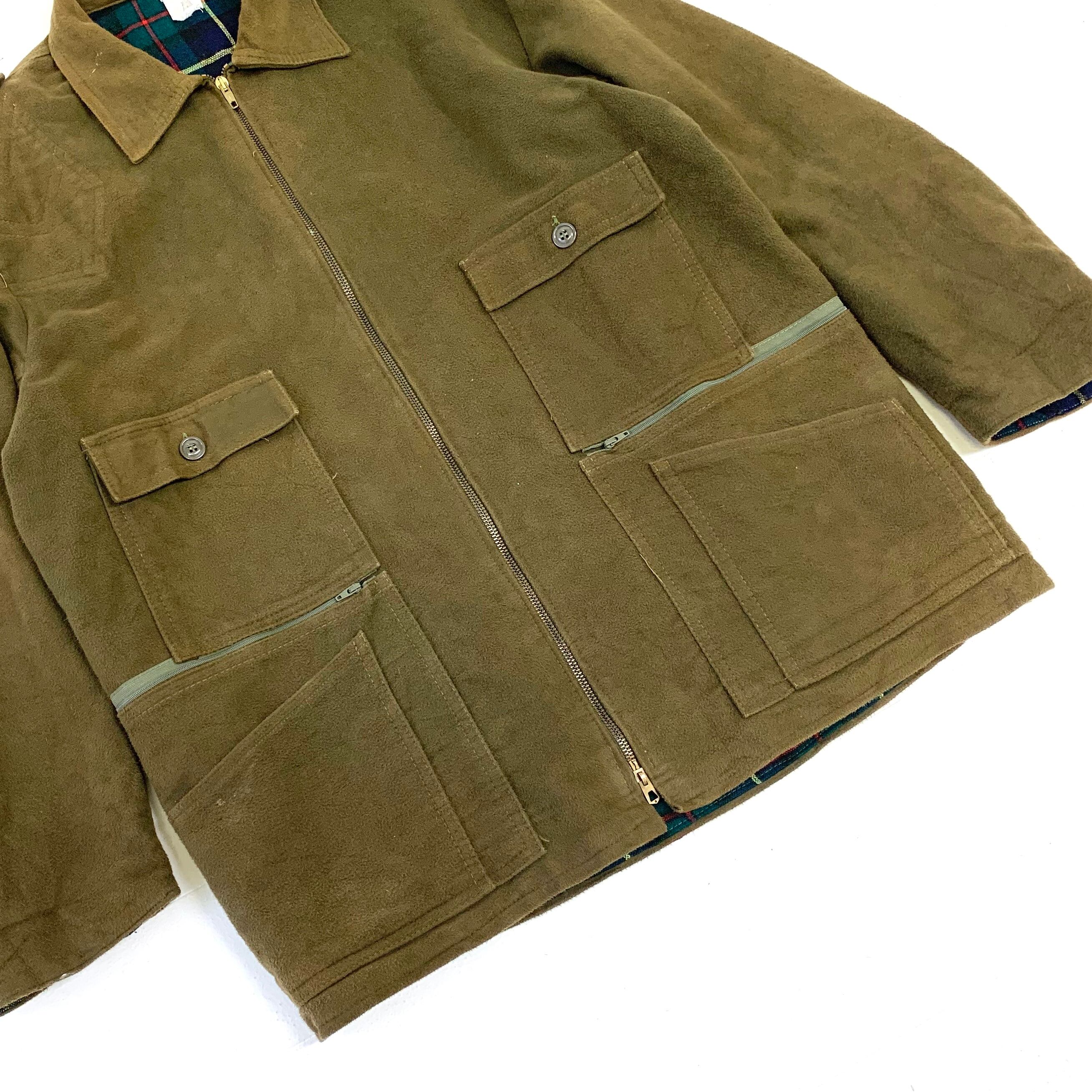 0268 / ~1980's moleskin hunting jacket made in Italy オリーブ × タータンチェック コットンモールスキン フェード ハンティングジャケット ハーフコート ゲームポケット イタリア製 80s 80年代 euro vintage ユーロ古着