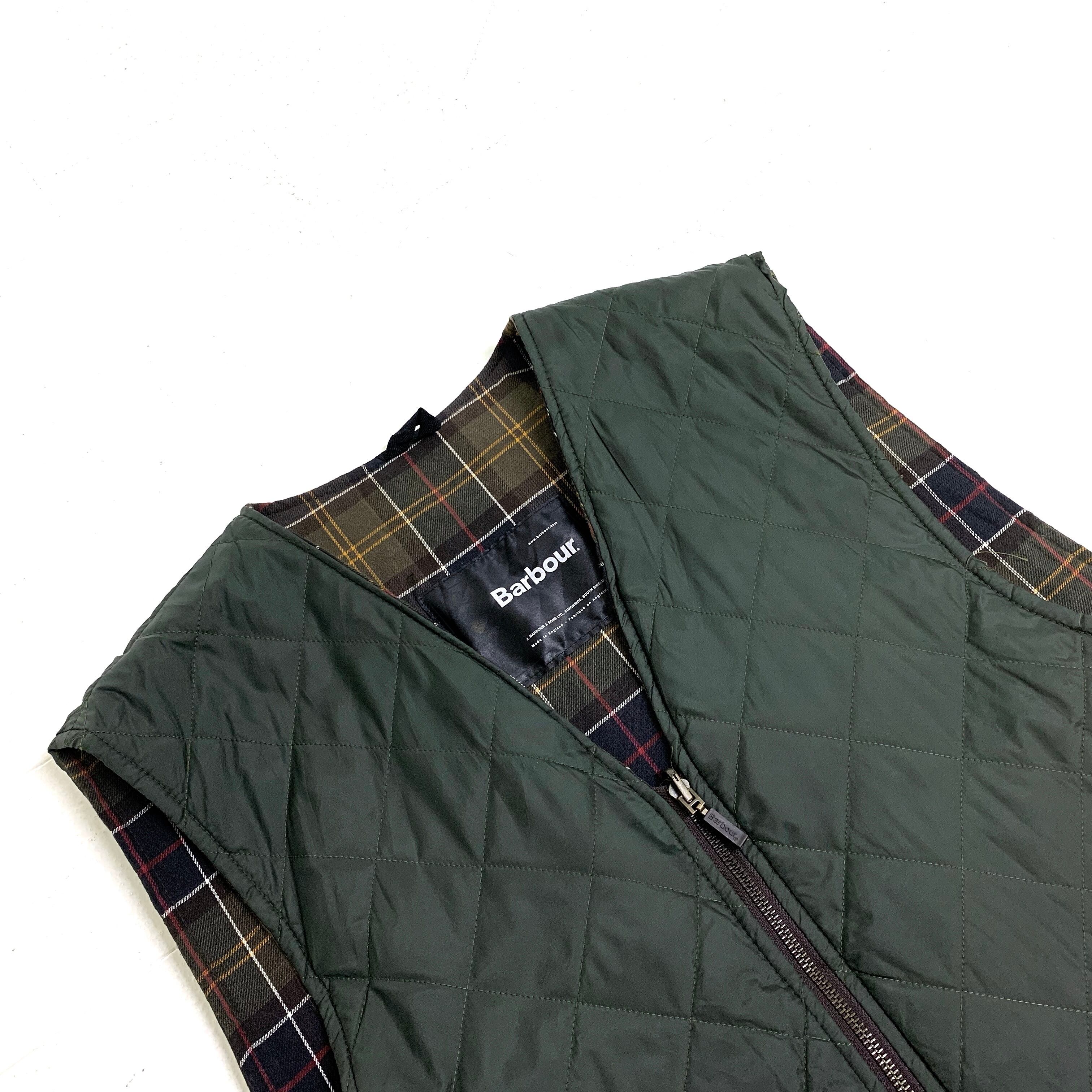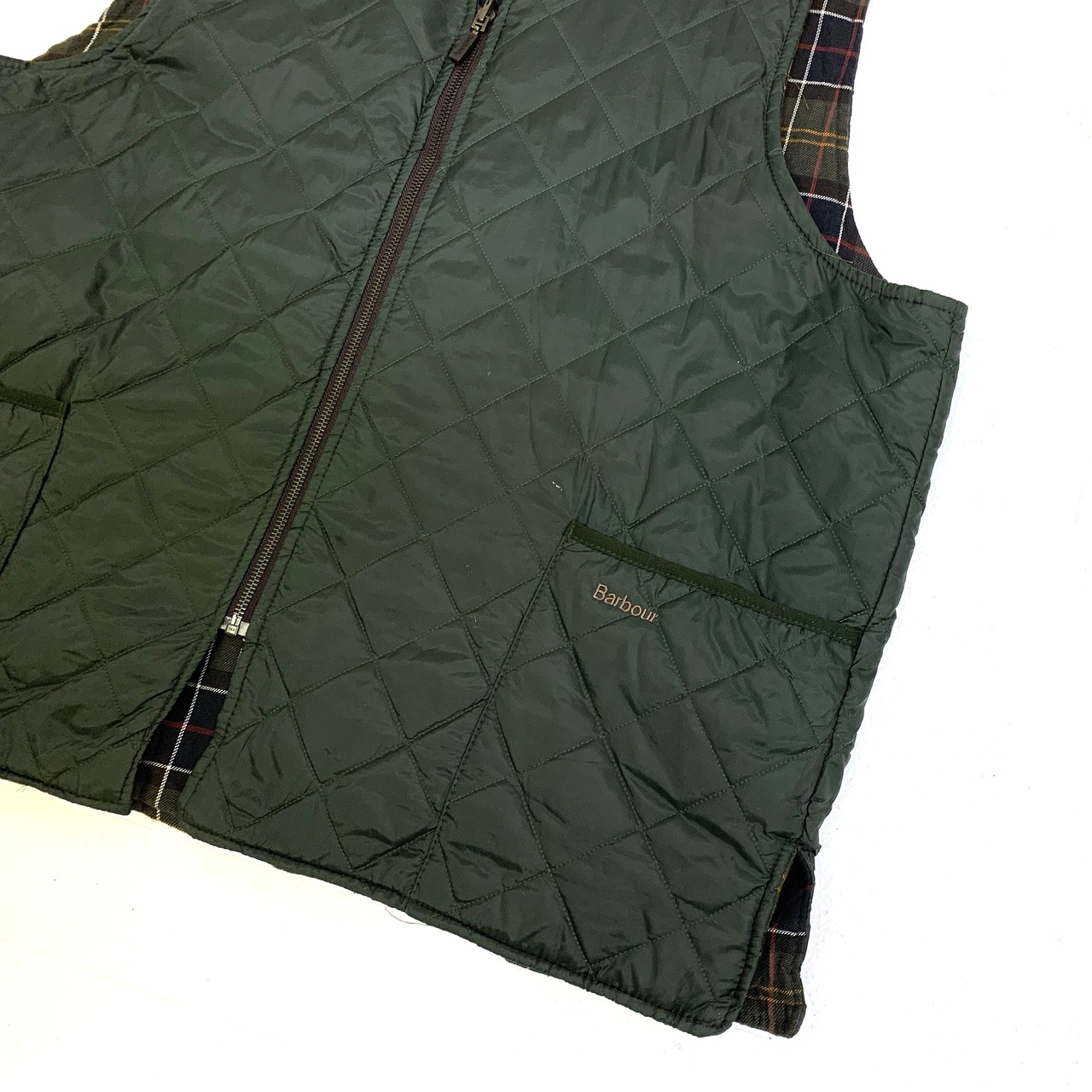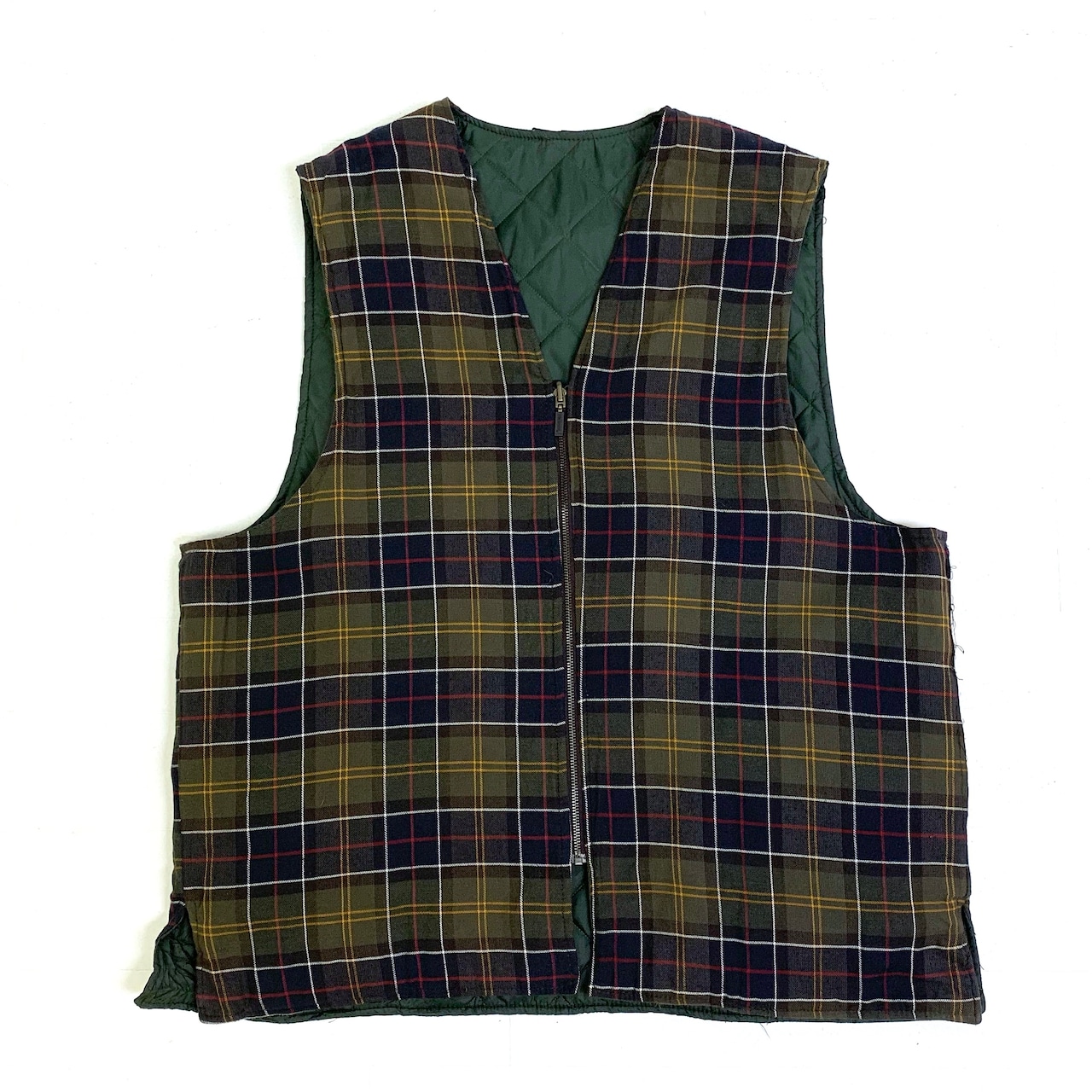 0289 / 2000's Barbour guilted waistcoat made in England モスグリーン×チェック キルティングベスト リバーシブル バブアー イングランド製 00s 00年代 ユーロ古着