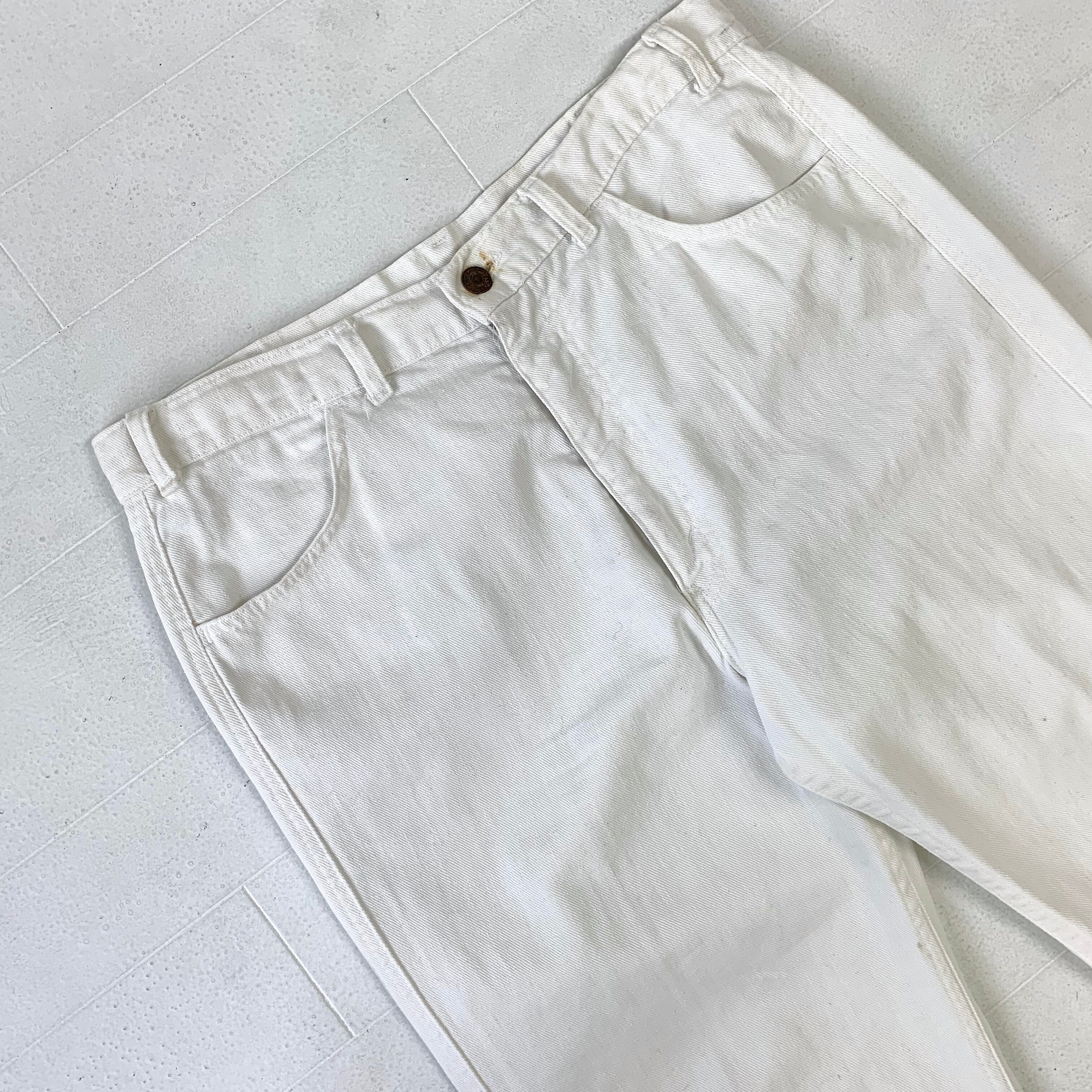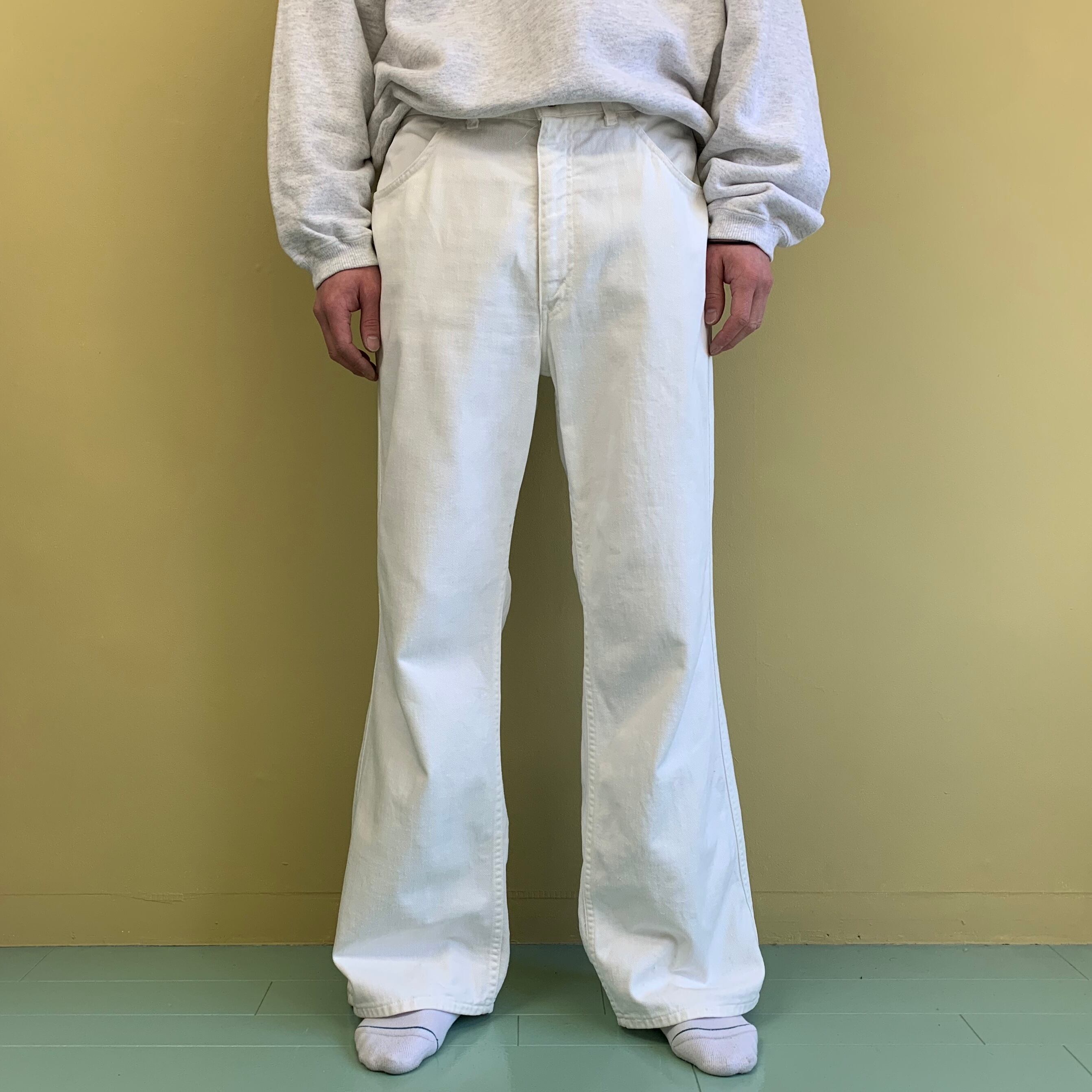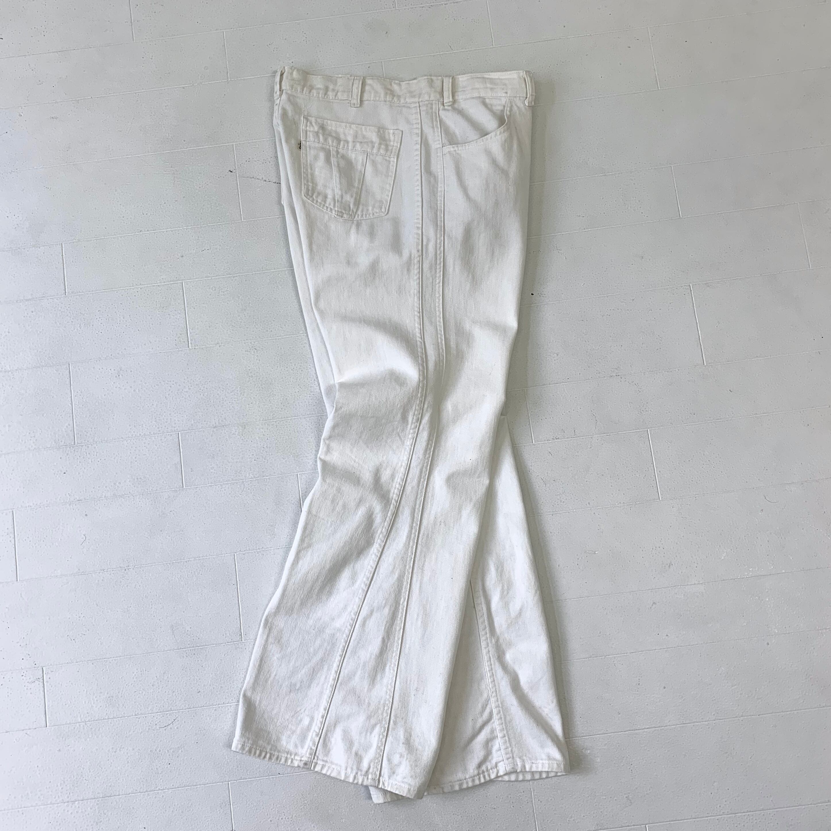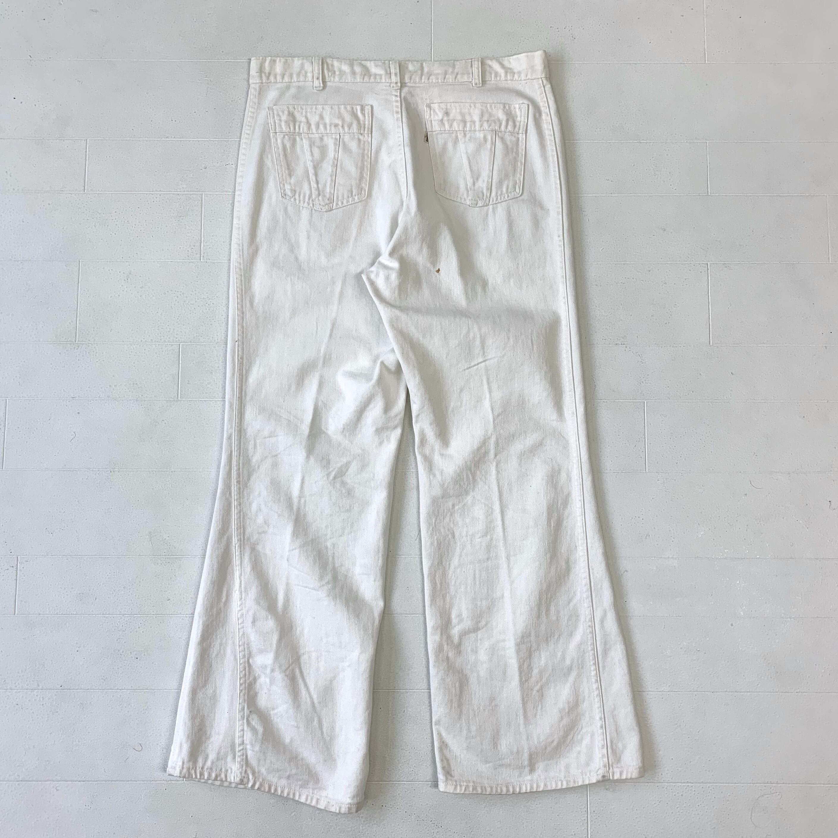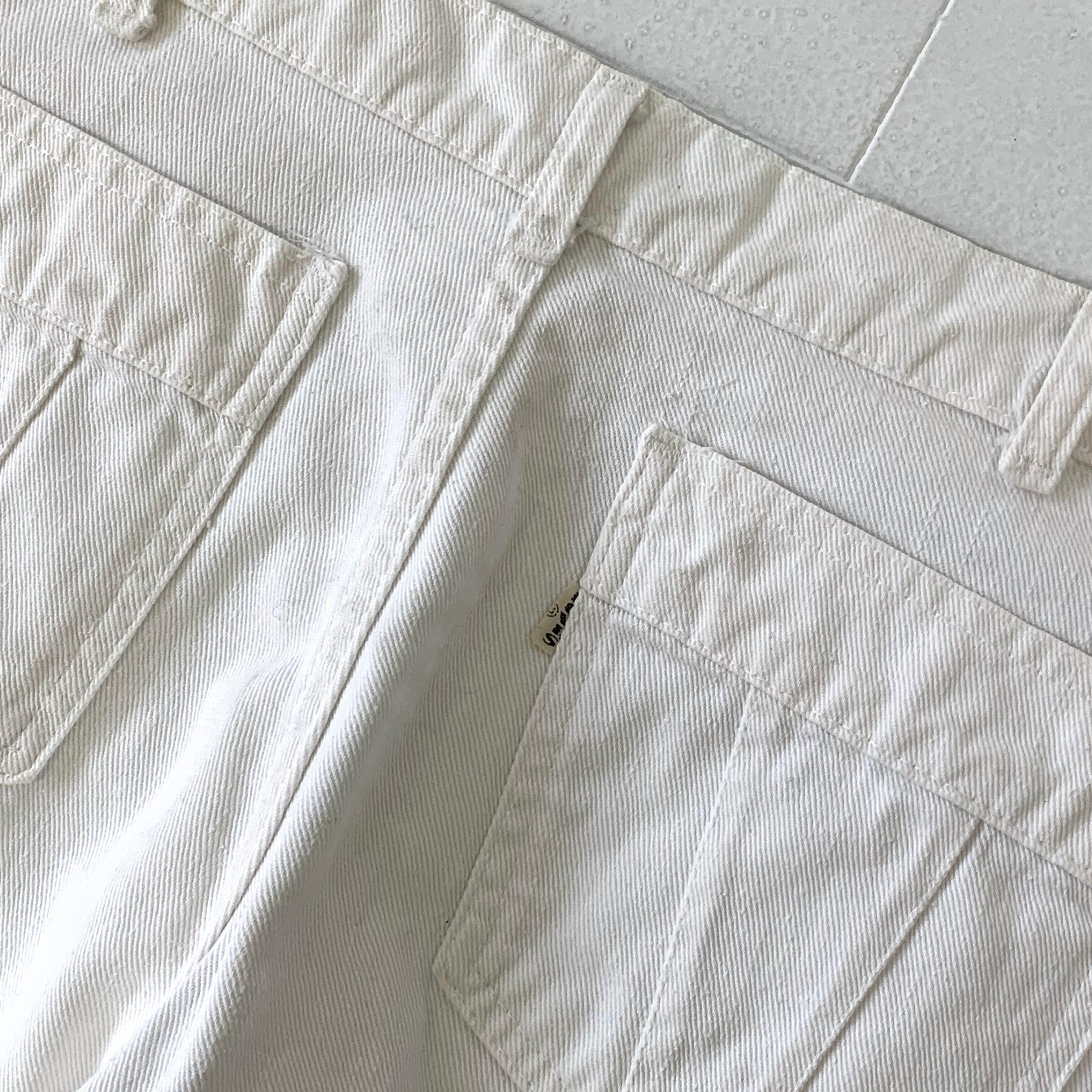 0294 / 1980's levi's cotton drill flare jeans ホワイト フレアパンツ コットンドリル 葛城織り サイドライン 側章 ホワイトタブ ビンテージ リーバイス USA製 80s 80年代 vintage levis 古着
