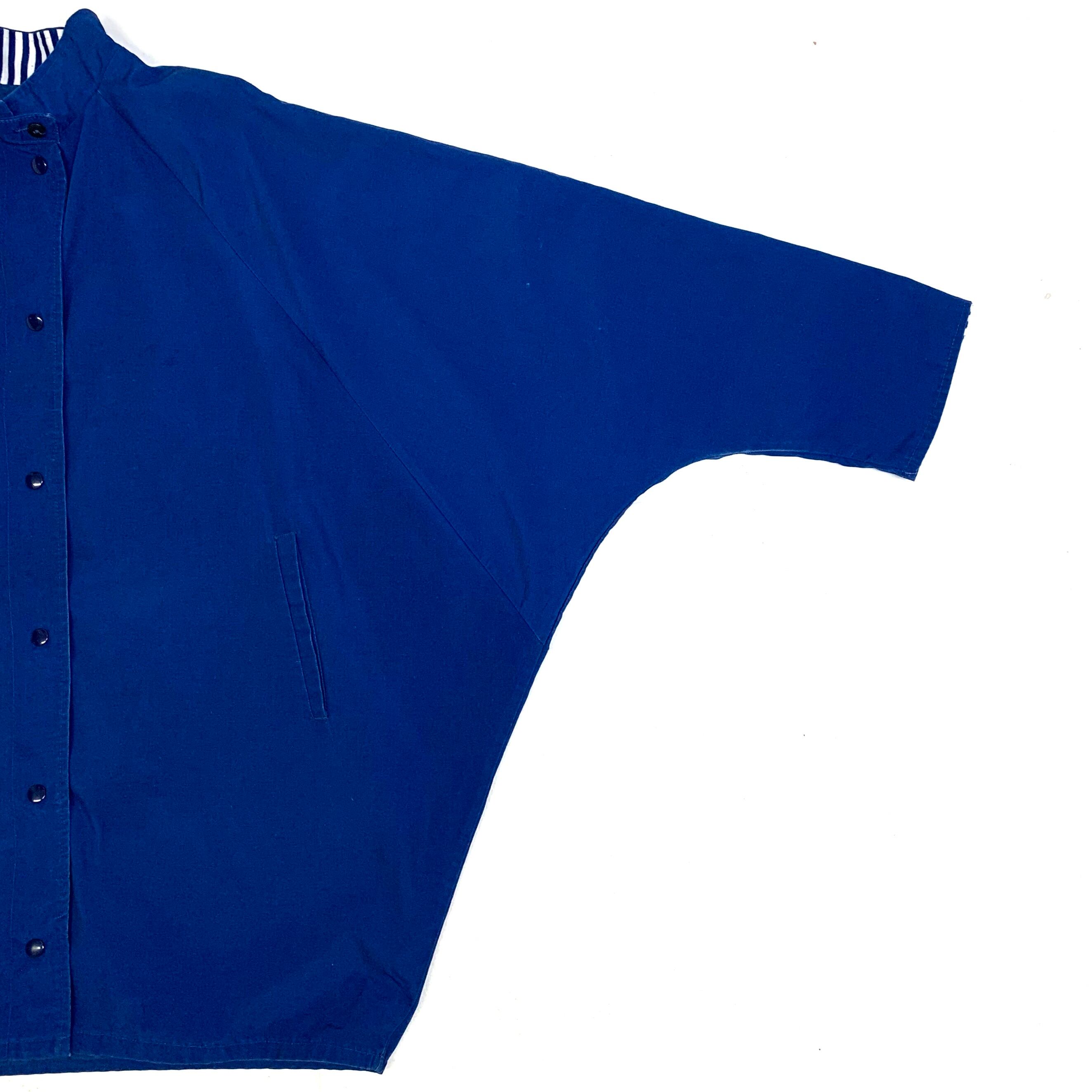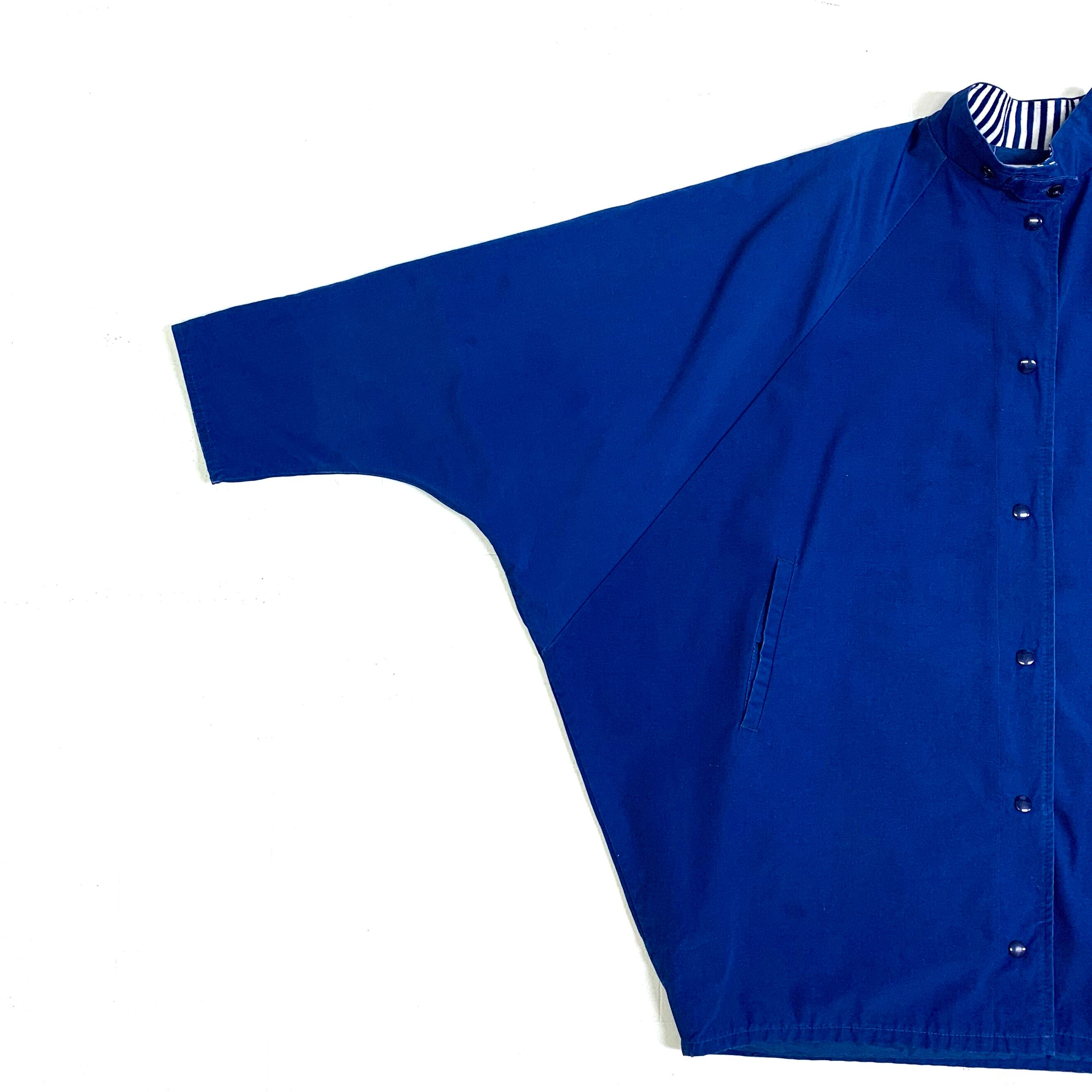 0308 / ~1980's cotton/poly dolman sleeve coat ブルー ドルマンスリーブ デザインコート スナップボタンフロント コーチジャケット 80s 80年代 vintage 古着