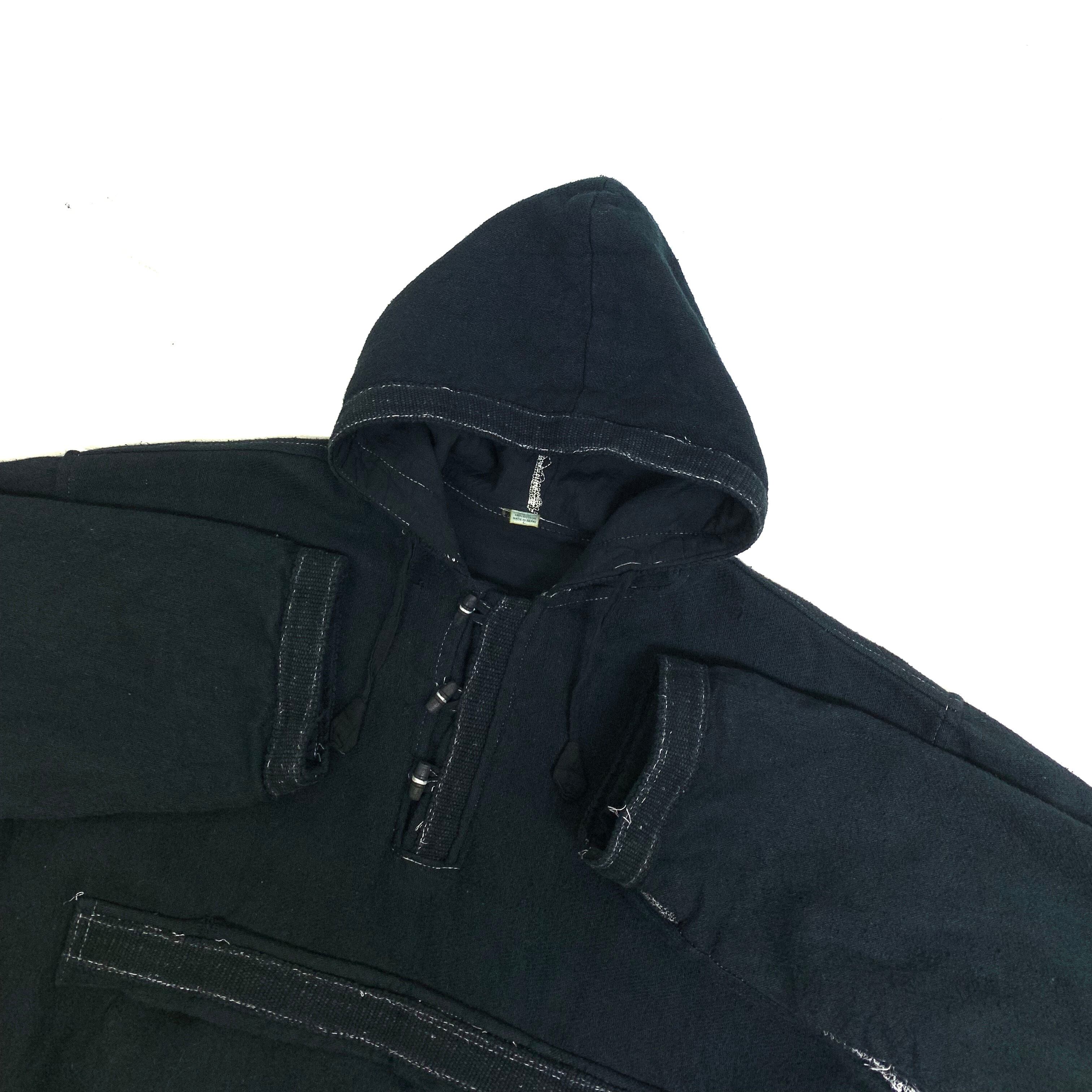 0320 / heavy cotton anorak made in Nepal 後染めブラック ヘビーコットン アノラック プルオーバー パーカー ネパール製 民族 古着