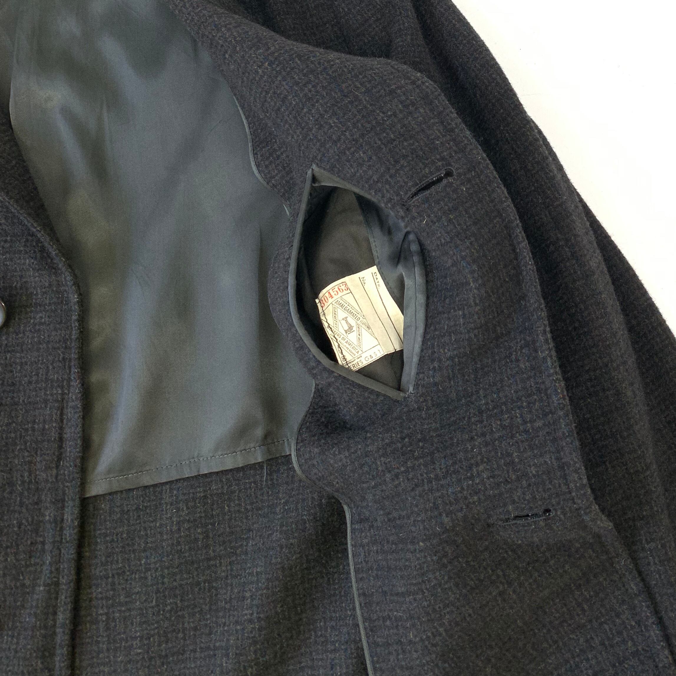 0343 / 1960's dark plaid cashmere mixed? wool coat チャック 暗色 カシミヤ混? ウールコート ステンカラーコート バルマカーンコート USA製 アメリカ製 60s 60年代 vintage 古着