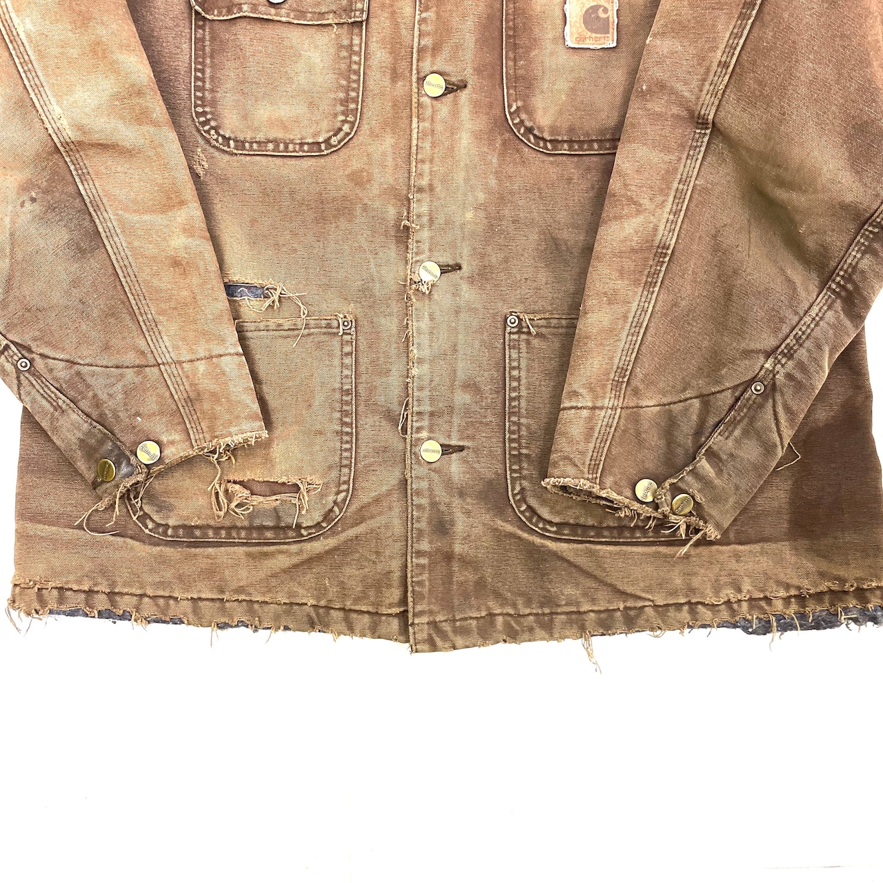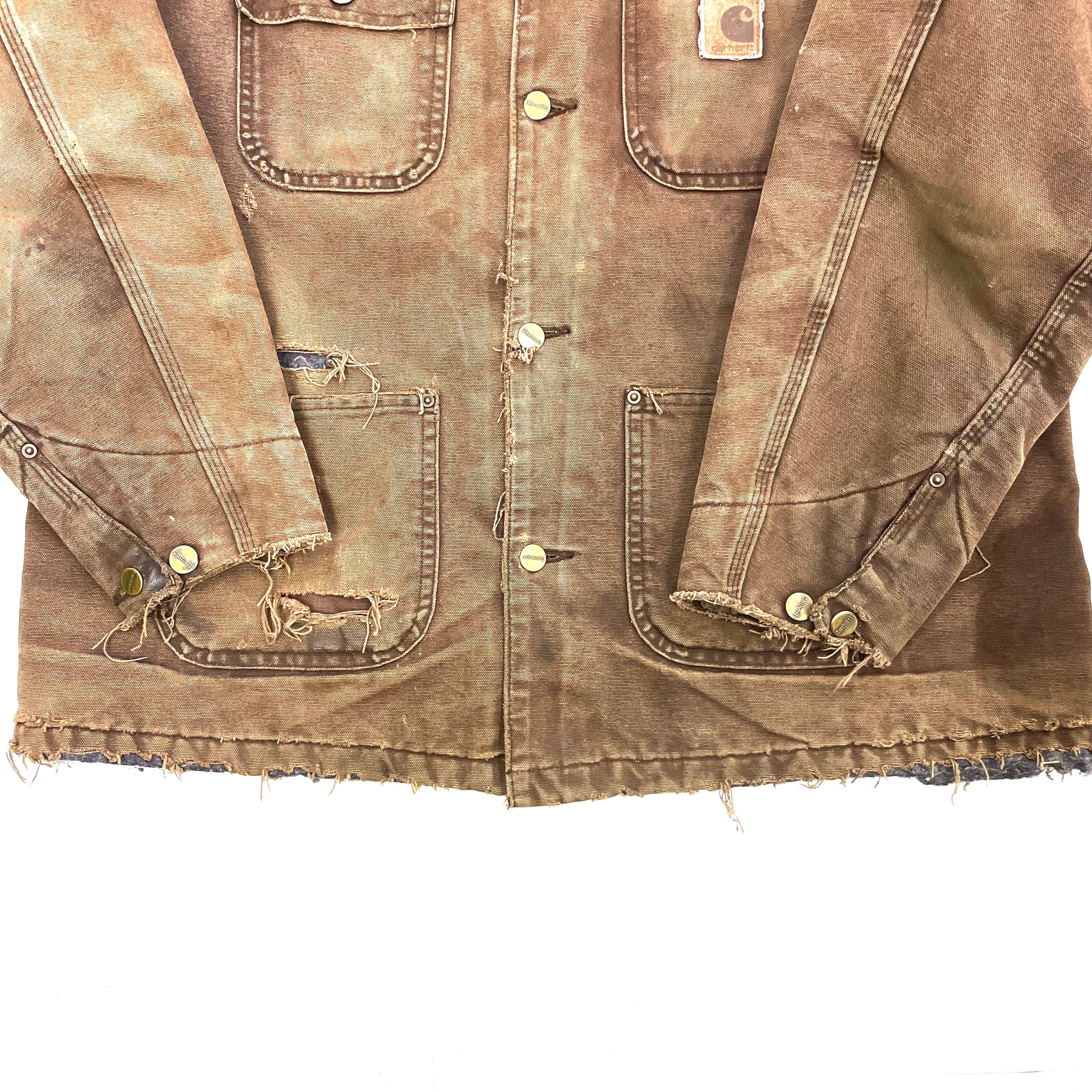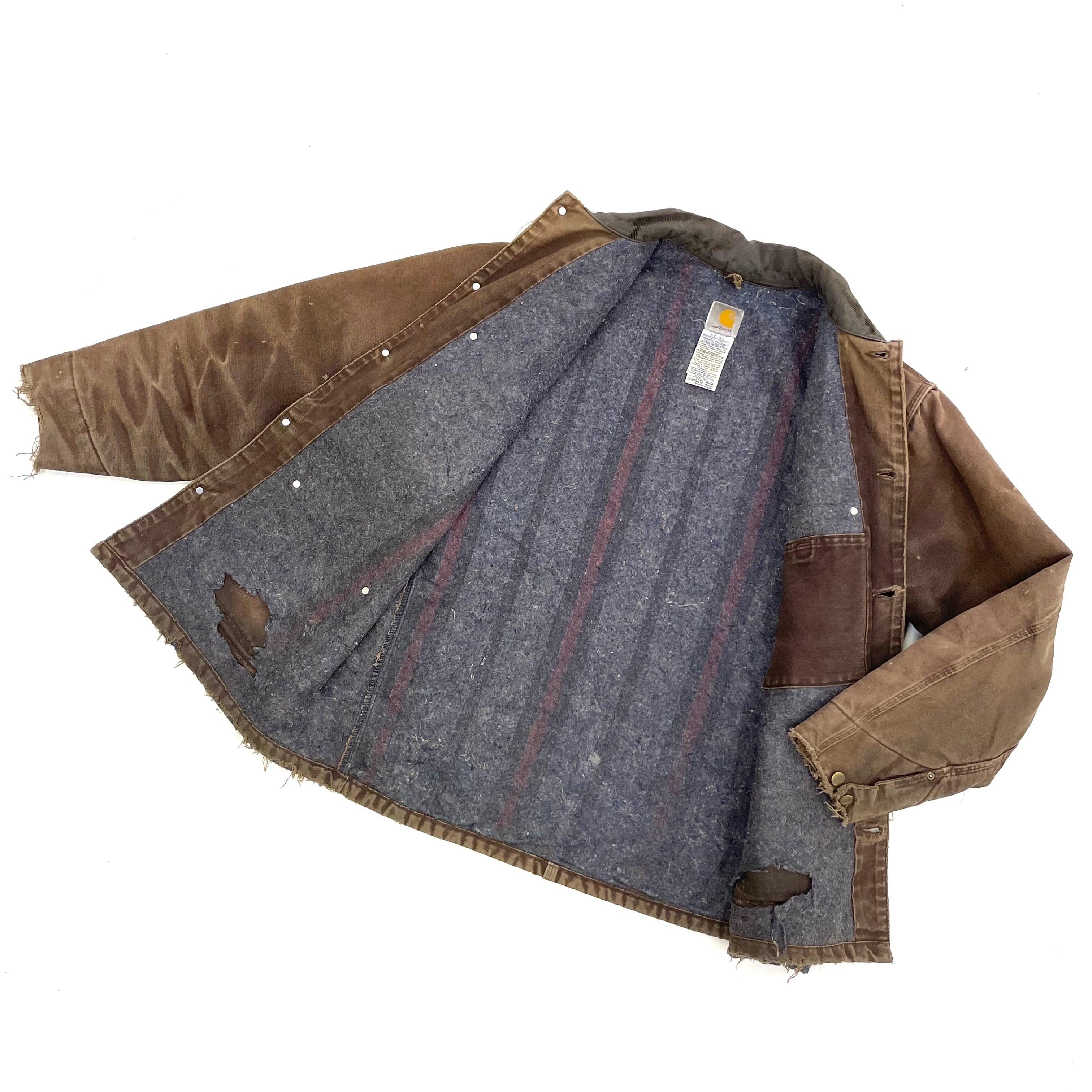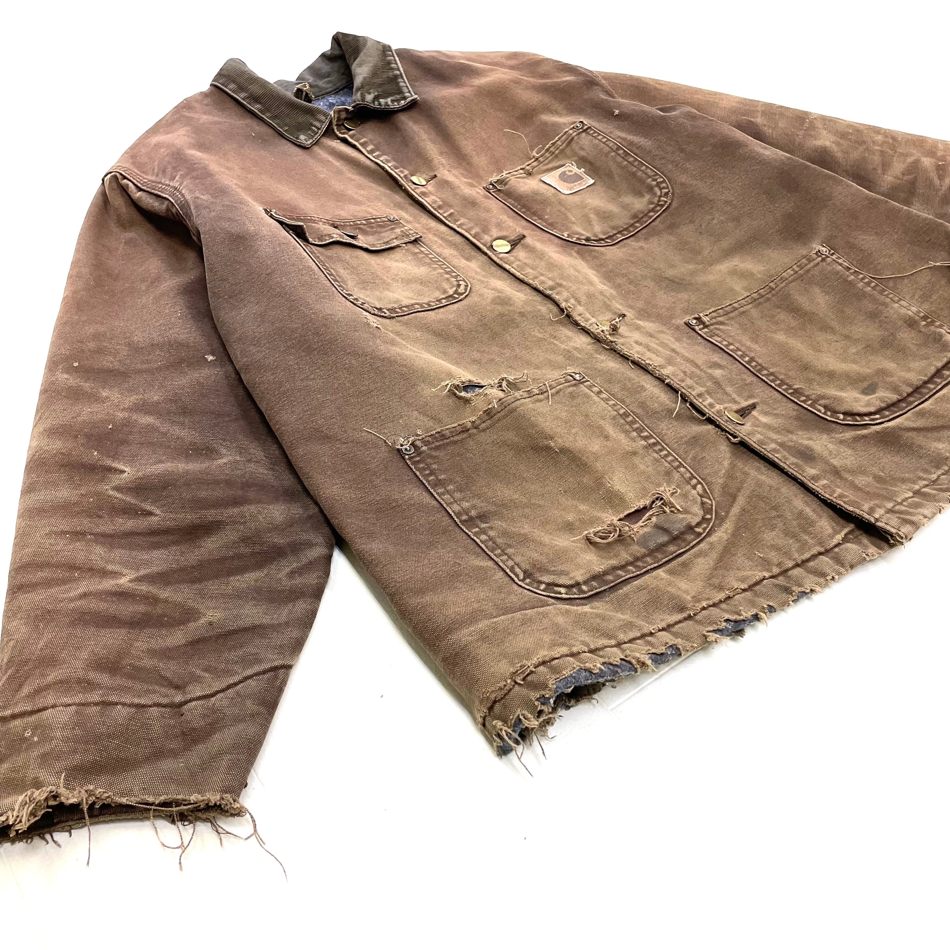 0349 / 1990's slashed blanket lined chore coat チョコレートブラウン チョアコート ブランケット裏地 カーハート カバーオール コットンダックキャンバス ワークジャケット 90s 90年代 古着 vintage carhartt