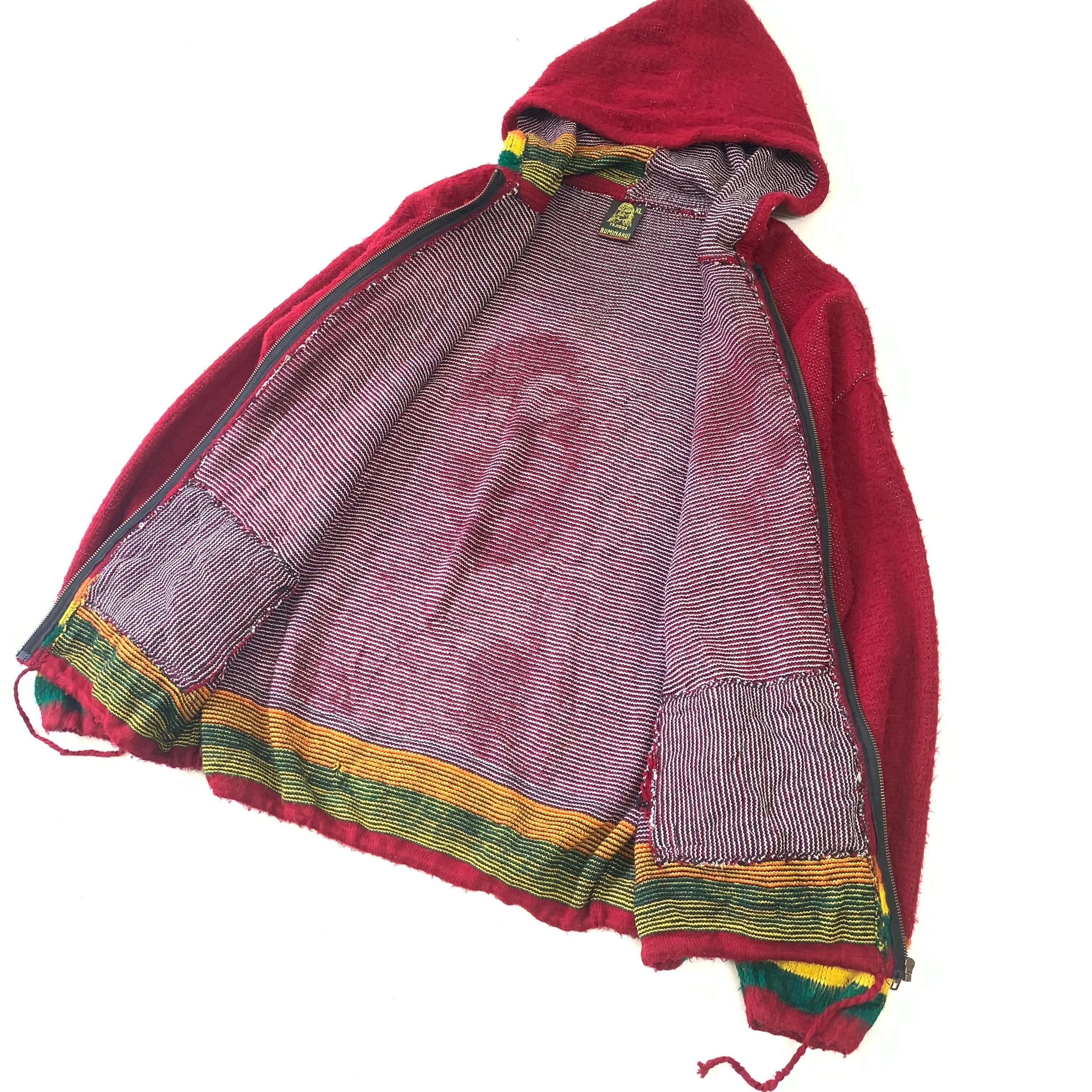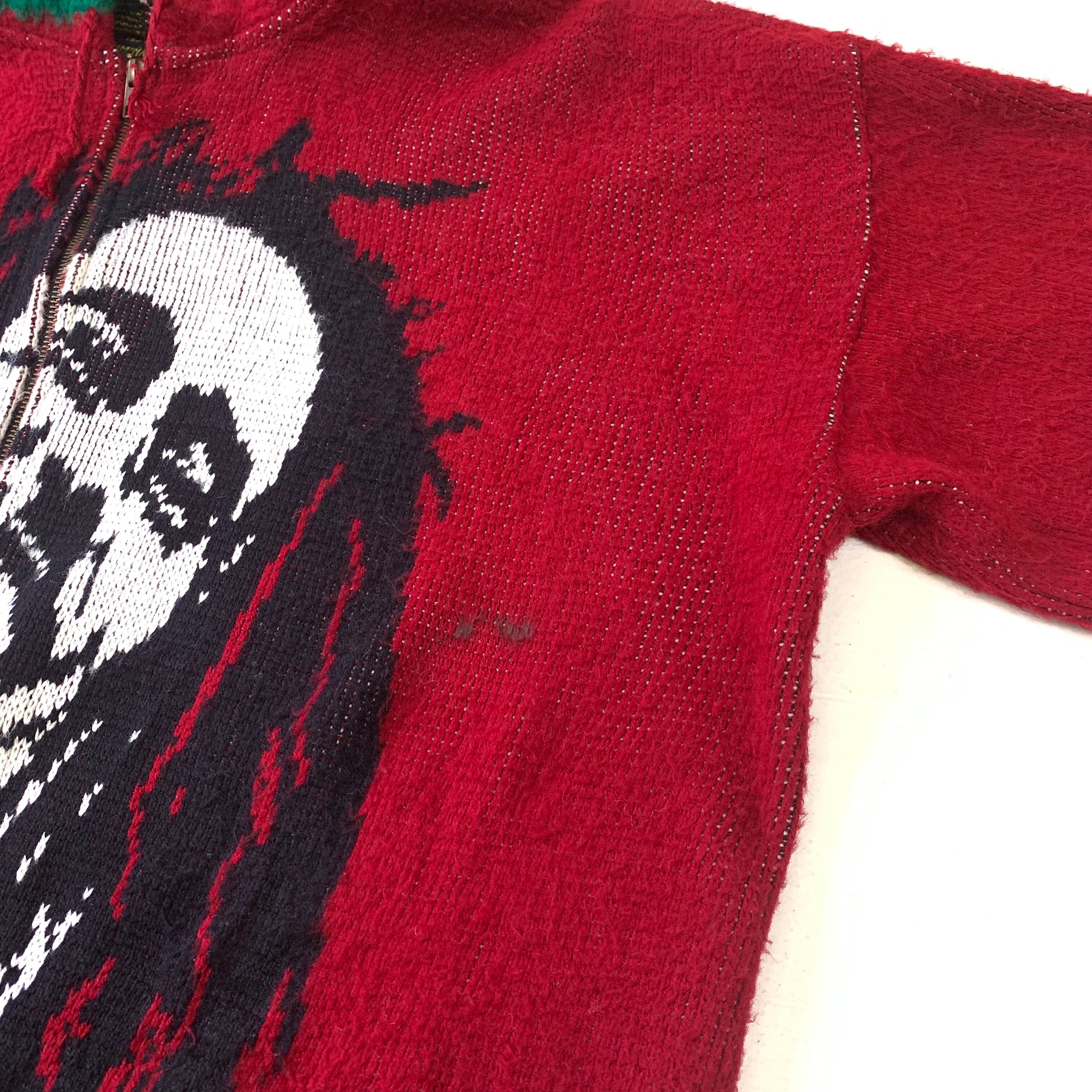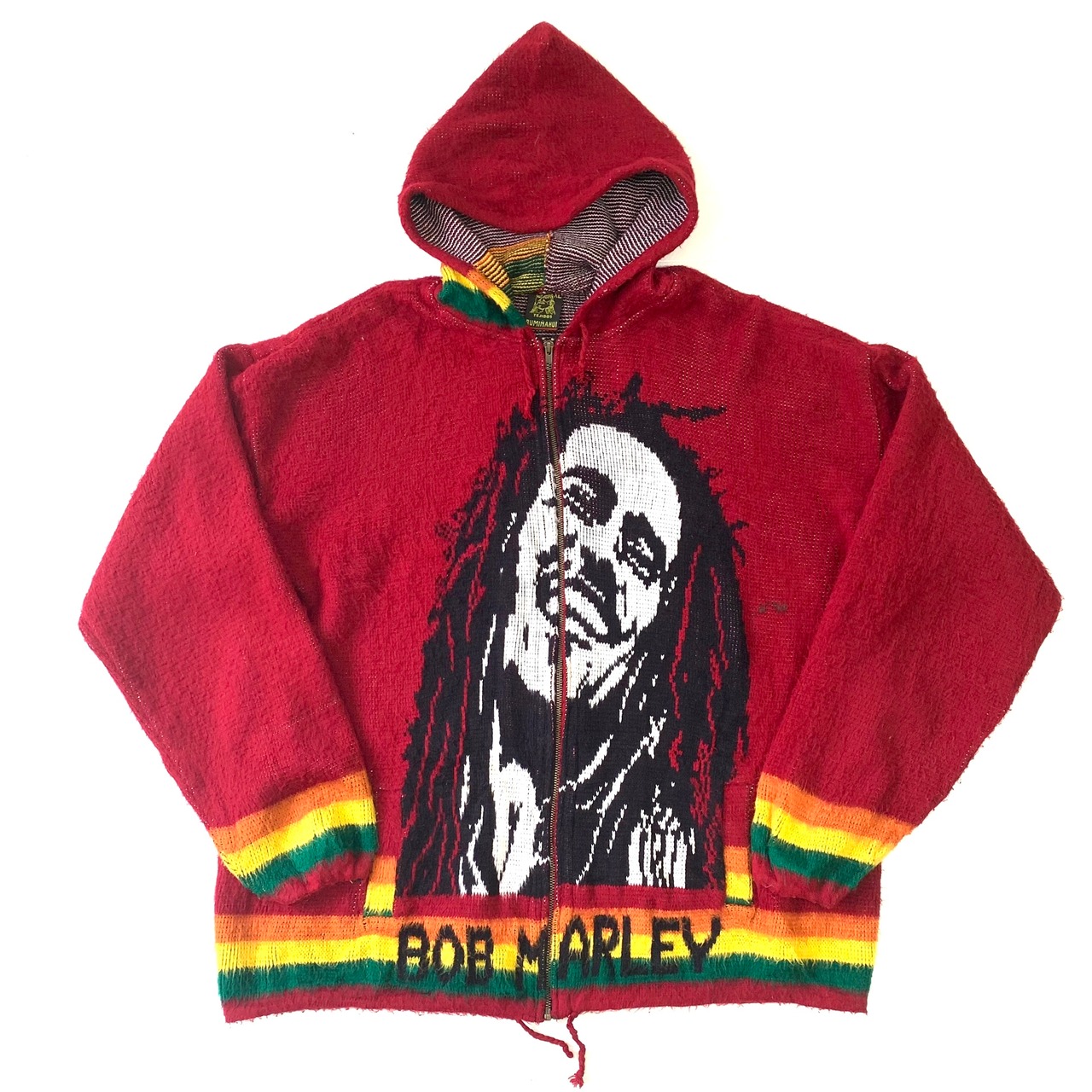 0376 / 1990's "BOB MARLEY" knit hoodie レッド ZIPパーカー ジャカードニット セーター ボブマーリー エクアドル製 古着