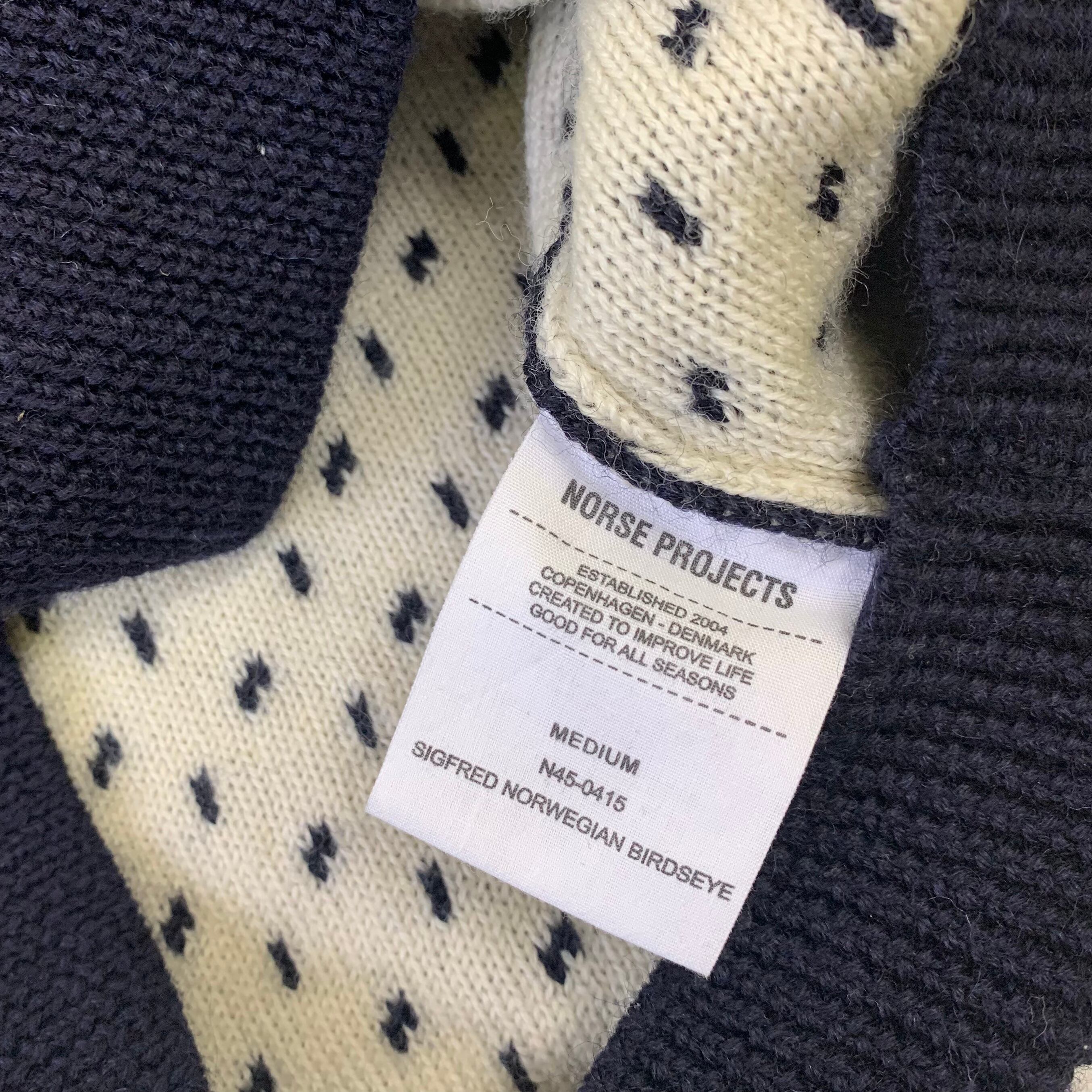 0379 / NORSE PROJECTS bird's-eye knit sweater ネイビー バーズアイ 総柄 ウールニットセーター クルーネック ノースプロジェクツ デザイナーズ ユーロ古着