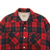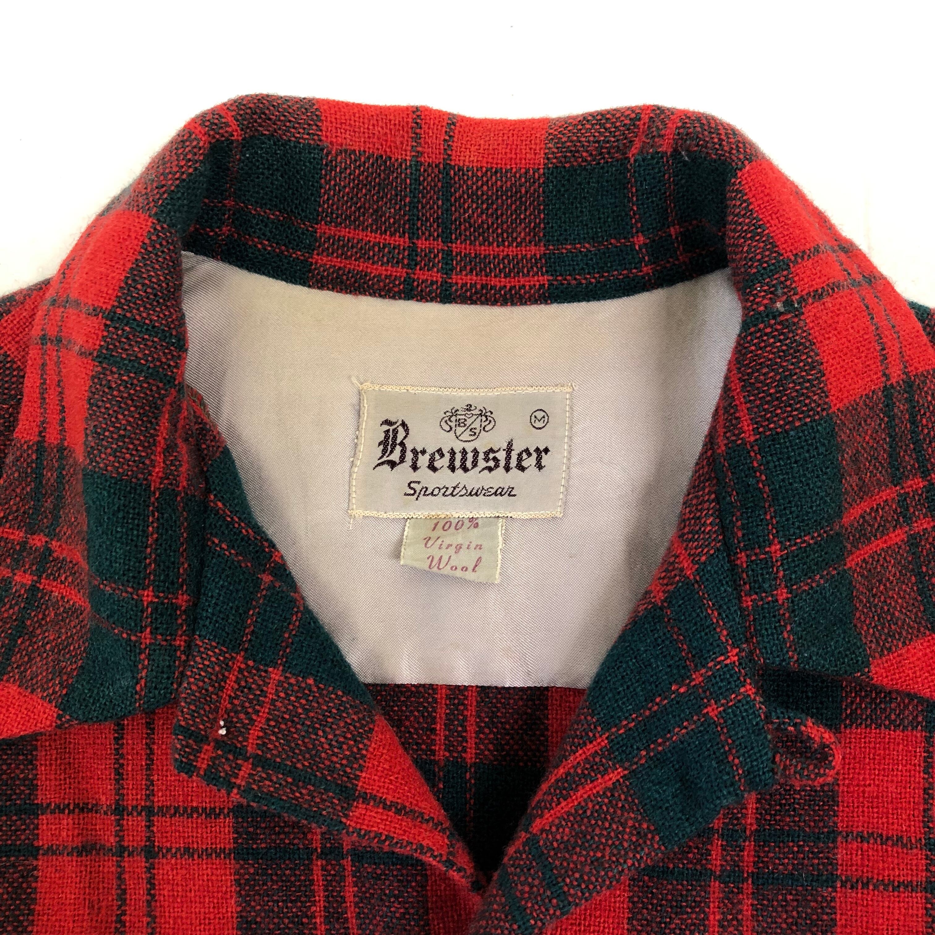 0381 / ~1960's Brewster plaid wool shirt レッド グリーン オープンカラー チェックシャツ 60s 60年代 vintage 古着
